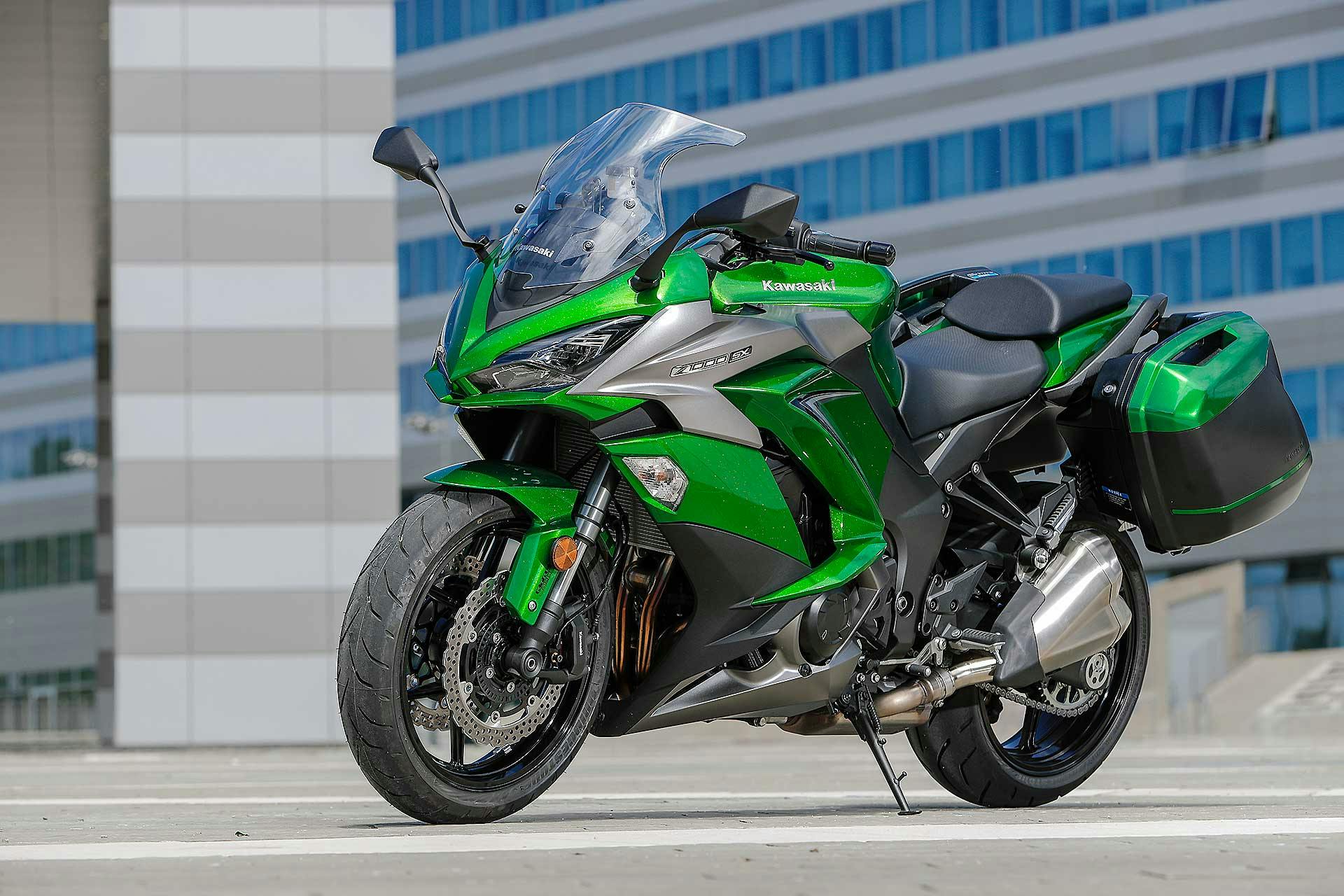 Esattamente al centro della bilancia c’è la Z1000SX, ovvero la Sport Touring nel più puro senso del termine. Agli albori del segmento le sport touring erano infatti fatte solo e soltanto così. Carenatura integrale, semimanubri, posizione sportiva ma non costrittiva, protezione dall’aria dignitosa e capacità di ospitare borse e passeggero. L’ultimo aggiornamento per la Z1000SX risale al 2017, non molto tempo fa quindi.