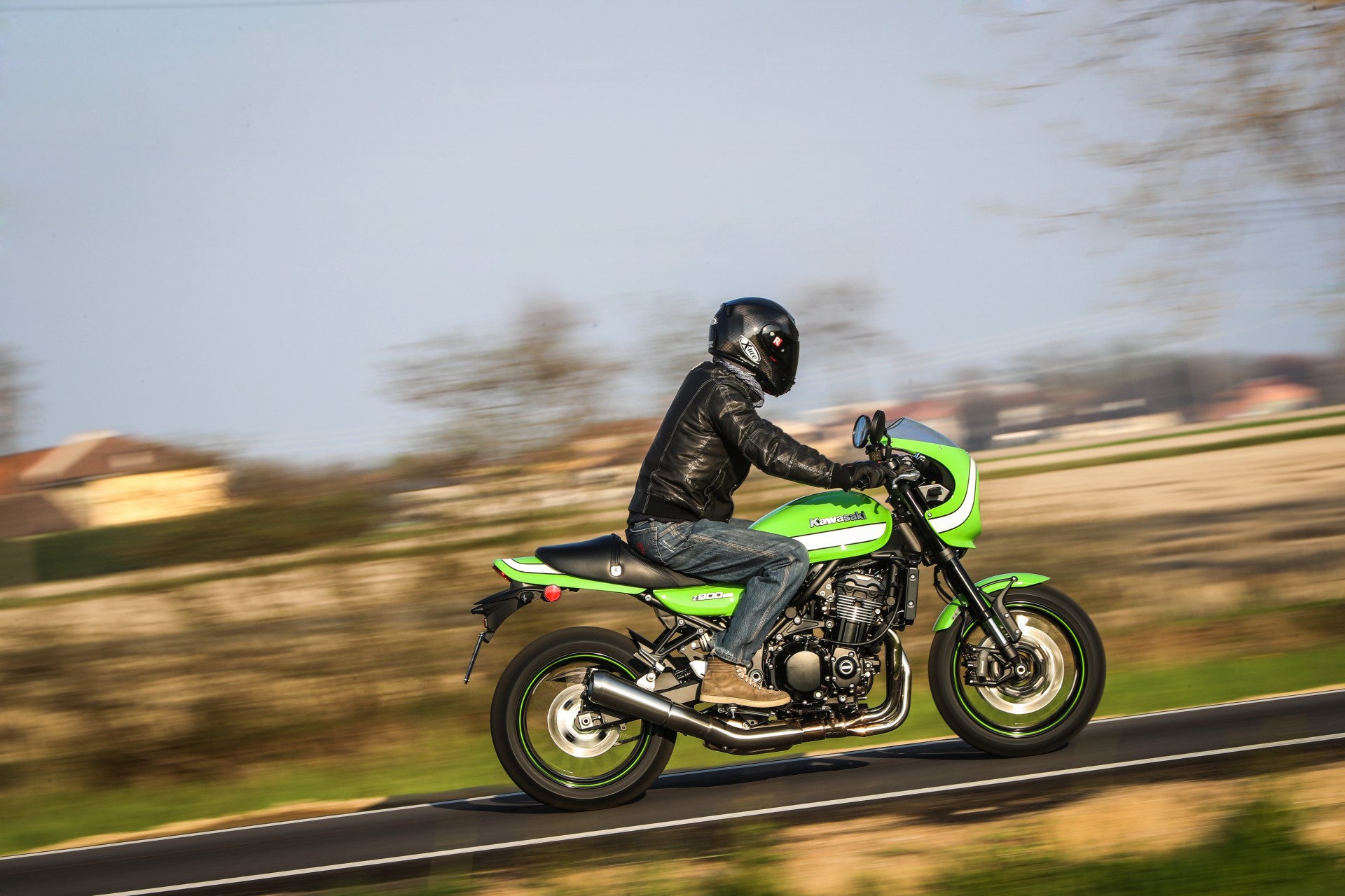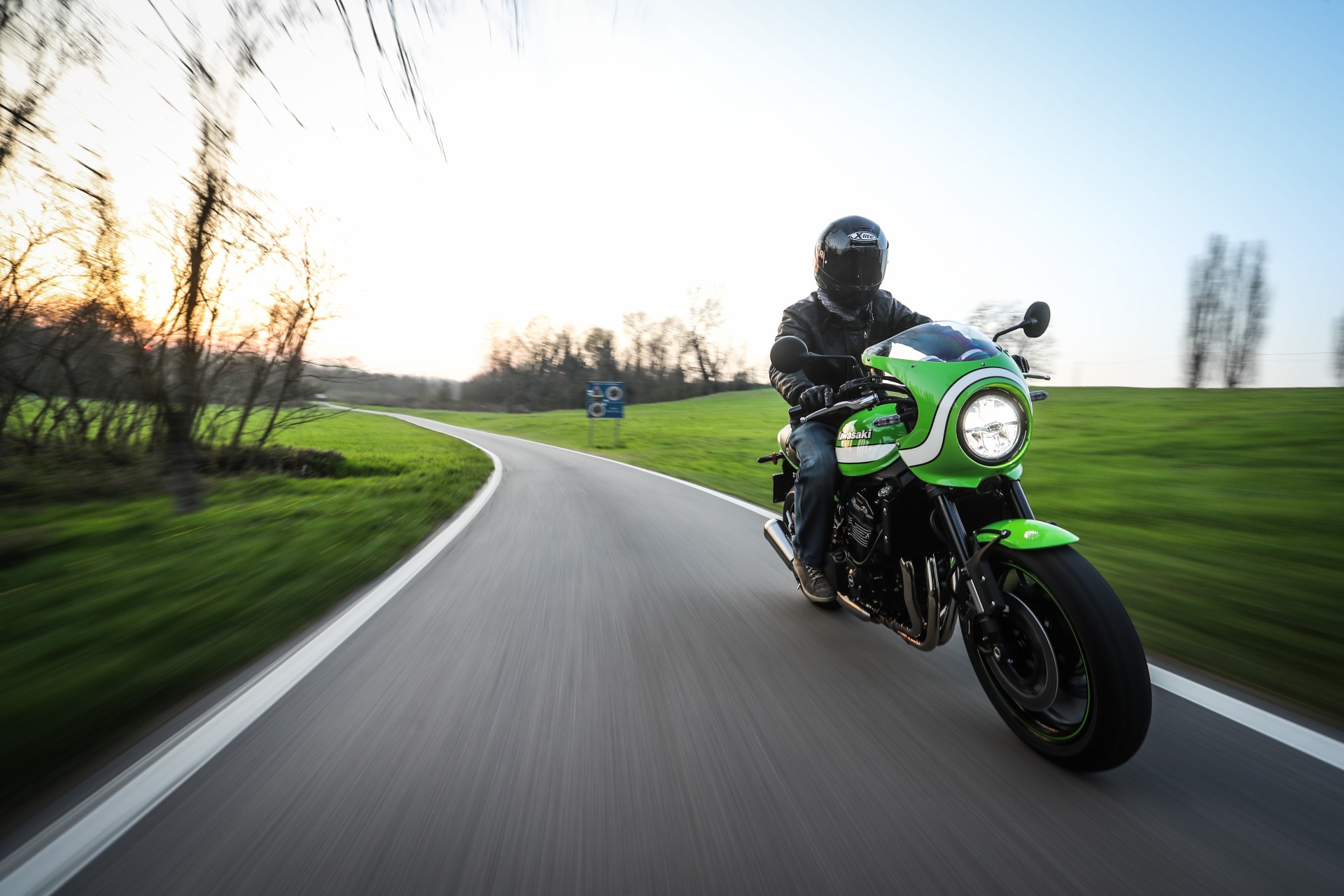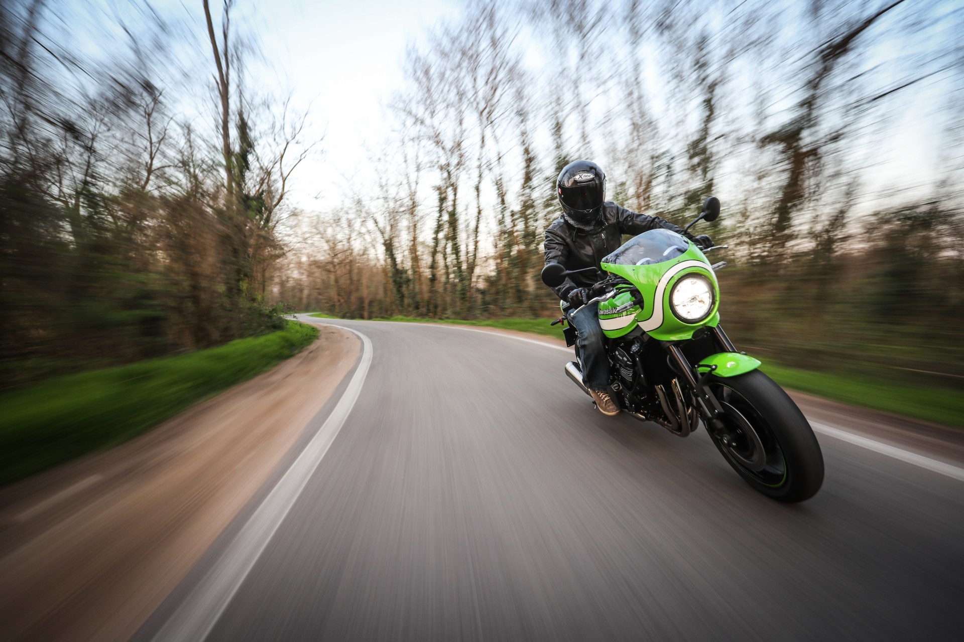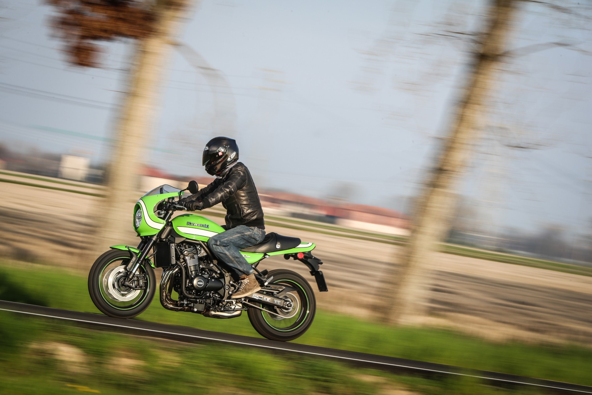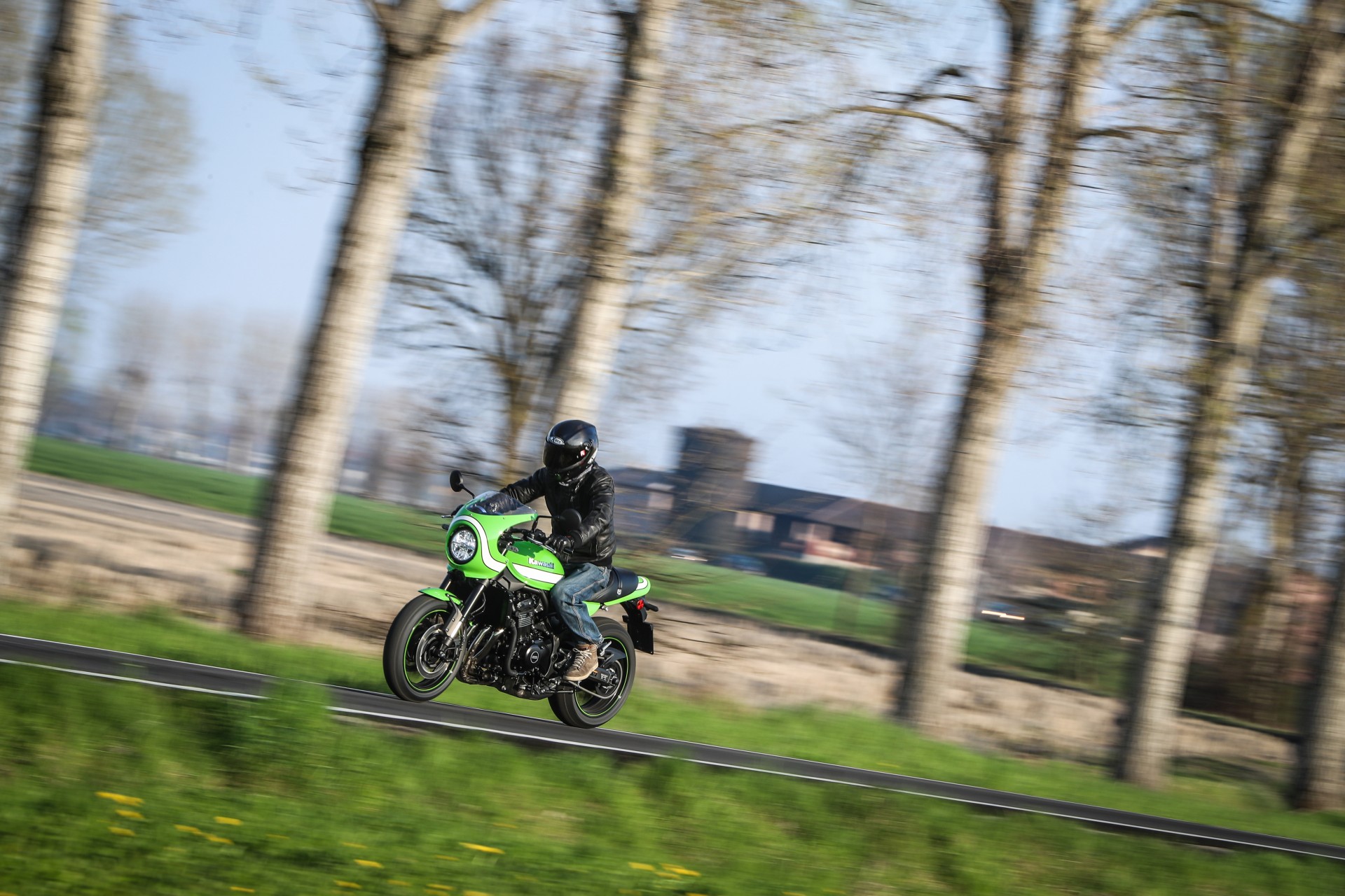 Tutta sua sorella…Dal punto di vista della meccanica e della ciclistica, se si esclude una leggera modifica al telaio per ospitare il nuovo serbatoio, nulla differenzia le due versioni, quindi prestazioni e gusto di guida sono gli stessi che vi abbiamo raccontato nel primo test della Kawasaki Z900RS. Stilisticamente, cupolino e colorazione a parte (quest’ultima porta in dote il verde lime green originale e abbina il classico fascione bianco già visto in passato sulla fantastica ZRX 1200 Eddie Lawson replica), se la si osserva con occhio artistico, la nuova Cafe ha un andamento orizzontale non così teso e lineare come la sorella Z900RS, ma è più ondulata e, potendola guardare dall’alto si noterà che ha un profilo sinuoso che richiama le curve di un corpo femminile.A distinguere la Cafe sono però alcuni accorgimenti che trascendono l’aspetto stilistico, come la sella più vicina al suolo di 20 mm e il manubrio anch’esso più basso e angolato verso il pilota. Il primo dato è una conseguenza del nuovo disegno che richiama il monoposto, mentre il secondo è un’esigenza stilistica imprescindibile per una cafe racer e che ben si sposa con il cupolino.Piace da ferma e convince quando si muoveA proposito di cupolino, la sua funzionalità è discreta (io supero di poco il metro e ottanta) perché, a meno di starvi accucciati dietro, la curvatura è più ispirata a esigenze stilistiche che a necessità pratiche. Il risultato è indubbiamente ben riuscito e la nuova Cafe è armoniosa e, sapientemente parcheggiata nel mezzo della movida milanese dei Navigli, ha fatto girare molte teste.Dai Navigli alla campagna a Sud di Milano ci si arriva abbastanza in fretta, attraversando un lungo tratto di pavè congestionato di auto e un breve tratto di strada a scorrimento veloce a più corsie. Situazioni che confermano le sensazioni della prima prova, con un sensibile on-off, una forcella che filtra meglio degli ammortizzatori(comunque regolabili), una frizione burrosissima e un motore così elastico che lo si può guidare come un monomarcia, dai 1.500 ai 10.000…La Kawa Z900RS Cafe non è una motocicletta che invita a tirare, anche se quando la strada si apre, il gusto di dare una manata di gas e sentire la spinta vigorosa del quattro cilindri accompagnata da un ruggito esaltante ce lo togliamo senza troppi preamboli. Leggermente più caricata sull’avantreno della sorella, resta tuttavia molto comoda e si guida rilassati anche se, lo si capisce da subito, se le si chiede di fare la cafe racer ubbidisce con un certo piacere.Finita la scampagnata, fra fattorie, campi coltivati e stradine che due macchine non ci passano, riportiamo la Z900RS a Milano in tempo per far brillare il suo verde fra le luci dei locali in Porta Genova. Si trova a suo agio anche qui, vezzosa e consapevole del suo charme.