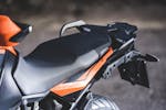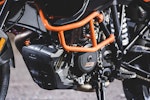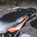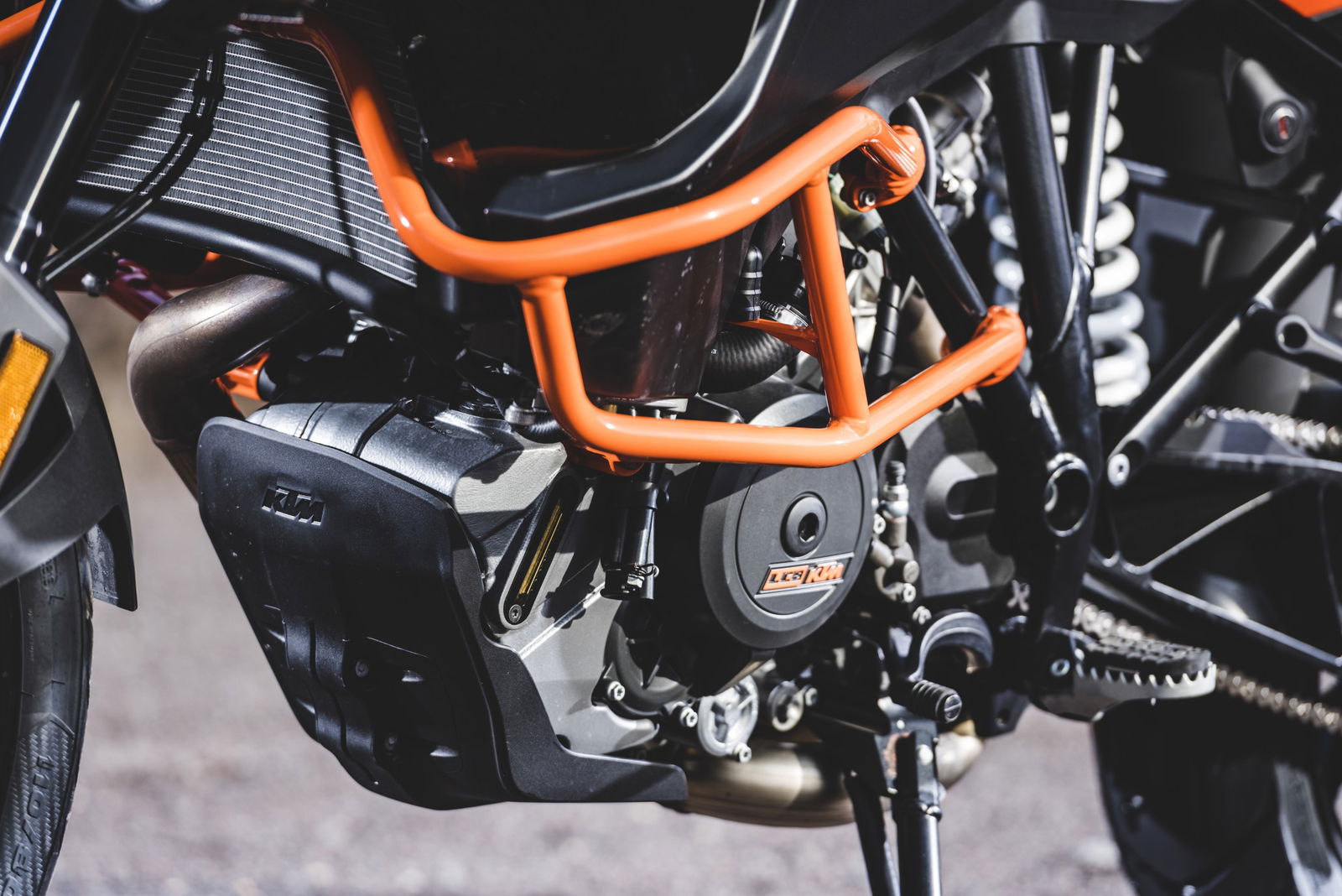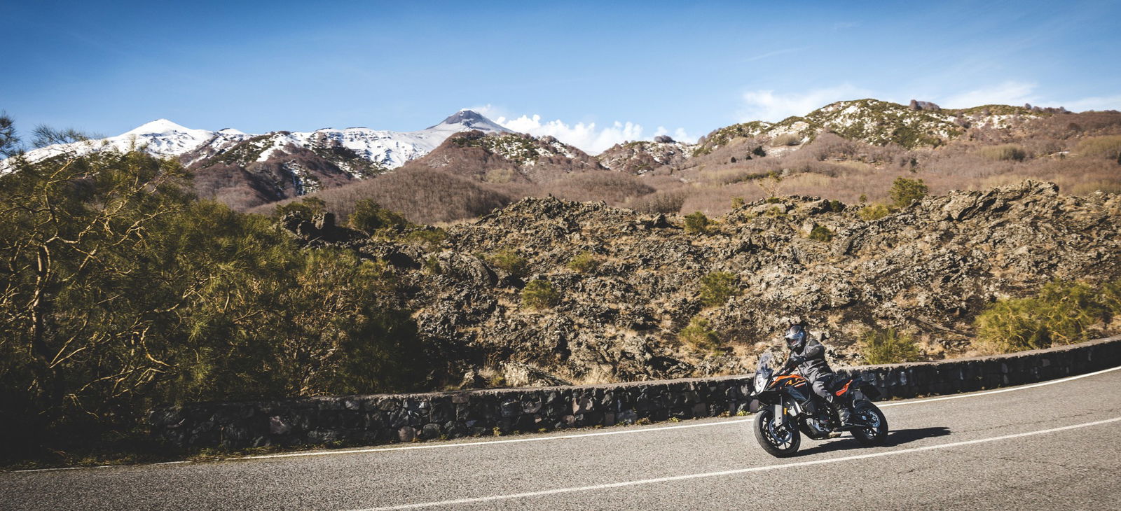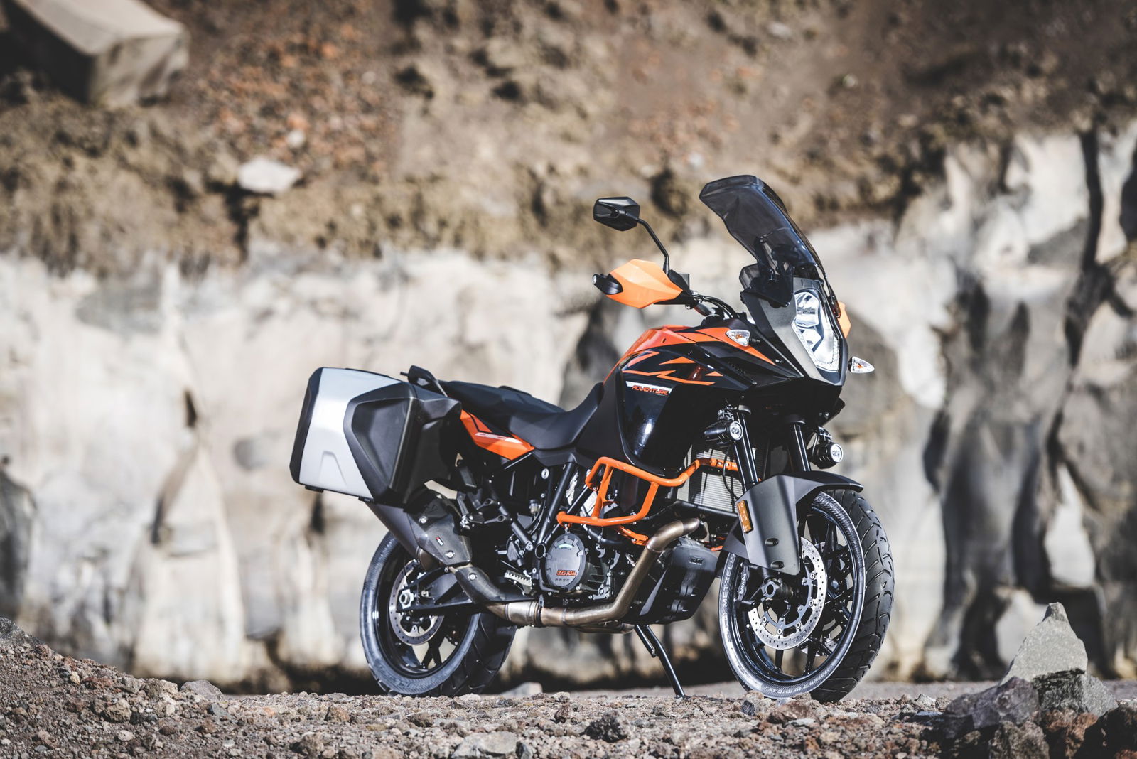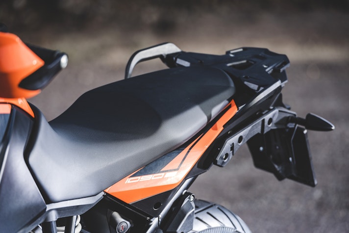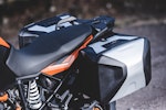 La prima presa di contatto con la nuova KTM 1090 Adventure è avvenuto negli stessi giorni della 1290, occasione buona per capire – cambiando ripetutamente manubri e selle – quali e quante siano le oggettive differenze tra le due moto in questione. Il muscoloso confronto delle prestazioni premia già leggendo la scheda tecnica la sorella maggiore che si fa forte di un’elettronica molto accorta nel far scatenare i 160 cavalli. La piccola 1090 offre invece la potenza nella sua totalità. Il motore gira alto e vibra meno, ha una buona protezione dall’aria ma soprattutto si guida: guizza veloce nei cambi di direzione che la sorellona fatica a tenere il passo nei rapidi cambi di direzione salvo poi recuperare nelle ripartenze a bassa velocità.Vola da regimi medi La differenza in termini di cilindrata, potenza e coppia si misura esclusivamente uscendo da tornanti o curve lente di seconda marcia. Se è la 1290 a precederci sul percorso, crea un piccolo strappo misurabile in alcuni metri di distacco; elettronica e performance creano un solco che i “soli” 125 cavalli di cui dispone la 1090 non riescono a colmare. La musica cambia se ad aprire la strada c’è la piccola, che non si avvantaggia con il motore ma compensa con una ciclistica buona, un peso decisamente più contenuto e non ultima la ruota posteriore con gomma da 150 mm di sezione che significa buona agilità e grip in abbondanza.Quanta elettronicaL’articolato percorso per selezionare sia i tre riding mode – Sport, Street e Rain – e i livelli di traction control è facilmente dipanabile selezionando con il blocchetto elettrico al manubrio le varie voci del menù sul display. La gestione è intuitiva almeno quanto è rapido l’intervento del controllo di trazione ogni qualvolta ci sia anche la più piccola perdita di aderenza del posteriore.Bosch firma tutto il comparto elettronico e si rivela un ottimo affare per KTM che può contare su un compagno di viaggio estremamente sensibile, sempre presente ma per nulla invasivo. Ogni intervento è percepibile esclusivamente osservando la strumentazione – l’indicatore del traction lampeggia – ma non altera il piacere di guida che non viene rallentato da improvvisi tagli all’iniezione.Difficile dunque considerare “piccola” la KTM 1090 Adventure solo perché è stata affiancata dalla 1290. Le due moto sono diverse per carattere, vocazione e capacità di interpretare il viaggio che sia a breve o lungo raggio da soli o in coppia.KTM però non si ferma qui. L’introduzione sul mercato della 1090 Adventure R con ruota anteriore da 21 pollici è l’inevitabile tassello per non fermarsi nemmeno di fronte all’ostacolo e il percorso più tecnico e impervio. Con lei e con la 1290 R la famiglia sarà veramente al completo.