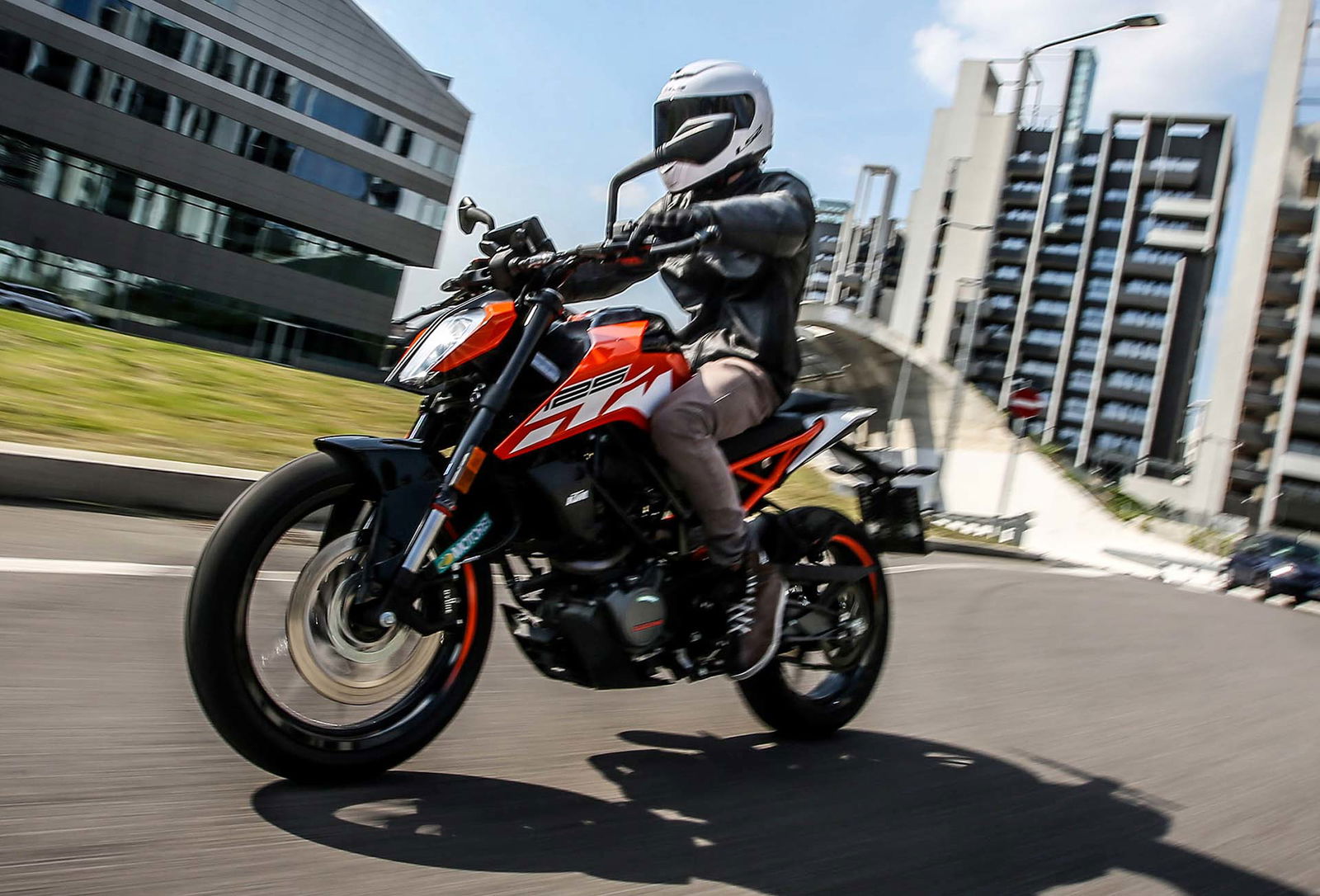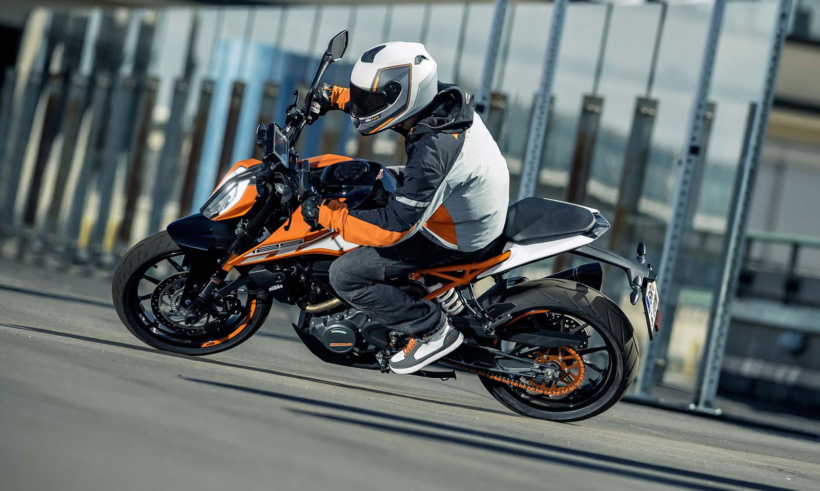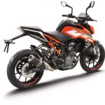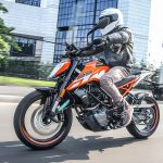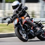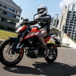 La ciclistica ci piaceva prima e ci piace anche ora buona la taratura della forcella, ottima anche per come trasmette al pilota ciò che accade nell’interfaccia asfalto/pneumatico (ora gli ottimi Metzeler Sportec) mentre il monoammortizzatore si è rivelato un po’ sfrenato. La moto è agile, leggera, mai nervosa e soprattutto dà molta fiducia e ha una ciclistica divertente, con una luce a terra degna di nota. Anche la frenata è di ottimo livello, l’impianto marchiato ByBre (marchio “entry” di Brembo) non delude anche a livello di potenza che mi è sembrata migliore rispetto a quella delle Duke precedente. Alla fine il progetto Duke 125 ulteriormente evoluto è ancora più convincente, la naked KTM è ancora oggi la meno cara del segmento ma ha una qualità premium, un design che colpisce e dotazioni molto ricche. Il fatto che abbia incrementato le vendite nei primi 5 mesi dell’anno non stupisce affatto…