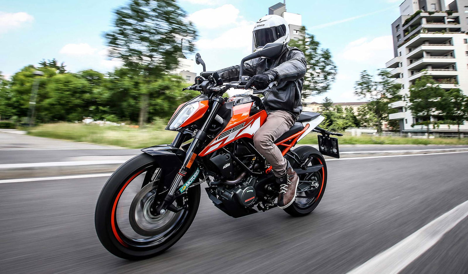 La ciclistica ci piaceva prima e ci piace anche ora buona la taratura della forcella, ottima anche per come trasmette al pilota ciò che accade nell’interfaccia asfalto/pneumatico (ora gli ottimi Metzeler Sportec) mentre il monoammortizzatore si è rivelato un po’ sfrenato. La moto è agile, leggera, mai nervosa e soprattutto dà molta fiducia e ha una ciclistica divertente, con una luce a terra degna di nota. Anche la frenata è di ottimo livello, l’impianto marchiato ByBre (marchio “entry” di Brembo) non delude anche a livello di potenza che mi è sembrata migliore rispetto a quella delle Duke precedente. Alla fine il progetto Duke 125 ulteriormente evoluto è ancora più convincente, la naked KTM è ancora oggi la meno cara del segmento ma ha una qualità premium, un design che colpisce e dotazioni molto ricche. Il fatto che abbia incrementato le vendite nei primi 5 mesi dell’anno non stupisce affatto…