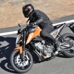 Le sospensioni svolgono bene il loro compito senza mostrare particolari punti deboli anche forzando il passo. Su fondi levigati il lavoro è irreprensibile, mentre se la strada presenta imperfezioni il feeling diminuisce a causa degli pneumatici di primo equipaggiamento (Maxxis forse non proprio all’altezza del progetto) e della risposta del monoammortizzatore che sembra tarato per un assetto molto sportivo. C’è da dire che queste ultime sensazioni sono emerse solo nei tratti dove il passo era decisamente allegro, perciò non propriamente da utente medio.Leggera e reattivaIl peso contenuto si traduce in una piacevole velocità di azione in curva, specie in fase di inserimento, idem nei cambi di direzione, dove la Duke si rivela svelta e appagante. Le pedane alte e arretrate consentono angoli di piega non indifferenti, mentre la moto si dimostra piuttosto precisa anche sul veloce, nonostante la guida alta. Il livello di vibrazioni espresso dal motore è molto contenuto fino ai regimi medio alti, mentre tirando si avverte qualcosa in più ma di livello più che accettabile. Il cambio elettronico è preciso e veloce ed è in buona sinergia con l’ottima frizione, ma è anche sensibile. Conviene normalmente avere l’accortezza di non lasciare il piede vicino alla leva onde evitare dei cambi marcia non voluti. Il debutto di KTM nel mondo delle medie bicilindriche arriva quindi nel migliore dei modi. La 790 Duke riesce ad esprimere perfettamente il DNA KTM pur con caratteristiche tecniche nuove per il marchio austriaco. Pimpante, veloce, vivace e leggera. In questo segmento la concorrenza è spietata c’è da sgomitare. Ma la 790 Duke ha le spalle larghe.
