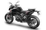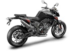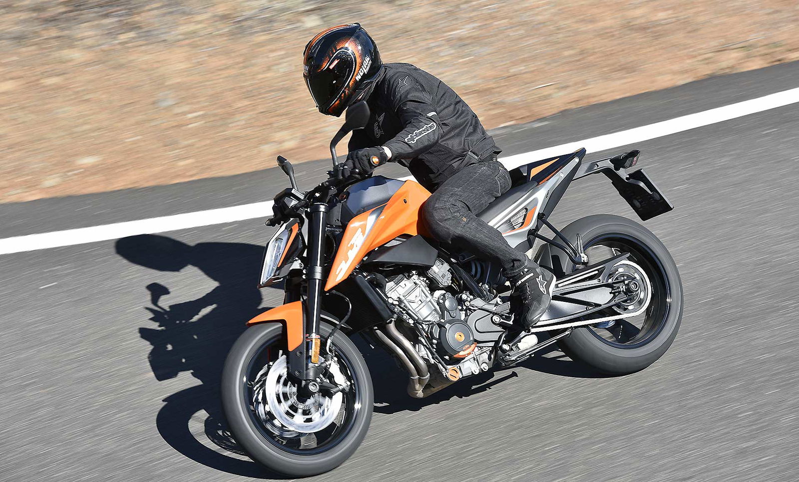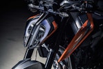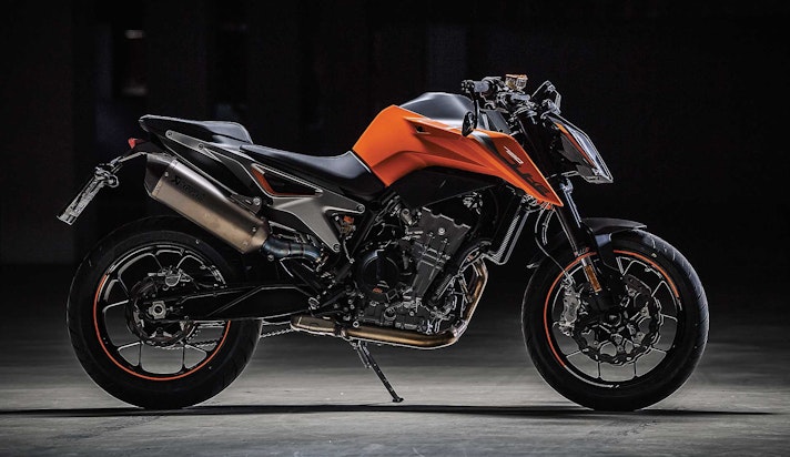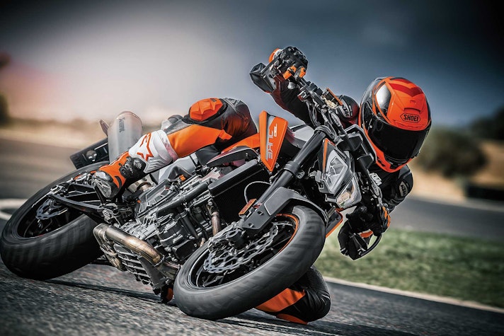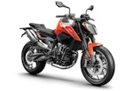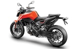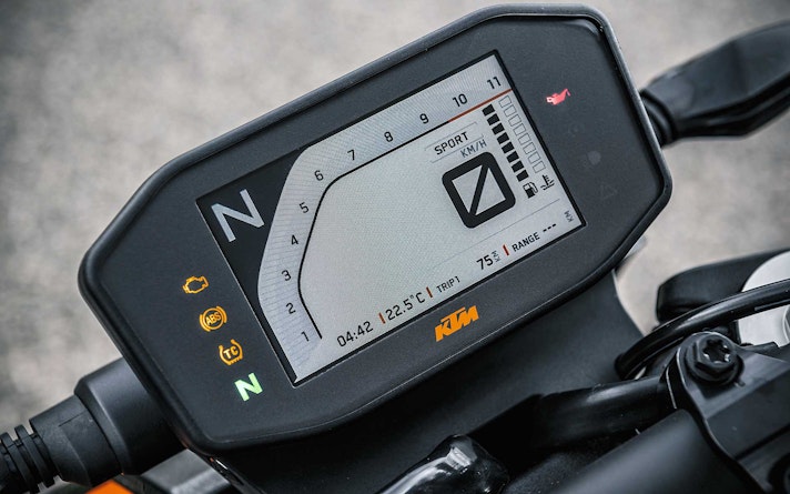 Se qualche componente ciclistico può forse apparire un po’ “semplice”, KTM invece ci è andata pesante con l’elettronica, al top (e pure oltre) nel segmento.Se il controllo di trazione regolabile (MTC) si può ritenere quasi scontato su una moderna naked sportiva, un po’ meno lo è la piattaforma IMU per gestire i principali controlli in funzione dell’inclinazione, fra i quali l’utilissimo cornering ABS, derivato dal sistema che esordì come world premiere sulla KTM 1190 Adventure del 2014, e l’MSR (Motor Slip Regulation, controllo automatico del freno motore).A tutto questo si aggiungono le mappe con i tipici riding mode KTM (Rain, Street, Sport) con in più la modalità Track completamente personalizzabile. Sorprende anche la presenza del controllo per l’impennata Anti-Wheelie (disinseribile) e addirittura del launch control, altro gadget di derivazione puramente racing. Infine, ma assolutamente rilevante, il cambio elettronico quick shift in entrambe le direzioni.Tutto compresoIl quadro si chiude con la strumentazione con display TFT a colori multifunzione come sulle più prestigiose super sportive, soluzione che però KTM usa già sulla 125 Duke. Considerando che il suddetto pacchetto incluso (di serie) nei 9.550 euro f.c., si può ritenere il nuovo giocattolo arancio a dir poco allettante. Come optional evidenziamo il sistema KTM MY RIDE per interagire con lo smarthphone, mentre è ricchissima, come sempre, l’offerta di accessori Power Parts per personalizzare in toto la moto, fra cui segnaliamo il sempre attraente terminale di scarico Akrapovic. RIDE