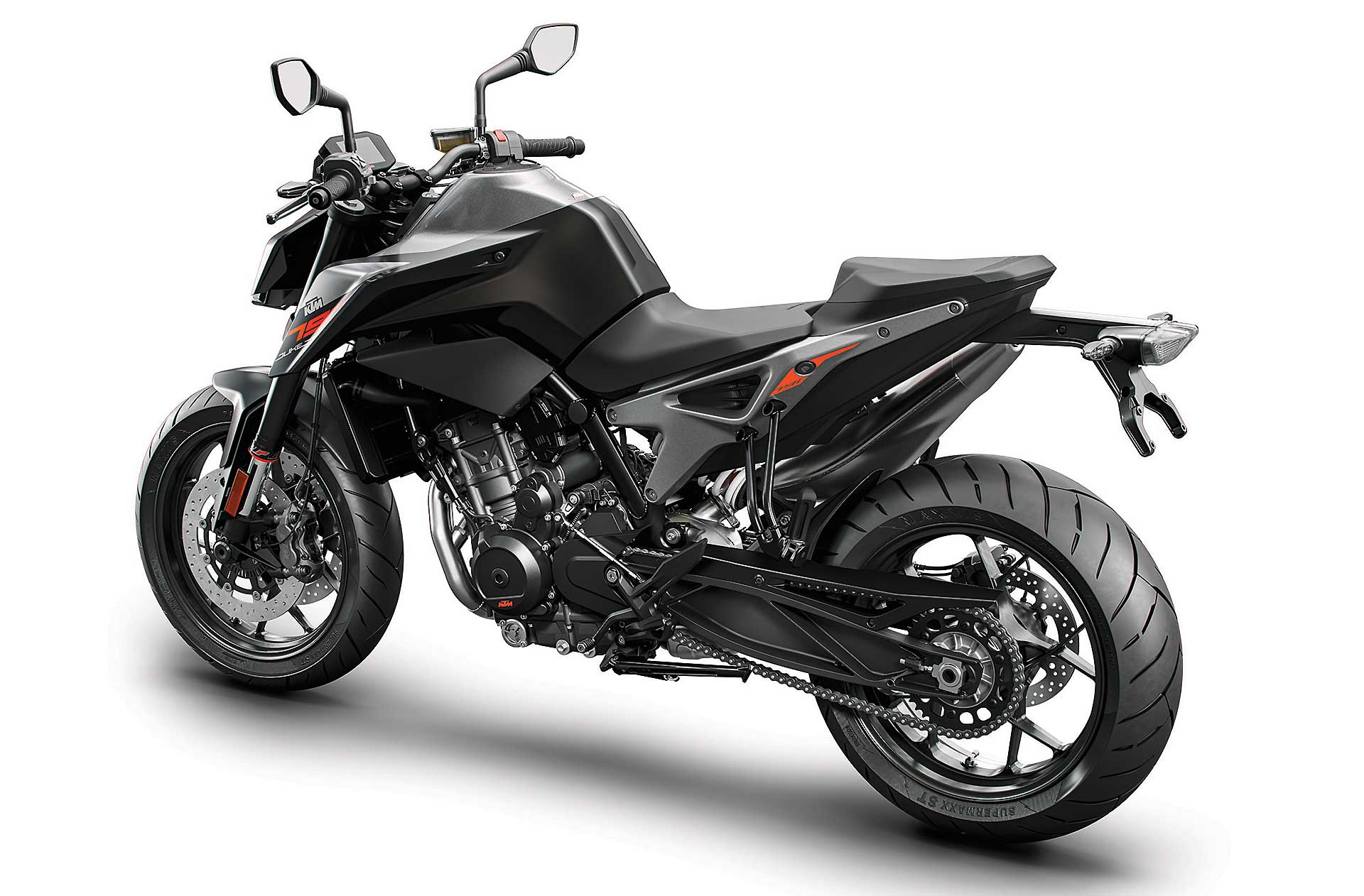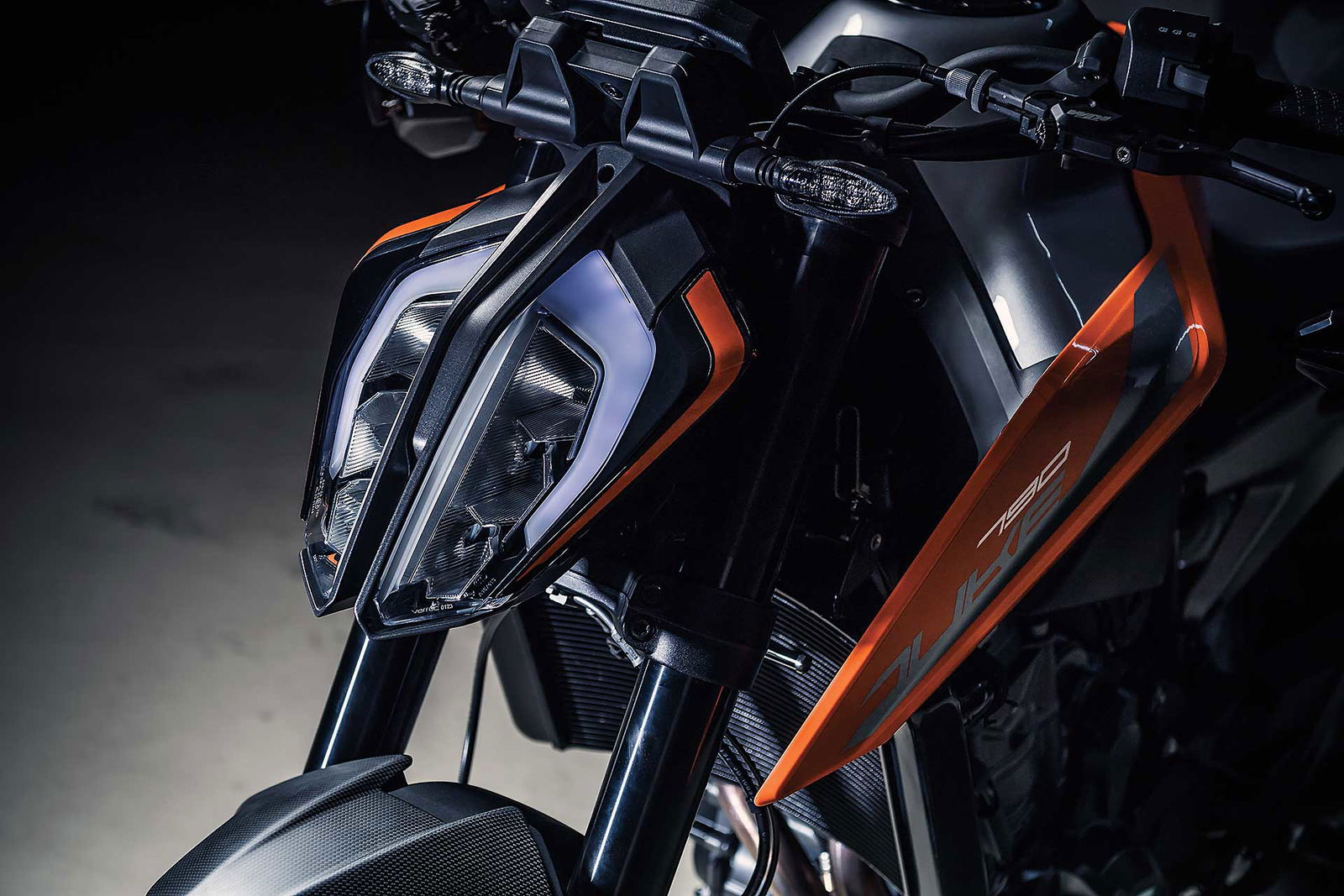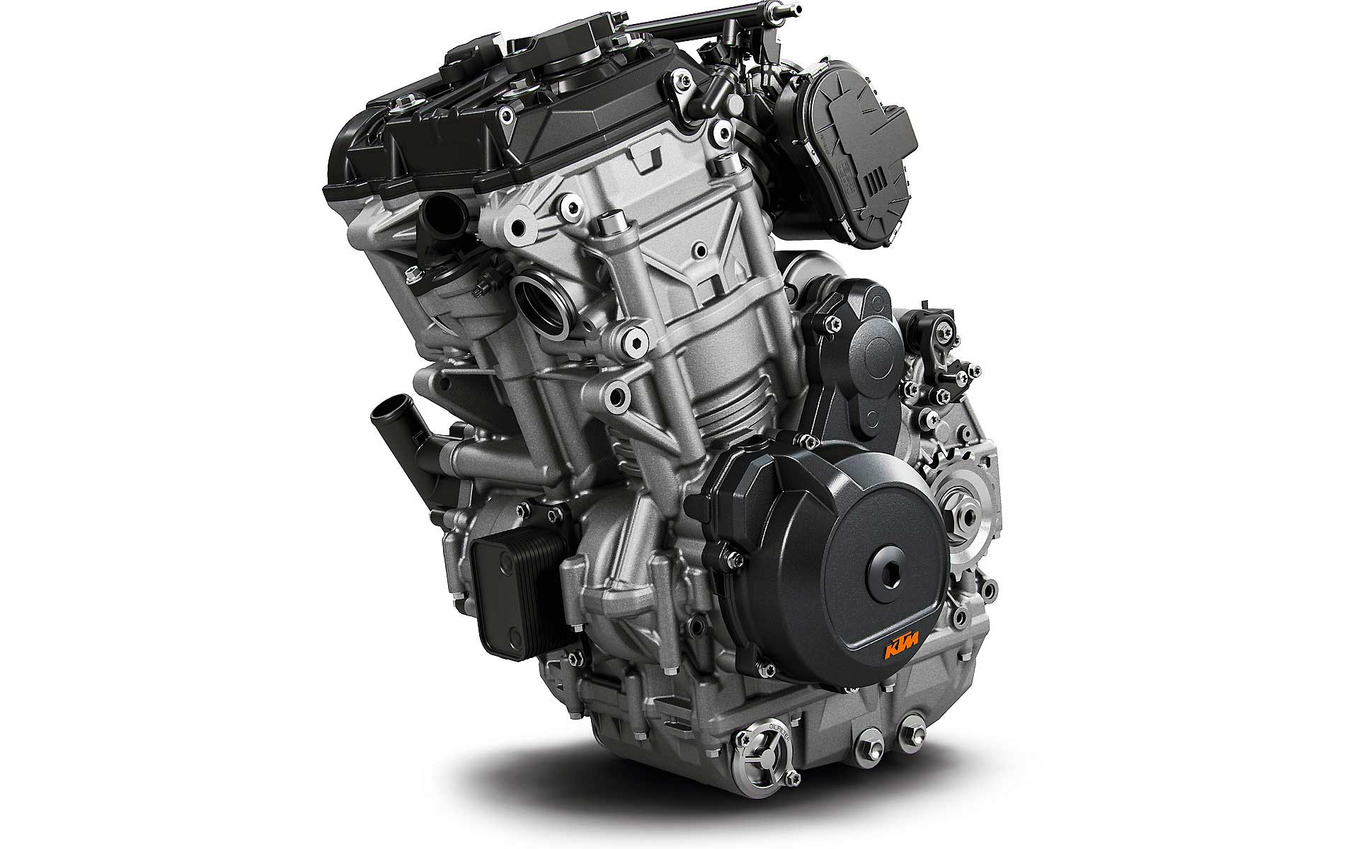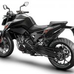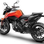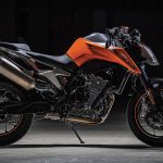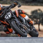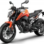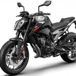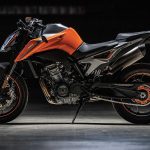 Tornando al motore, new entry che sicuramente sarà sfruttato su altri modelli, come ad esempio l’attesissima 790 Adventure, è l’ormai noto bicilindrico in linea fronte marcia da 799 cc. Le 4 valvole per cilindro sono attivate da bilancieri a dito, il motore adotta la lubrificazione a carter secco (un classico per KTM) ed è dotato di due contralberi di bilanciatura. Degne di nota le prestazioni dichiarate: 105 cavalli a 9.000 giri e 87 Nm di coppia massima a a 8.000 giri.Elettronica da grande