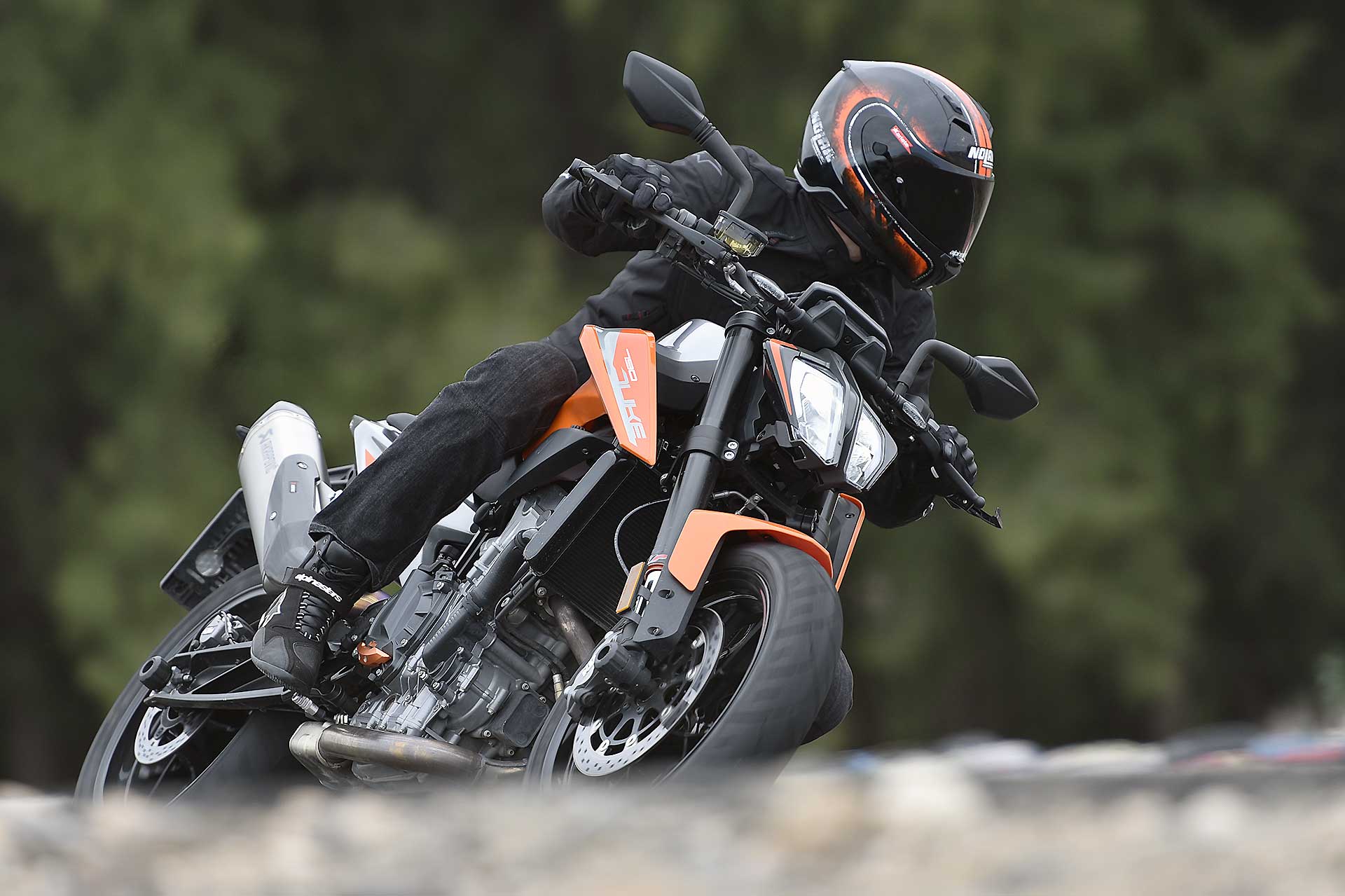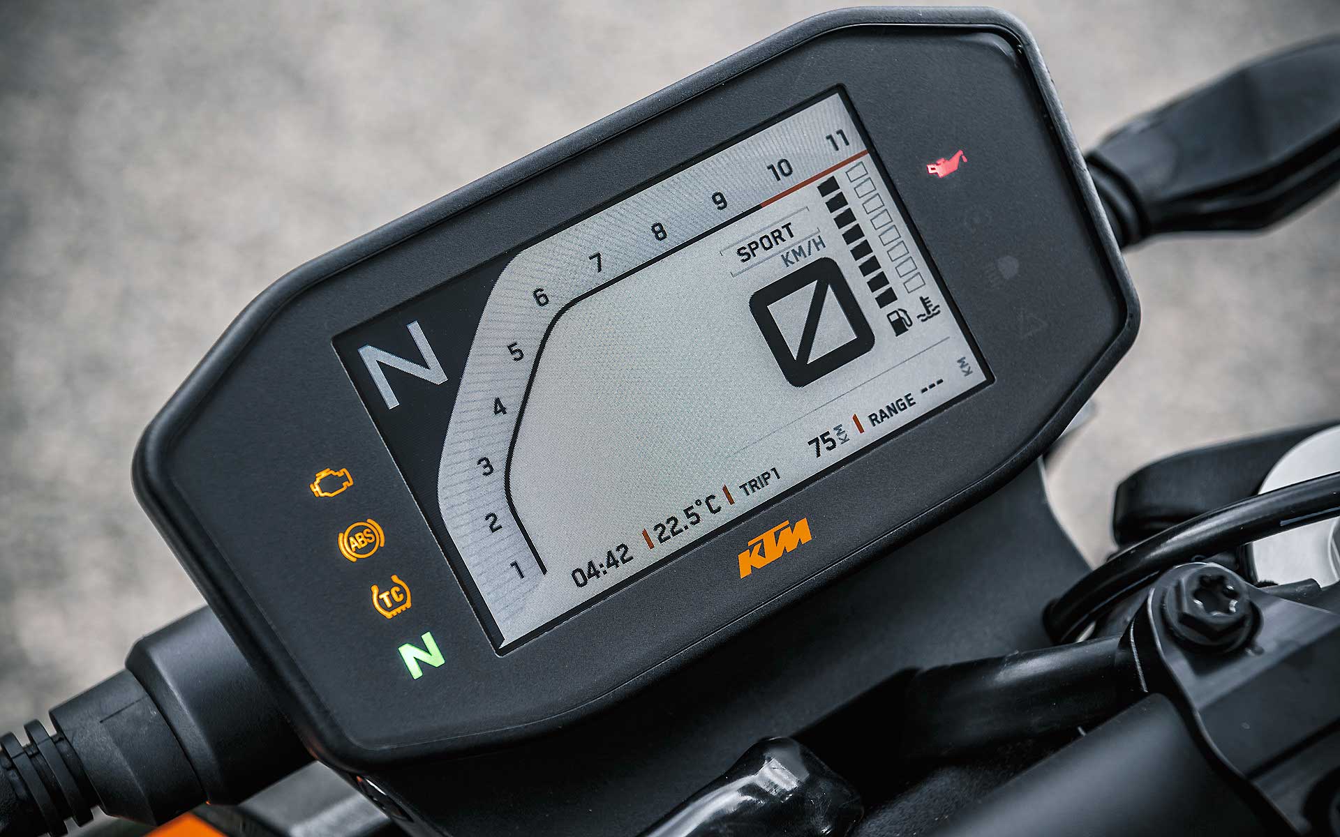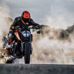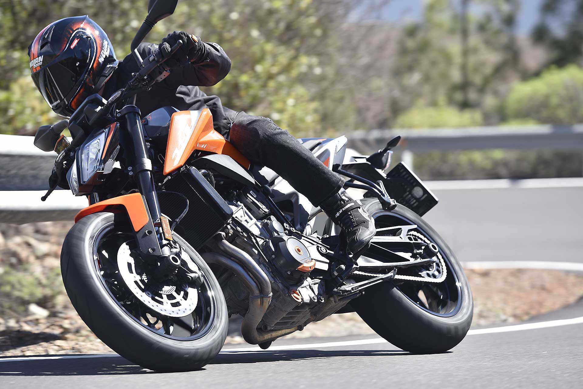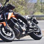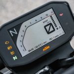 Se qualche componente ciclistico può forse apparire un po’ “semplice”, KTM invece ci è andata pesante con l’elettronica, al top (e pure oltre) nel segmento.Se il controllo di trazione regolabile (MTC) si può ritenere quasi scontato su una moderna naked sportiva, un po’ meno lo è la piattaforma IMU per gestire i principali controlli in funzione dell’inclinazione, fra i quali l’utilissimo cornering ABS, derivato dal sistema che esordì come world premiere sulla KTM 1190 Adventure del 2014, e l’MSR (Motor Slip Regulation, controllo automatico del freno motore).A tutto questo si aggiungono le mappe con i tipici riding mode KTM (Rain, Street, Sport) con in più la modalità Track completamente personalizzabile. Sorprende anche la presenza del controllo per l’impennata Anti-Wheelie (disinseribile) e addirittura del launch control, altro gadget di derivazione puramente racing. Infine, ma assolutamente rilevante, il cambio elettronico quick shift in entrambe le direzioni.Tutto compresoIl quadro si chiude con la strumentazione con display TFT a colori multifunzione come sulle più prestigiose super sportive, soluzione che però KTM usa già sulla 125 Duke. Considerando che il suddetto pacchetto incluso (di serie) nei 9.550 euro f.c., si può ritenere il nuovo giocattolo arancio a dir poco allettante. Come optional evidenziamo il sistema KTM MY RIDE per interagire con lo smarthphone, mentre è ricchissima, come sempre, l’offerta di accessori Power Parts per personalizzare in toto la moto, fra cui segnaliamo il sempre attraente terminale di scarico Akrapovic. RIDE