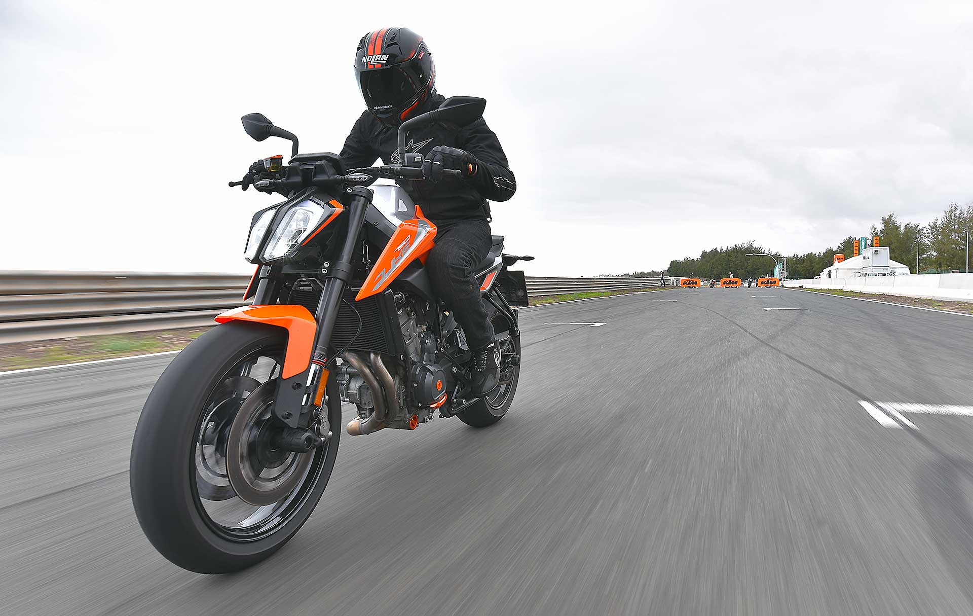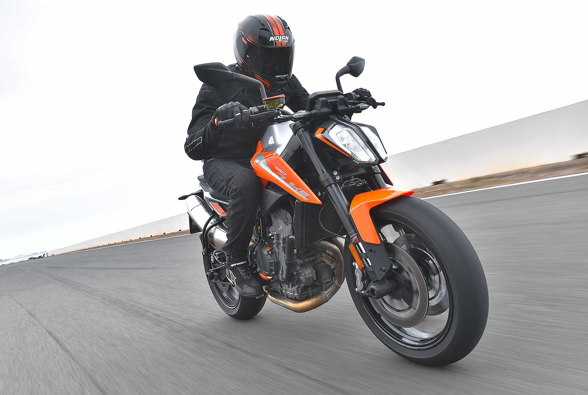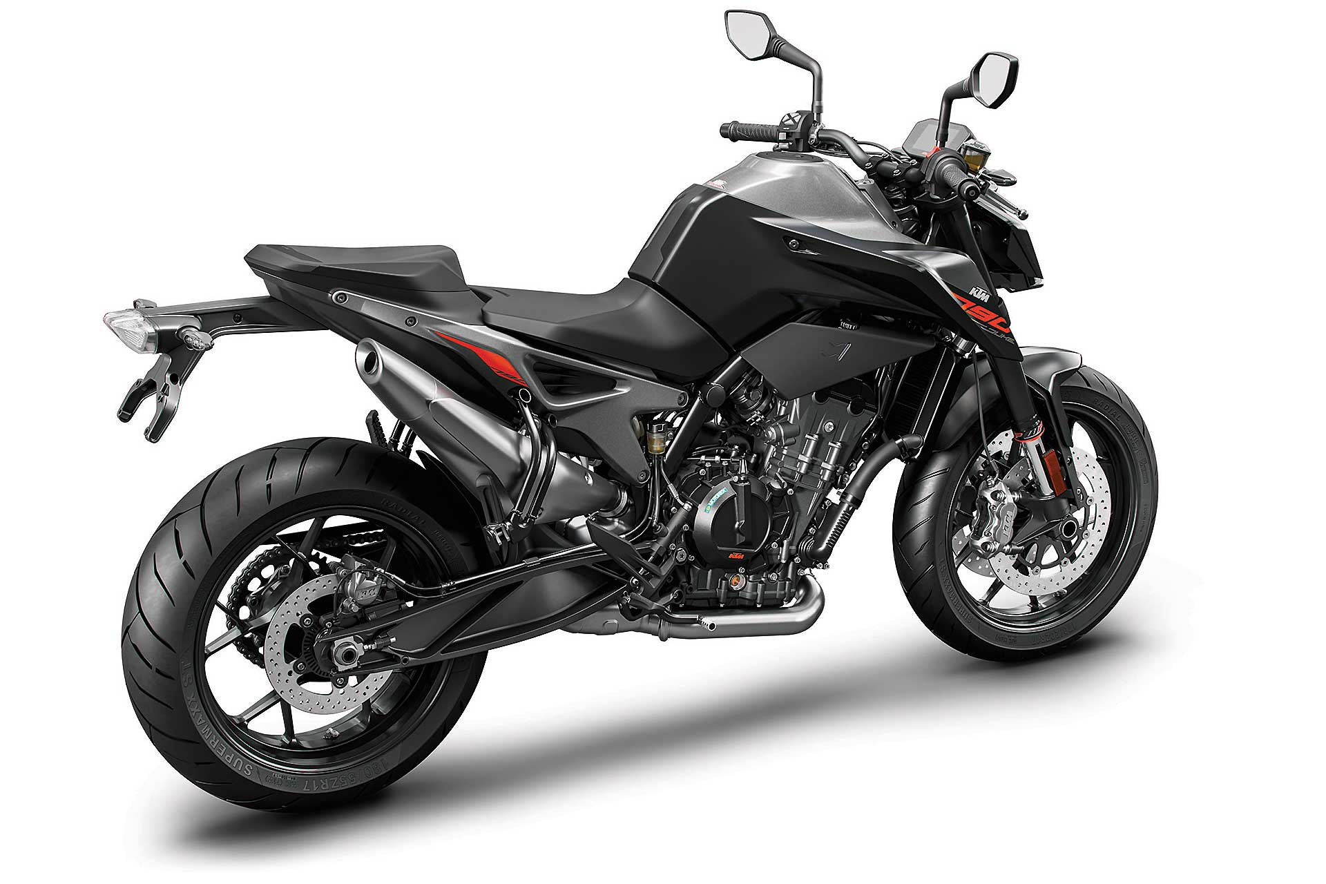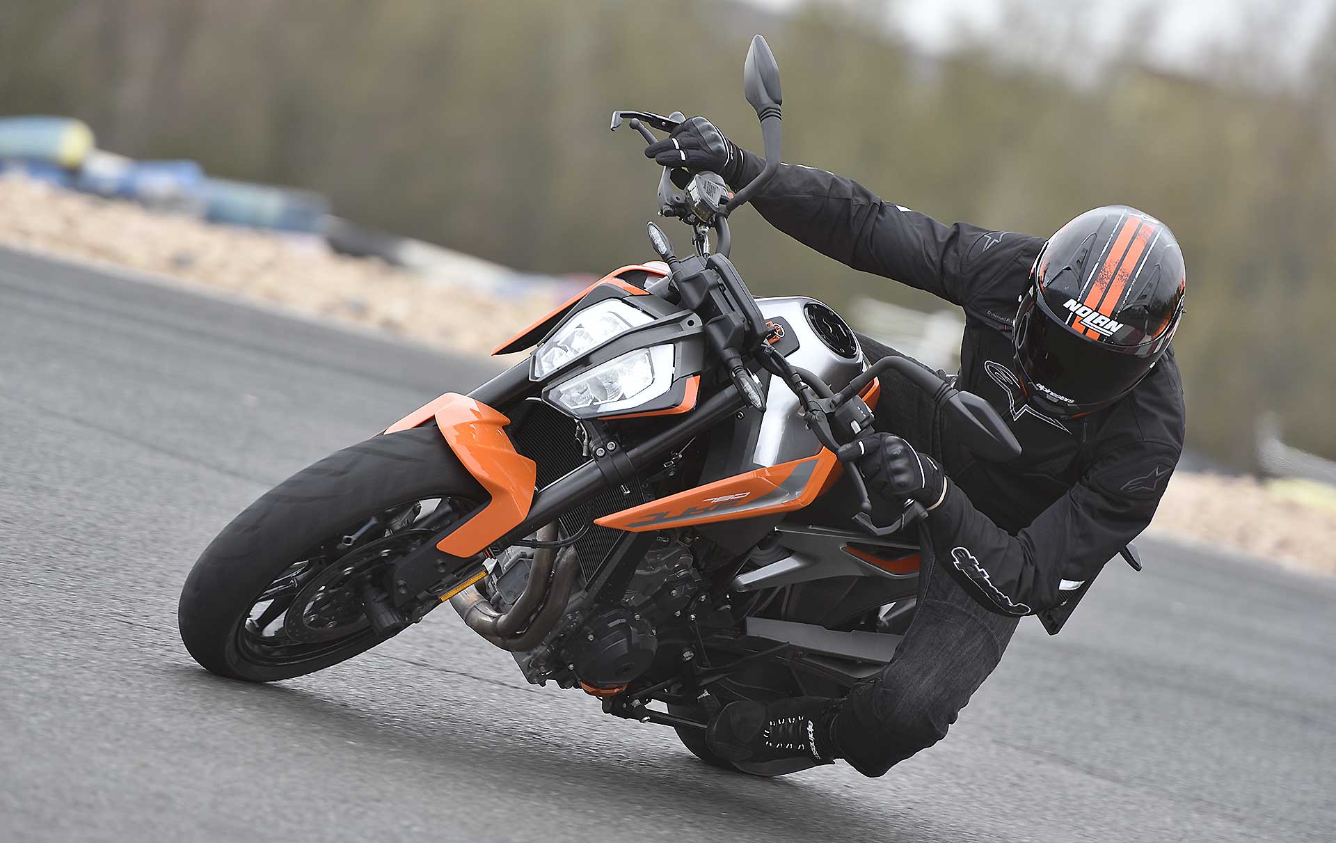 Se qualche componente ciclistico può forse apparire un po’ “semplice”, KTM invece ci è andata pesante con l’elettronica, al top (e pure oltre) nel segmento.Se il controllo di trazione regolabile (MTC) si può ritenere quasi scontato su una moderna naked sportiva, un po’ meno lo è la piattaforma IMU per gestire i principali controlli in funzione dell’inclinazione, fra i quali l’utilissimo cornering ABS, derivato dal sistema che esordì come world premiere sulla KTM 1190 Adventure del 2014, e l’MSR (Motor Slip Regulation, controllo automatico del freno motore).A tutto questo si aggiungono le mappe con i tipici riding mode KTM (Rain, Street, Sport) con in più la modalità Track completamente personalizzabile. Sorprende anche la presenza del controllo per l’impennata Anti-Wheelie (disinseribile) e addirittura del launch control, altro gadget di derivazione puramente racing. Infine, ma assolutamente rilevante, il cambio elettronico quick shift in entrambe le direzioni.Tutto compresoIl quadro si chiude con la strumentazione con display TFT a colori multifunzione come sulle più prestigiose super sportive, soluzione che però KTM usa già sulla 125 Duke. Considerando che il suddetto pacchetto incluso (di serie) nei 9.550 euro f.c., si può ritenere il nuovo giocattolo arancio a dir poco allettante. Come optional evidenziamo il sistema KTM MY RIDE per interagire con lo smarthphone, mentre è ricchissima, come sempre, l’offerta di accessori Power Parts per personalizzare in toto la moto, fra cui segnaliamo il sempre attraente terminale di scarico Akrapovic. RIDE