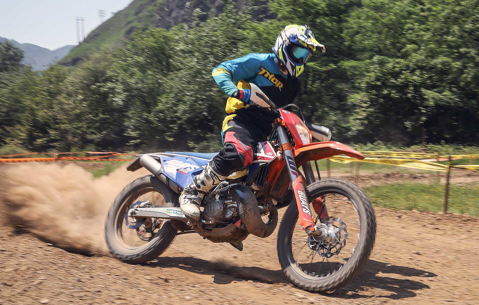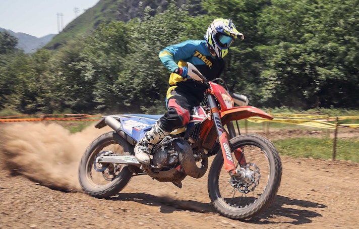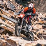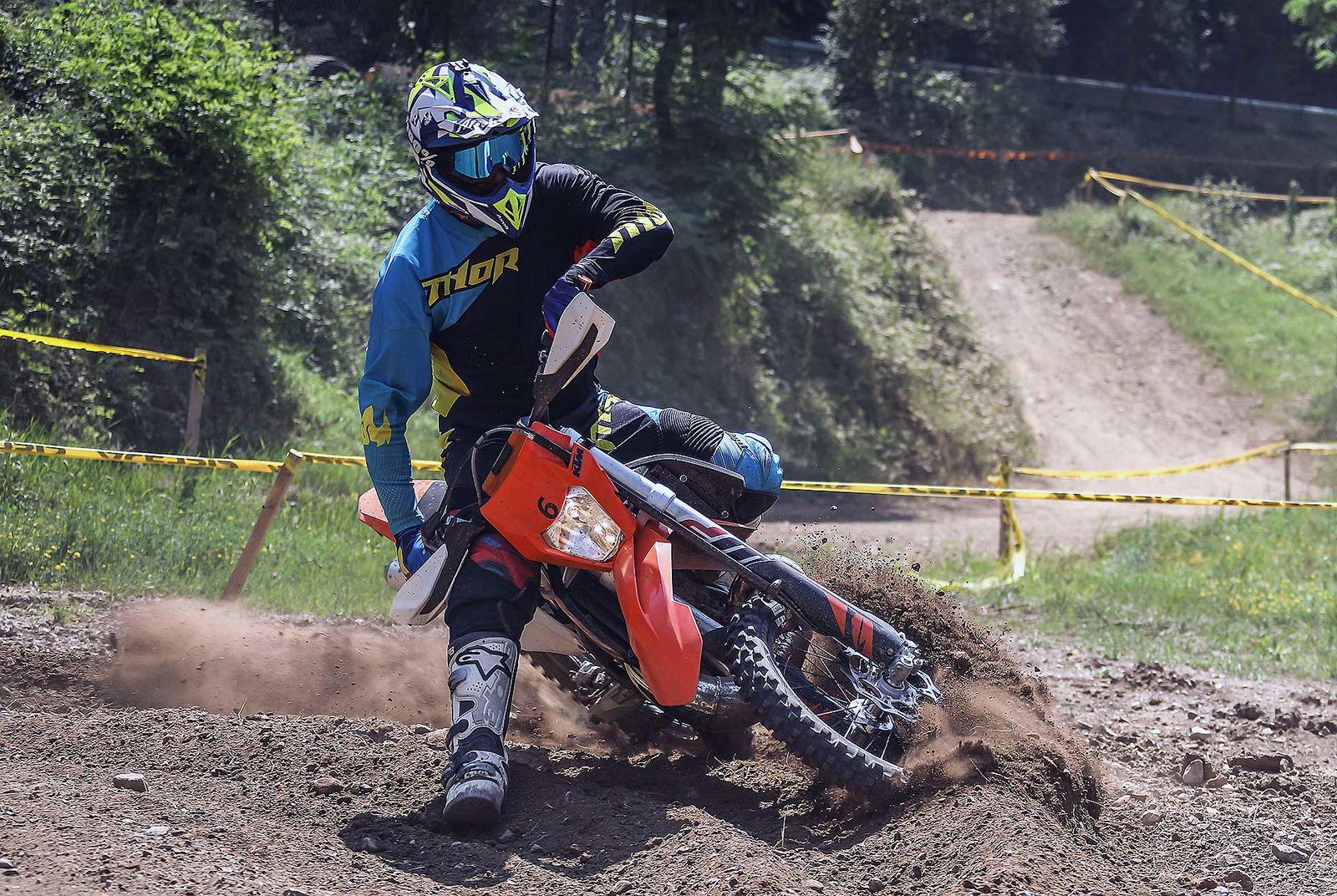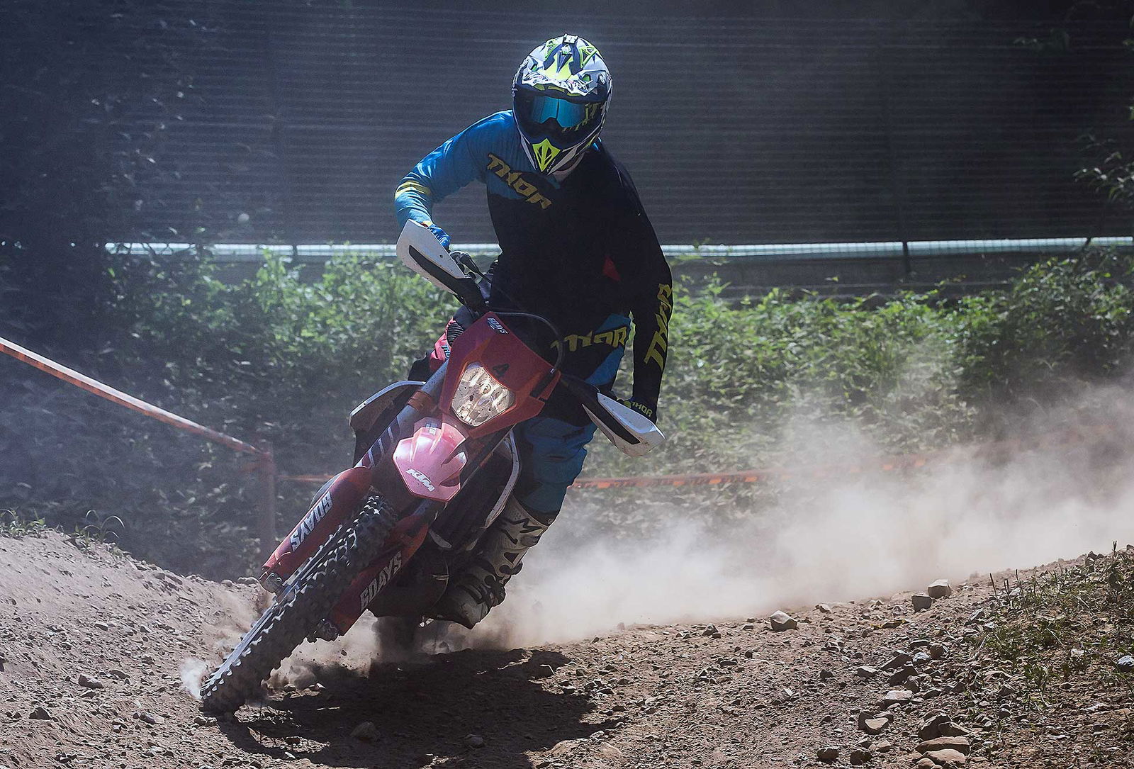Non serve tirare le marce, anche perché in pochissimi metri si prendono velocità notevoli, ma scaricarle in successione per fare strada e divorare sentieri e mulattiere. Nel confronto con la “vecchia” 300 a carburatori ha perso in buona parte anche quella classica pistonata che ti “spinge” in avanti che si avvertiva in particolare chiudendo il gas in staccata. Il feeling con il nuovo setting della forcella, come per la 250 TPI, è ottimo. La prima parte è molto scorrevole, il che garantisce un livello di comfort molto alto, e la nuova taratura più sostenuta si traduce in maggiore sicurezza in discesa, sulle buche e nei tratti veloci.