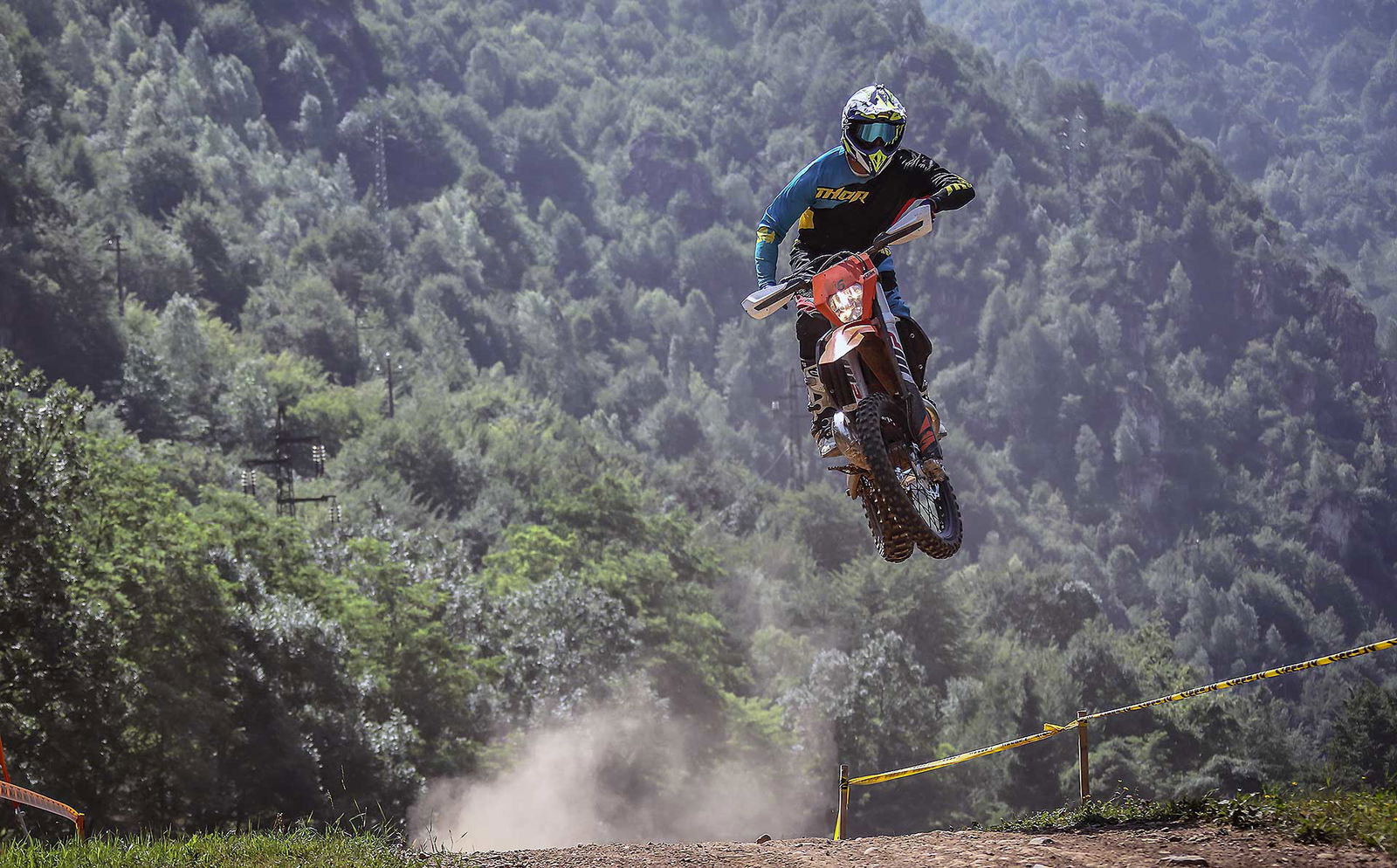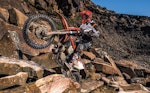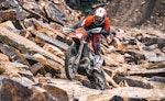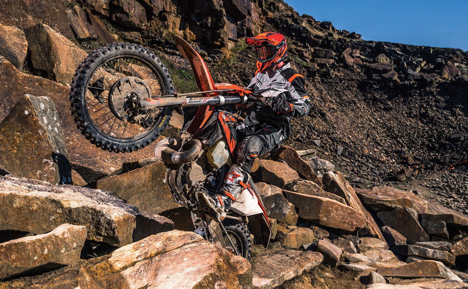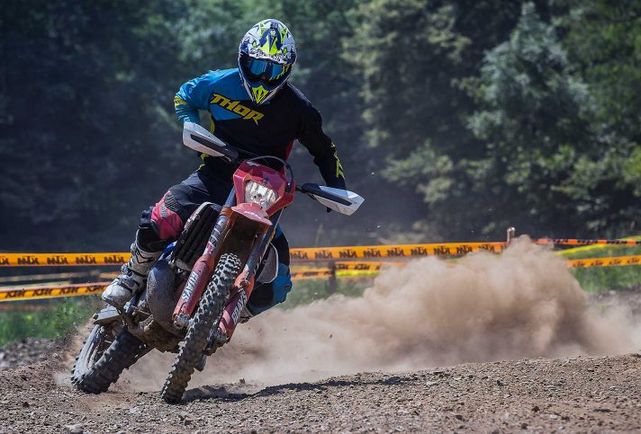 Non serve tirare le marce, anche perché in pochissimi metri si prendono velocità notevoli, ma scaricarle in successione per fare strada e divorare sentieri e mulattiere. Nel confronto con la “vecchia” 300 a carburatori ha perso in buona parte anche quella classica pistonata che ti “spinge” in avanti che si avvertiva in particolare chiudendo il gas in staccata. Il feeling con il nuovo setting della forcella, come per la 250 TPI, è ottimo. La prima parte è molto scorrevole, il che garantisce un livello di comfort molto alto, e la nuova taratura più sostenuta si traduce in maggiore sicurezza in discesa, sulle buche e nei tratti veloci.