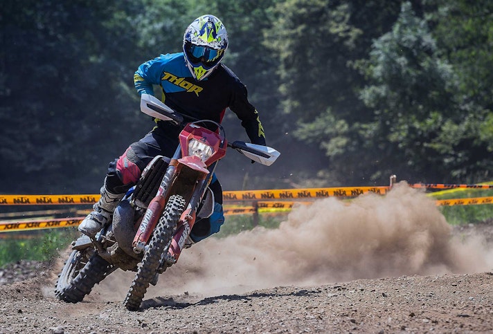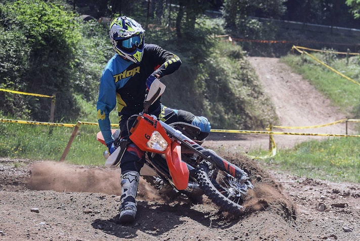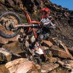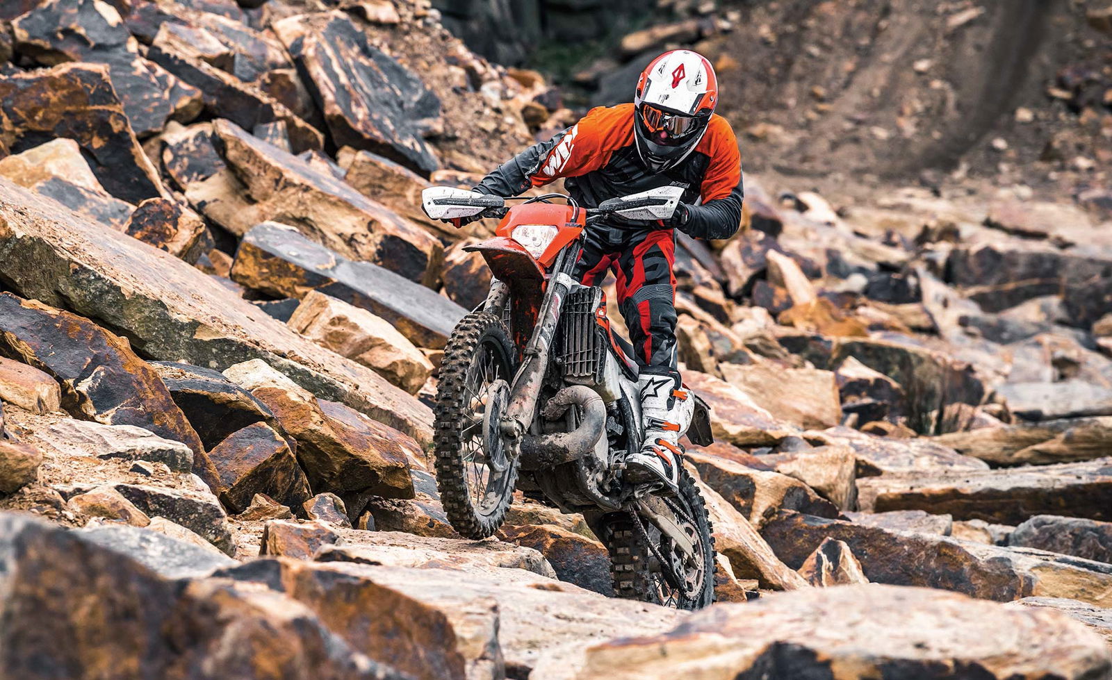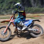 In sella le nuove KTM EXC TPI ripropongono la medesima ergonomia dei modelli 2017. La posizione di guida è naturale e adatta a piloti di ogni corporatura, ed il livello di comfort decisamente buono, con la sella non troppo dura. Le pedane allargate offrono un ottimo appoggio ed un grip notevole con gli stivali. Ma è in movimento che si scoprono immediatamente i notevoli passi avanti fatti grazie al nuovo sistema di alimentazione. Dal punto di vista dinamico la prima sensazione è di estrema leggerezza. La 250 sembra addirittura una moto di cilindrata più piccola per quanto è agile e ben bilanciata. E’ leggerissima tra le mani ed il nuovo motore la rende facilissima da usare già dai primi metri.