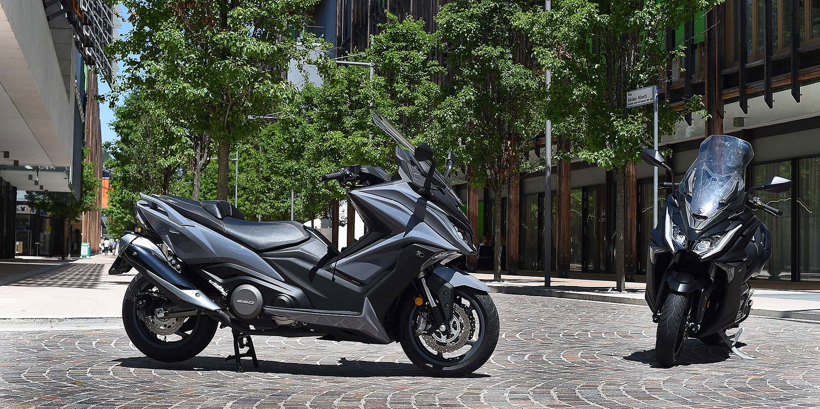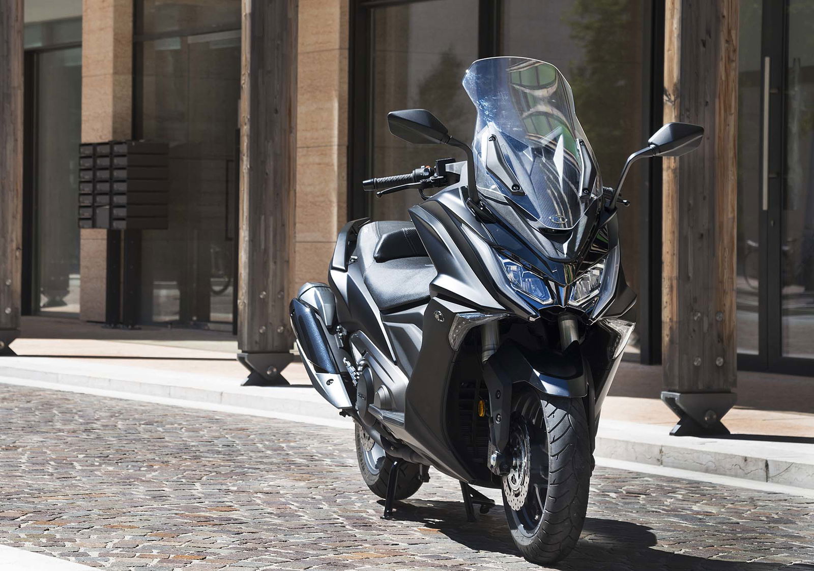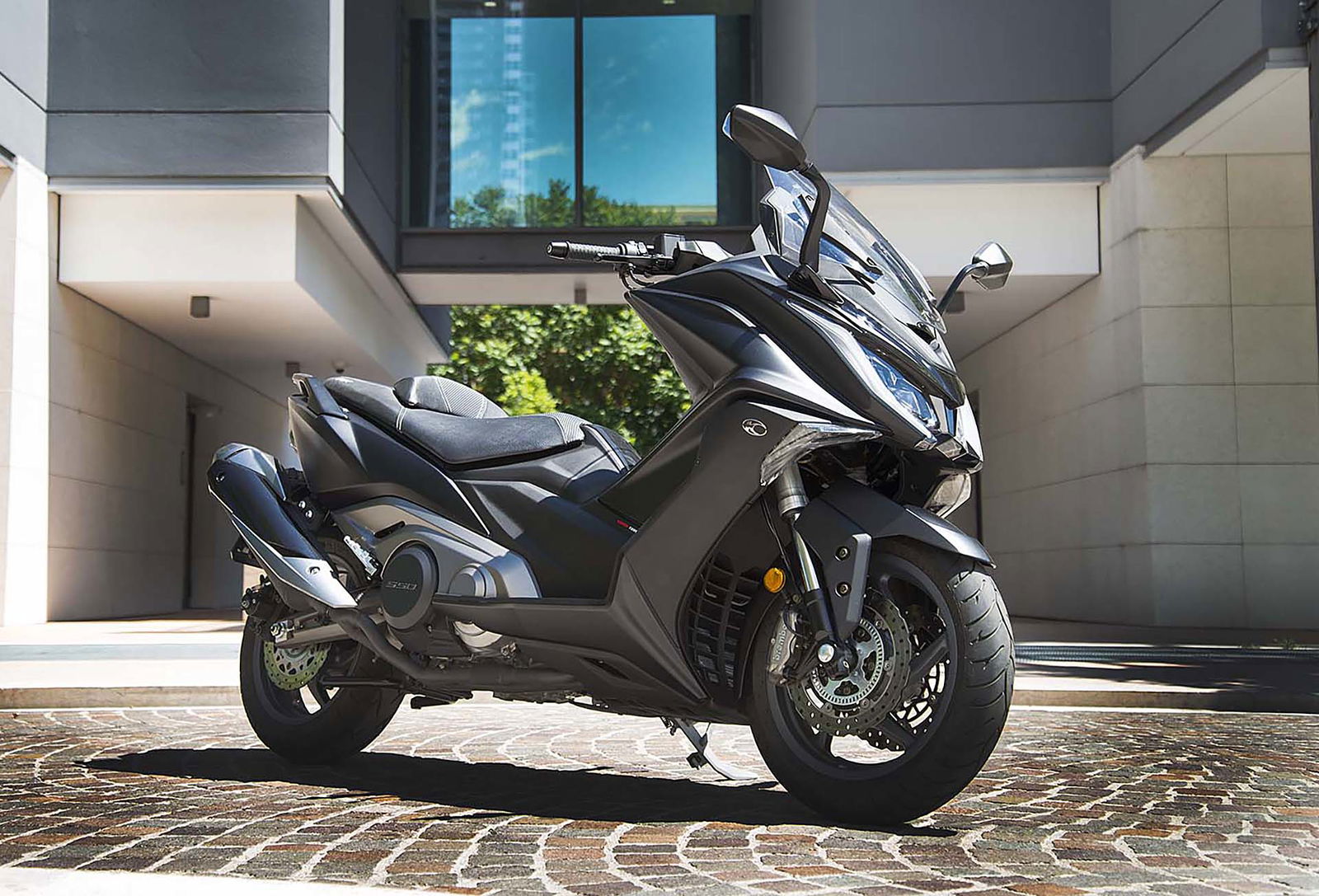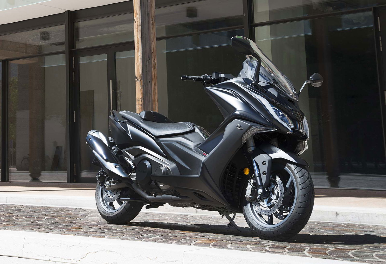 La ciclistica non è meno evoluta. La struttura portante è un telaio perimetrale in alluminio con quote stabili ma che non obbligano ad avere la patente nautica: 1.580 mm l’interasse. Anche il forcellone è in alluminio ed è infulcrato al telaio grazie a un monoammortizzatore posizionato lateralmente. La forcella invece è a steli rovesciati da 41 mm ed è sorretta da due piastre. L’impianto frenante è una chicca: ci sono due dischi anteriori a margherita lavorati da pinze Brembo radiali, un’anteprima assoluta nel mondo scooter. A evitare le perdite di aderenza ci pensa l’ABS Bosch di ultima generazione.ERGOFITCapitolo ergonomia, anche in questo caso il Kymco AK 550 non si fa mancare nulla, proprio come una vera ammiraglia. La sella è ampia e spaziosa, lo schienalino è regolabile nella distanza e nel sottosella ci stanno (così è dichiarato) un casco integrale e un jet. Si continua con la strumentazione TFT a colori, completamente digitale e che permette, tra le altre cose, di collegare il veicolo allo smartphone e ricevere le notifiche direttamente sullo schermo con il sistema Noodoe. C’è il plexi regolabile su due posizioni, i fari full led, le manopole riscaldabili, la presa USB nel vano sinistro del retroscudo e l’avviamento Keyless. Per 9.190 euro (prezzo lancio, poi diventerà 9.790) ci si porta a casa un mezzo a cui manca solo la Moka per farvi il caffè. È disponibile da subito nelle tre colorazioni argento, nera oppure grigia.CONTINUA A LEGGERE –> VAI ALLA PROVARIDEBUONA LA PRIMA