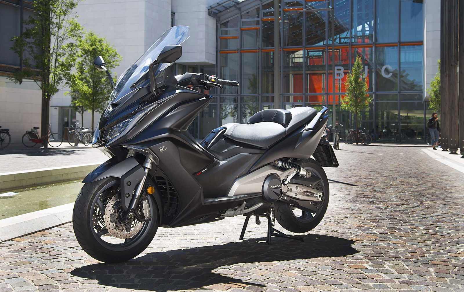 Se mai ci fosse bisogno di ribadirlo, Kymco è un’azienda florida. Lo dimostrano i suoi numeri di mercato (sempre sul podio di tutte le classifiche europee, quatro brand in assoluto per vendite in Italia ) ma non solo. Tante Case blasonate si sono rivolte proprio a Kymco per progettare un nuovo scooter, chiedendo una semplice consulenza o in alcuni casi addirittura la fornitura vera e propria di motore e telaio. Facciamo nomi? BMW e Kawasaki, tanto per dirne un paio. Nel frattempo Kymco è andata avanti e in questi ultimi anni ha lavorato sodo con un solo scopo: posizionare il proprio brand lassù, dove osano i prodotti premium, scrollandosi di dosso la nomea di azienda buona solo per gli scooter economici. E con questo nuovo Kymco AK 550 ci sono riusciti.FORZA ITALIAInutile girarci attorno: il nuovo Kymco AK550 punta il mirino dritto verso il re dei maxi scooter, ovvero lo Yamaha TMAX, che si è rinnovato proprio quest’anno. Sportivo e turistico allo stesso tempo, osservandolo con occhio attento (o magari guidandolo) si capisce tuttavia come i due prodotti siano molto diversi. Anche perché, e questo è un vanto dell’azienda, c’è molta Italia nel nuovo AK: il design è stato quasi interamente studiato e pensato qui, nel Bel Paese, e anche per lo studio dinamico del veicolo ci si è affidati a una piccola ma prodigiosa engineering italiana.PUÒ ACCOMPAGNARE SOLO