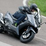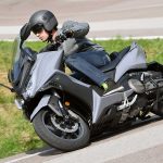 In compenso, il livello qualitativo dei materiali e degli accoppiamenti è molto alto. Plastiche ballerine o meccanismi facili alla rottura, non pervenuti. C’è una bella sensazione di solidità, anche quando ci si accomoda sopra la lunga sella (nel TMAX si è più dentro che sopra) e s’impugna il manubrio. Manubrio che avrei preferito posizionato più in alto, soprattutto per chi sfiora l’uno e novanta. A proposito di sella, sotto c’è tanto spazio sviluppato in profondità, per caricarci facilmente anche l’integrale più grosso del mercato.PRIMI PASSI https://youtu.be/tBGlGqUf9Hg Durante la conferenza stampa, gli ingegneri hanno raccontato per filo e per segno le ore perse a ricercare la ciclistica perfetta, tra calcoli e collaudi. E il risultato, bisogna dirlo, è notevole: il peso ben distribuito (50/50) unito all’ottimo assetto delle sospensioni (morbide ma non cedevoli) regala una piacevole sensazione di facilità, come se tenere in equilibrio un mezzo da 230 kg fosse un gioco da ragazzi. L’AK 550 invoglia a giocare perché te lo senti in mano dopo pochi metri, tutti i comandi sono sotto controllo e molto ben gestibili.SI GIOCA