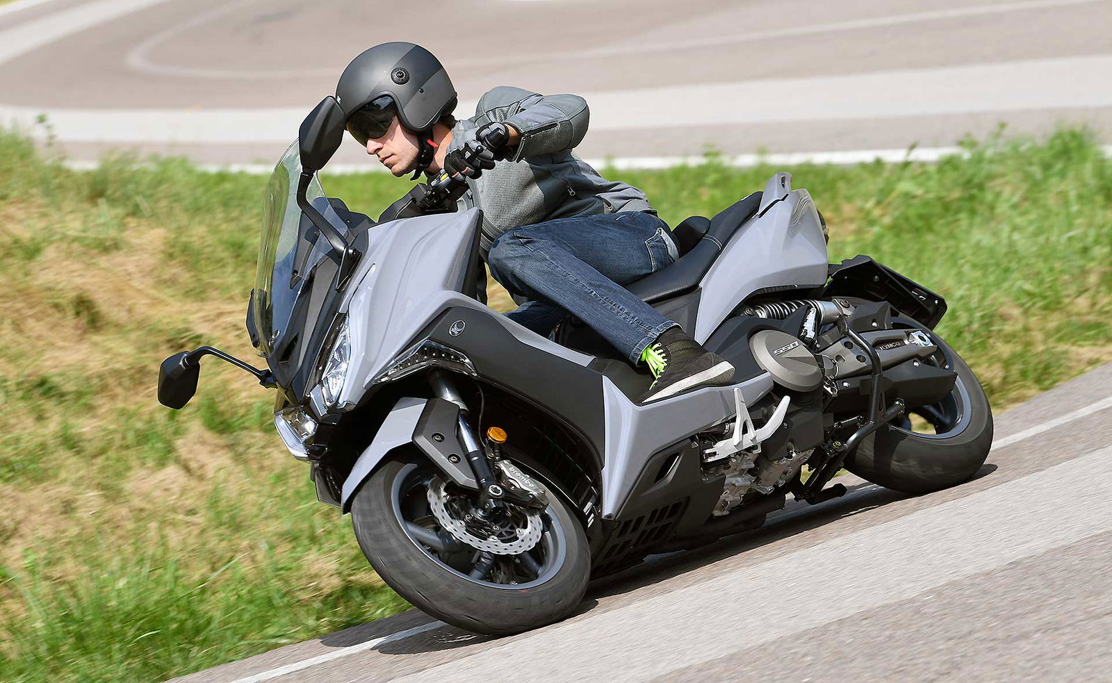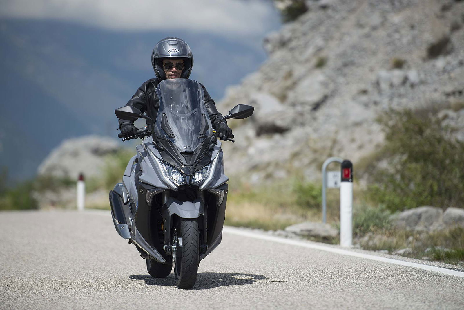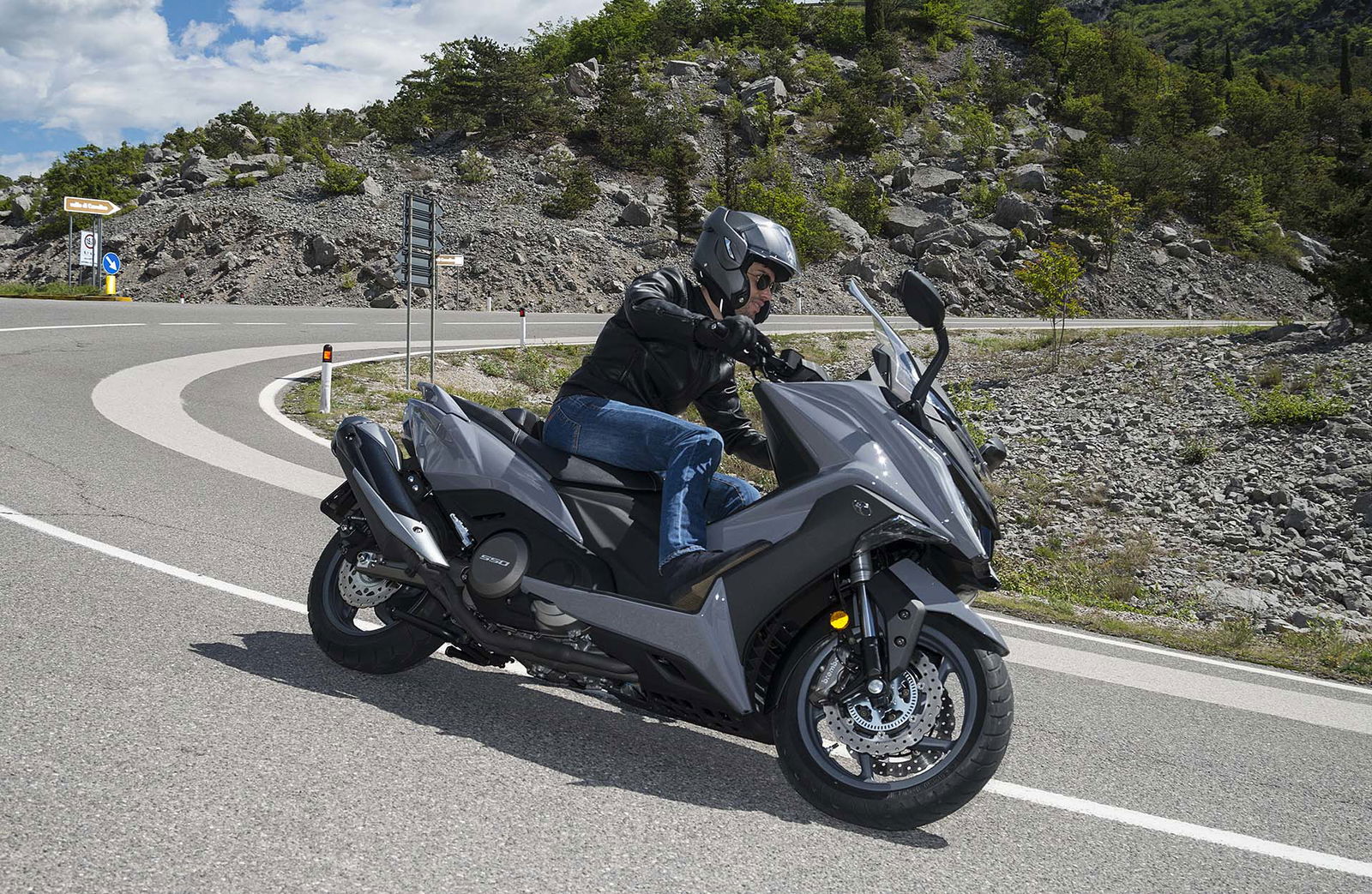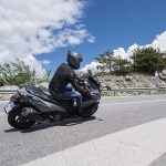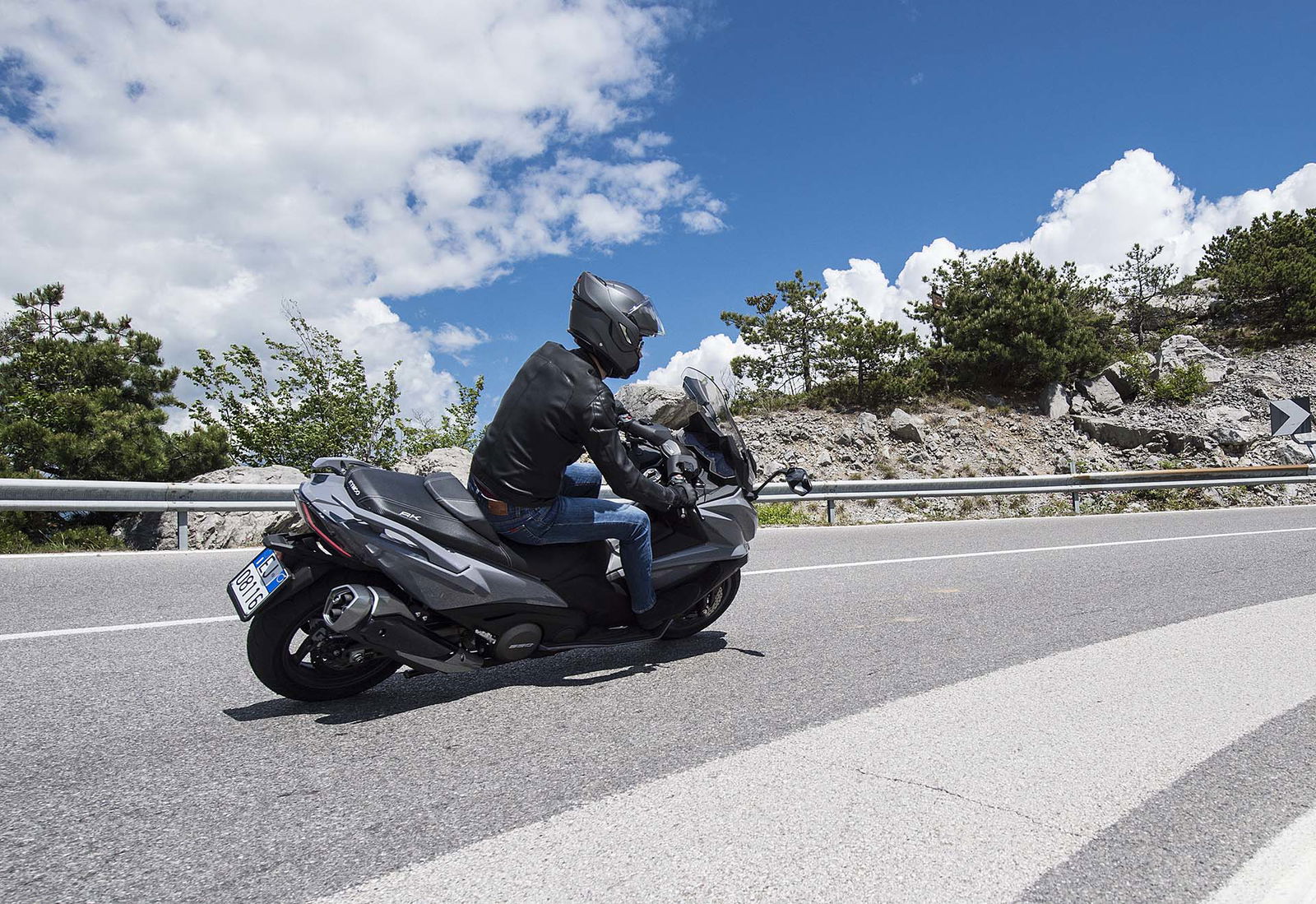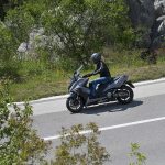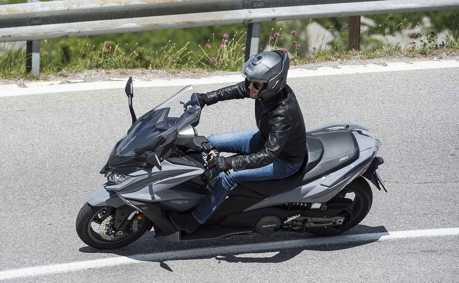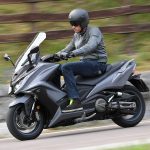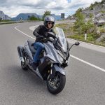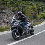 Un lungo tratto rettilineo permette di capire come si comporta ad alte velocità. La protezione dall’aria potrebbe essere migliore per i più alti (nella posizione più bassa del plexi standard, la testa rimane quasi tutta fuori se non ci si accuccia), ma spalle e braccia sono sempre ben coperte, come le gambe. A 130 km/h il rumore di fondo è quasi nullo, mentre la stabilità, anche sui curvoni, è a prova di bomba.CHE FACCIO, STACCO (L’ASSEGNO)?Ecco perché il “buona la prima”. Se avete letto tutto, avrete capito che l’AK 550 è molto valido. Non ha veri punti deboli a meno di qualche leggerezza trascurabile. E considerato quanto costa in meno rispetto al TMAX, gli si perdona anche l’assenza di un controllo di trazione. Ma, in fondo, questo Kymco è solo all’inizio della sua carriera che viste le premesse promette di essere brillante.