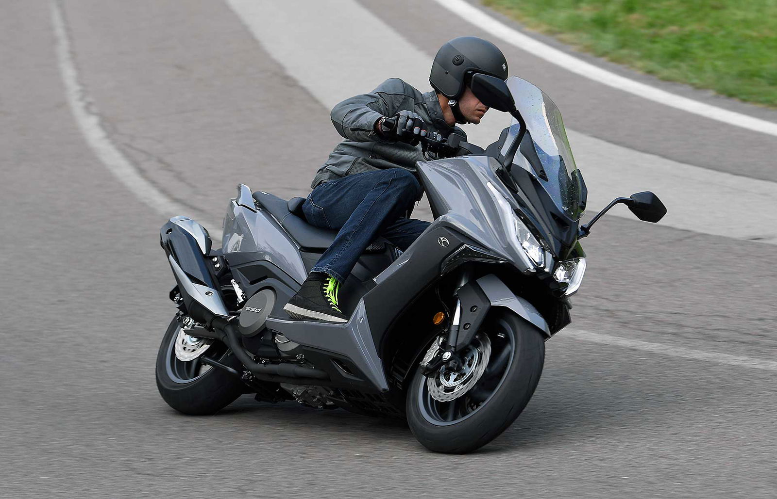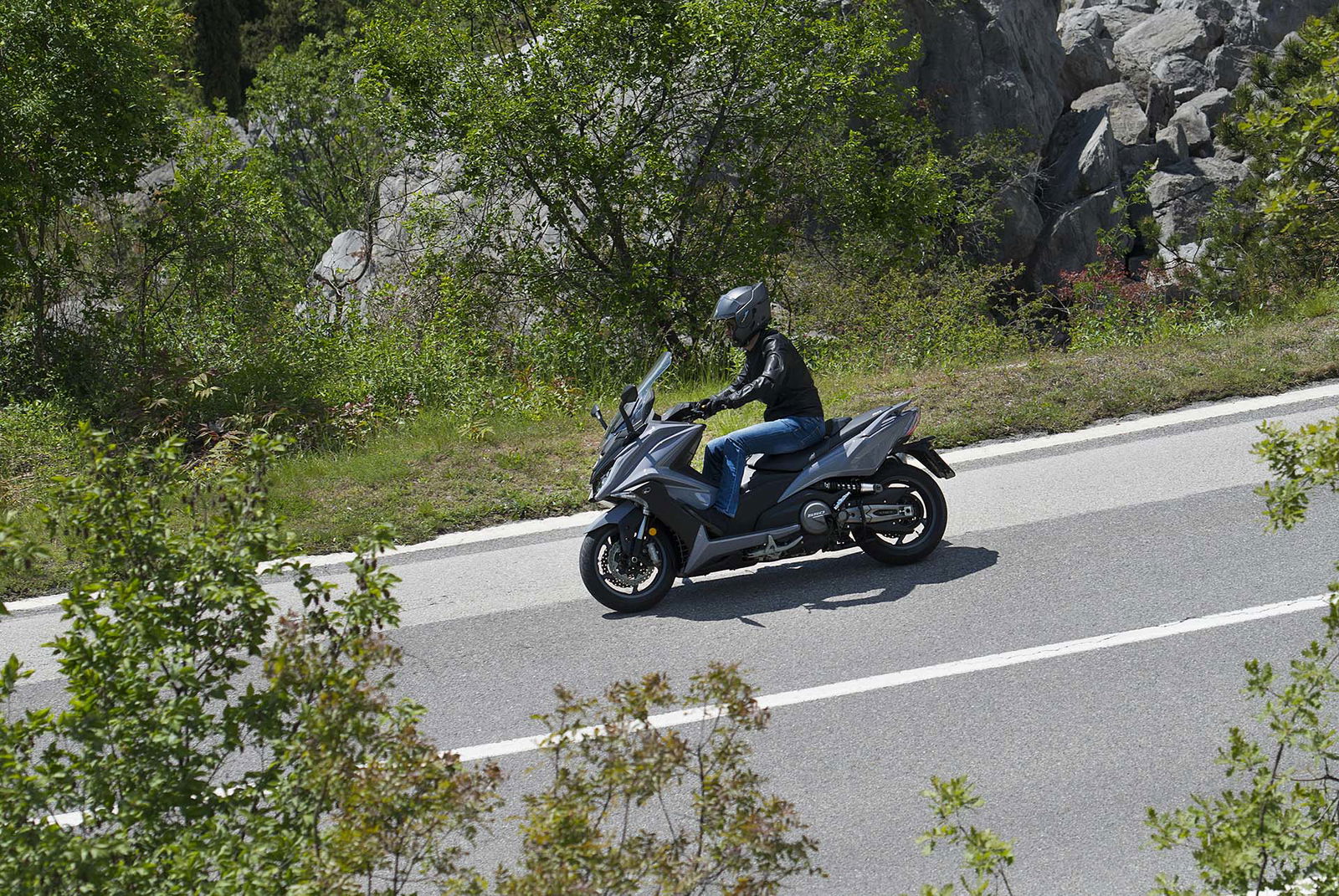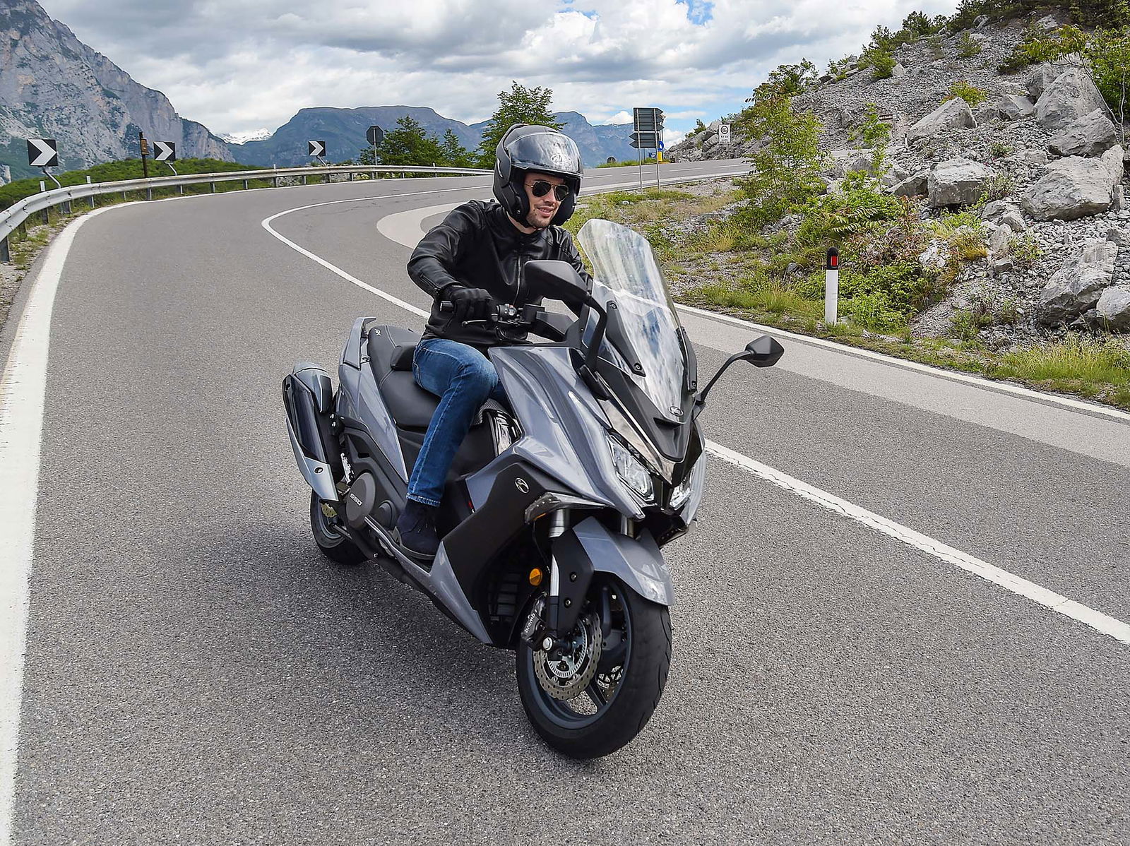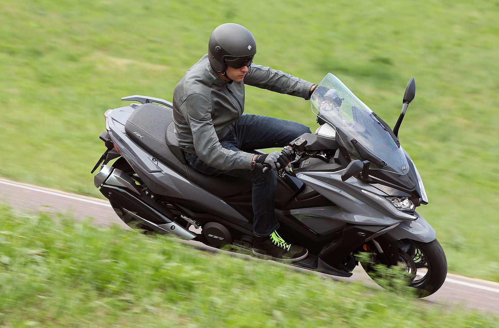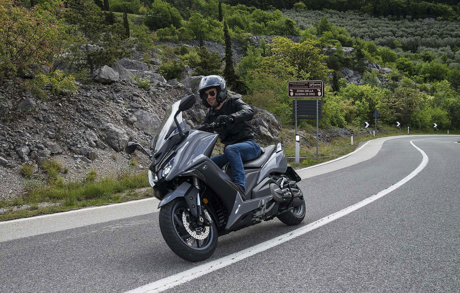 Un lungo tratto rettilineo permette di capire come si comporta ad alte velocità. La protezione dall’aria potrebbe essere migliore per i più alti (nella posizione più bassa del plexi standard, la testa rimane quasi tutta fuori se non ci si accuccia), ma spalle e braccia sono sempre ben coperte, come le gambe. A 130 km/h il rumore di fondo è quasi nullo, mentre la stabilità, anche sui curvoni, è a prova di bomba.CHE FACCIO, STACCO (L’ASSEGNO)?Ecco perché il “buona la prima”. Se avete letto tutto, avrete capito che l’AK 550 è molto valido. Non ha veri punti deboli a meno di qualche leggerezza trascurabile. E considerato quanto costa in meno rispetto al TMAX, gli si perdona anche l’assenza di un controllo di trazione. Ma, in fondo, questo Kymco è solo all’inizio della sua carriera che viste le premesse promette di essere brillante.