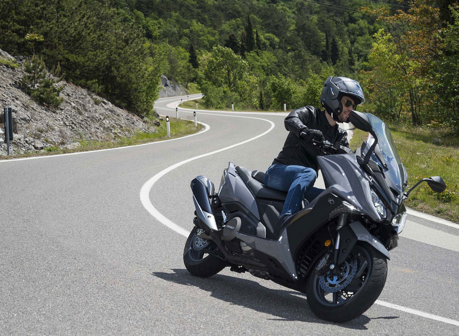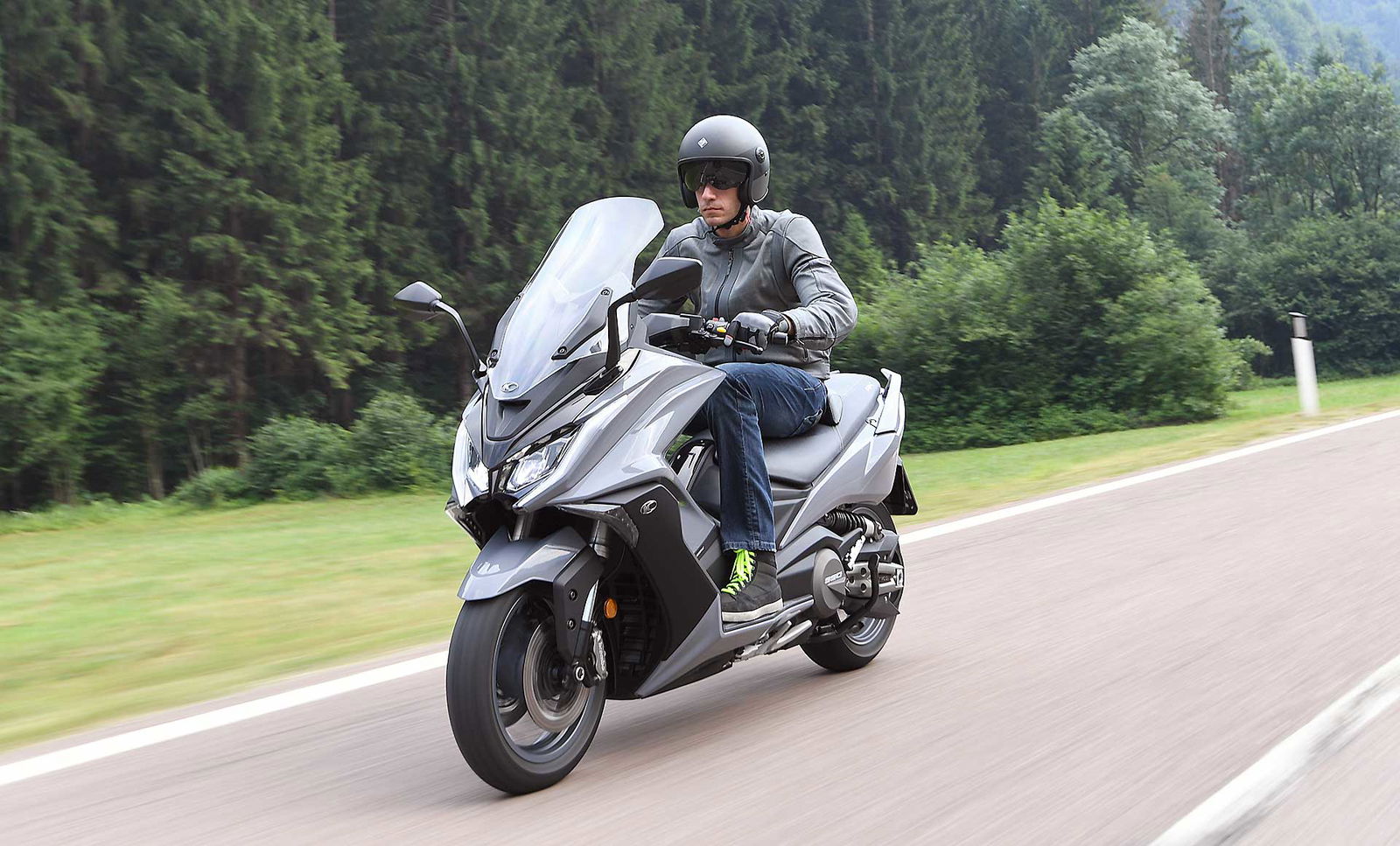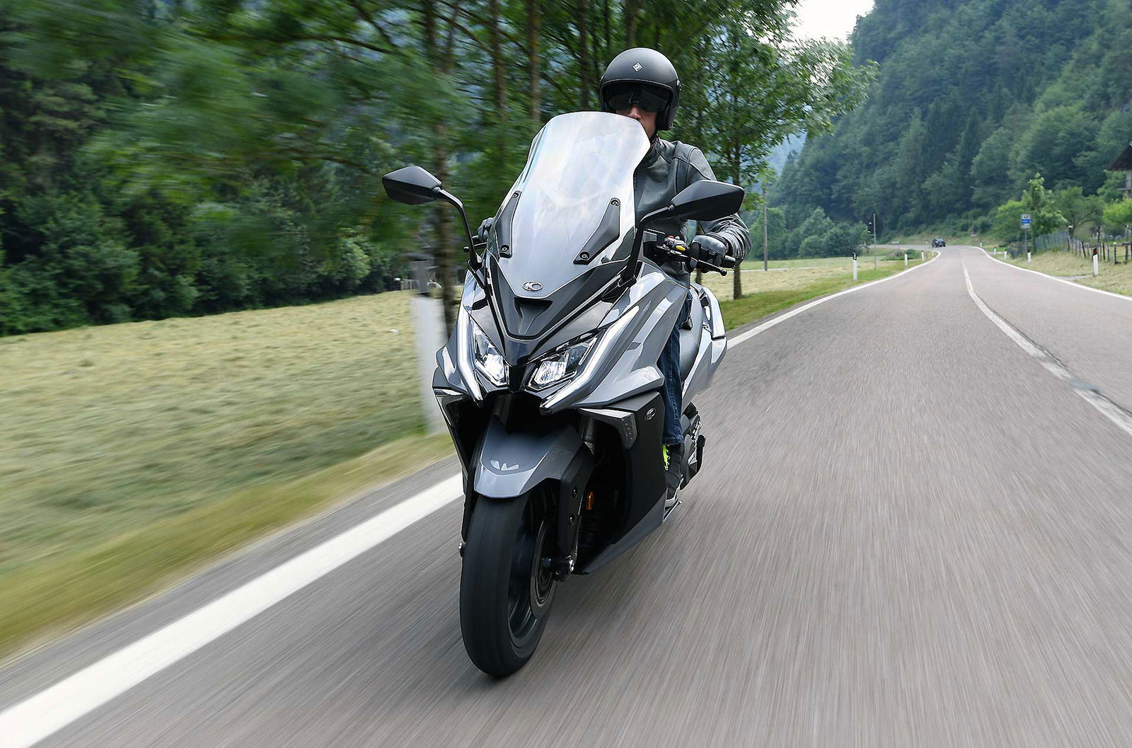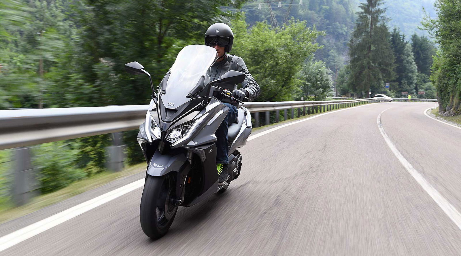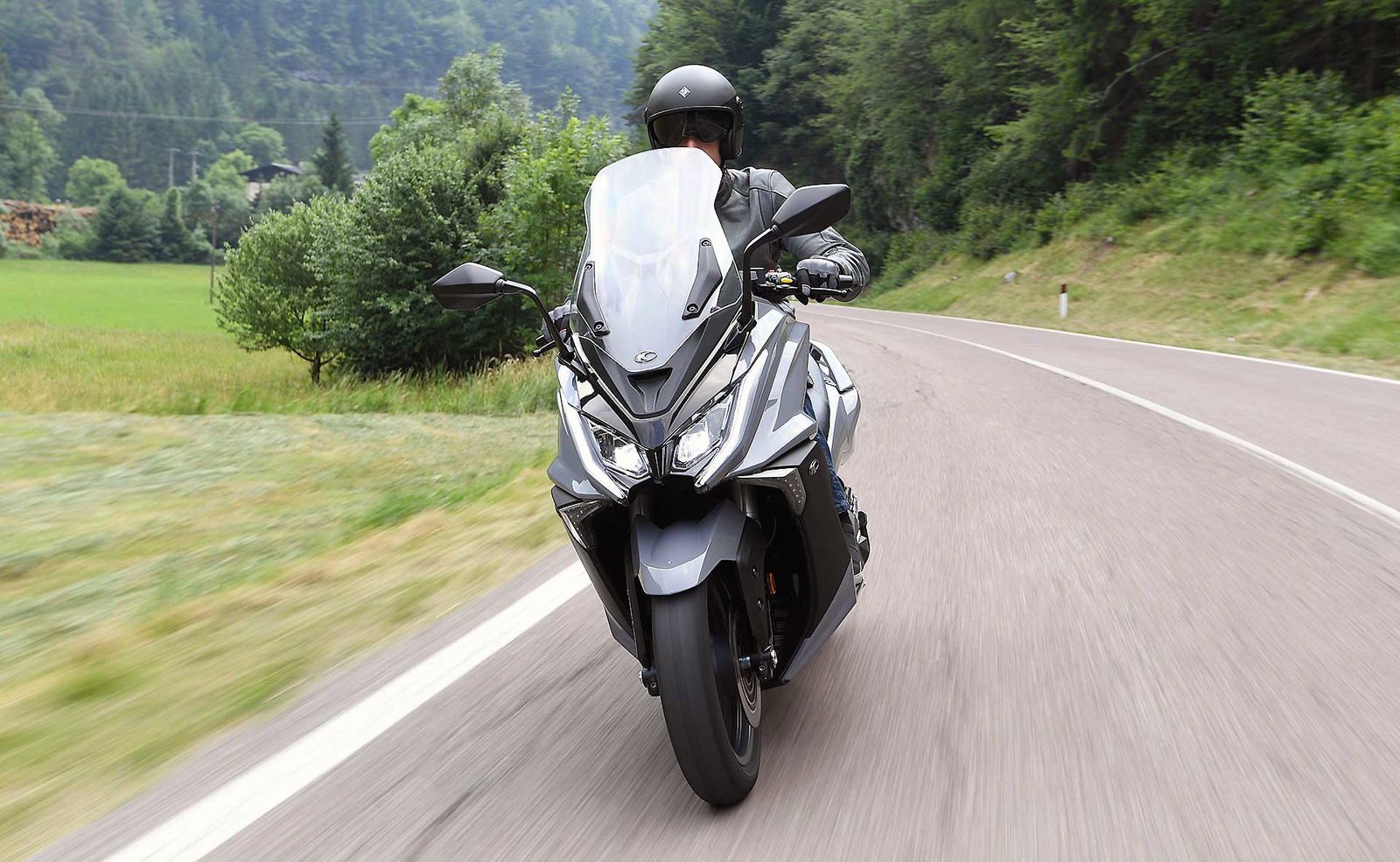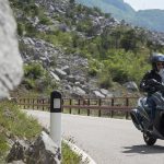 Un lungo tratto rettilineo permette di capire come si comporta ad alte velocità. La protezione dall’aria potrebbe essere migliore per i più alti (nella posizione più bassa del plexi standard, la testa rimane quasi tutta fuori se non ci si accuccia), ma spalle e braccia sono sempre ben coperte, come le gambe. A 130 km/h il rumore di fondo è quasi nullo, mentre la stabilità, anche sui curvoni, è a prova di bomba.CHE FACCIO, STACCO (L’ASSEGNO)?Ecco perché il “buona la prima”. Se avete letto tutto, avrete capito che l’AK 550 è molto valido. Non ha veri punti deboli a meno di qualche leggerezza trascurabile. E considerato quanto costa in meno rispetto al TMAX, gli si perdona anche l’assenza di un controllo di trazione. Ma, in fondo, questo Kymco è solo all’inizio della sua carriera che viste le premesse promette di essere brillante.