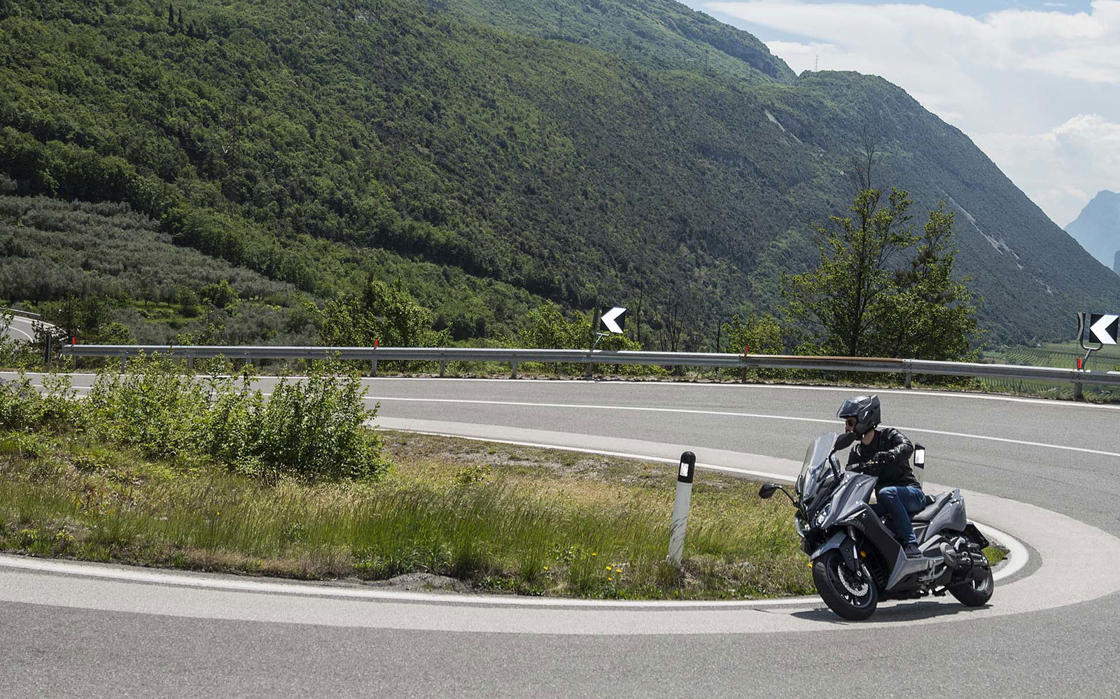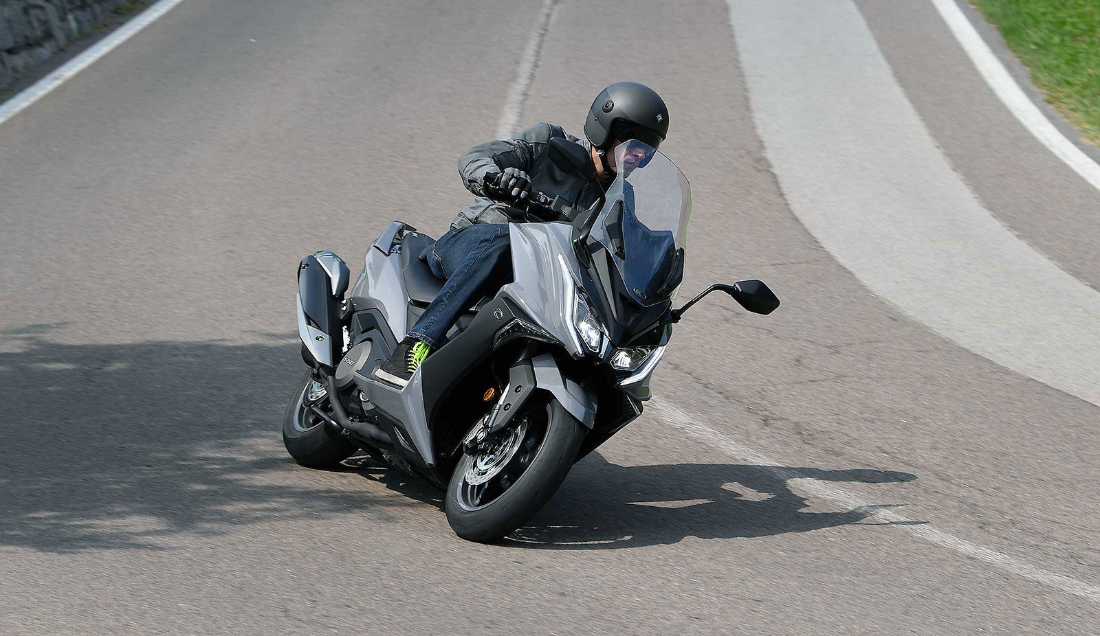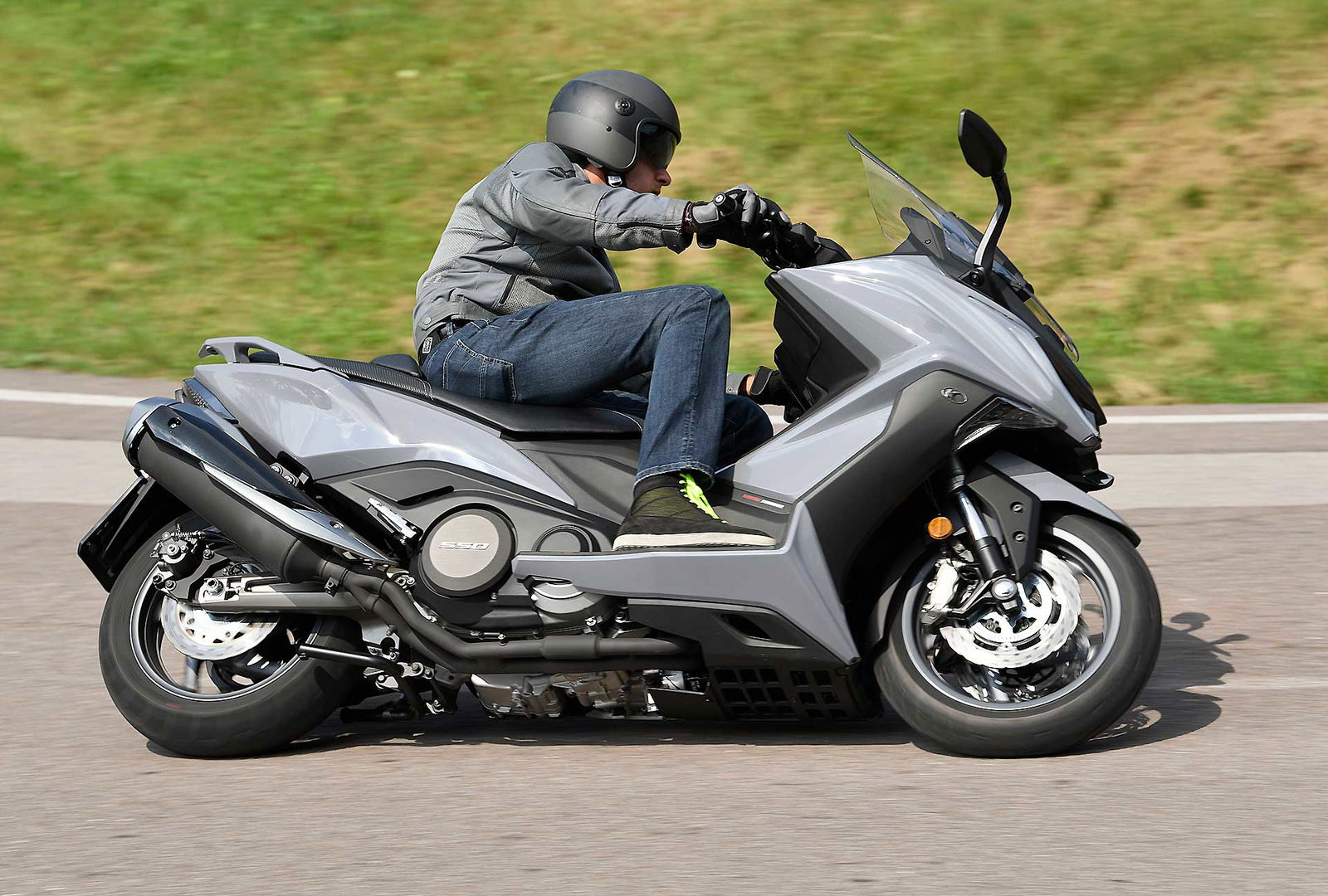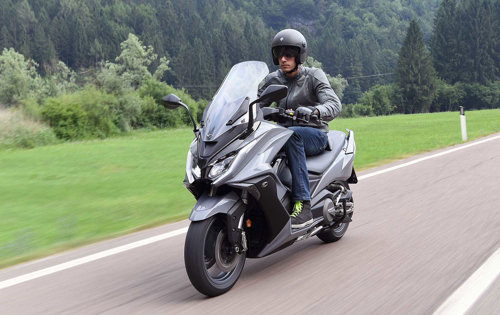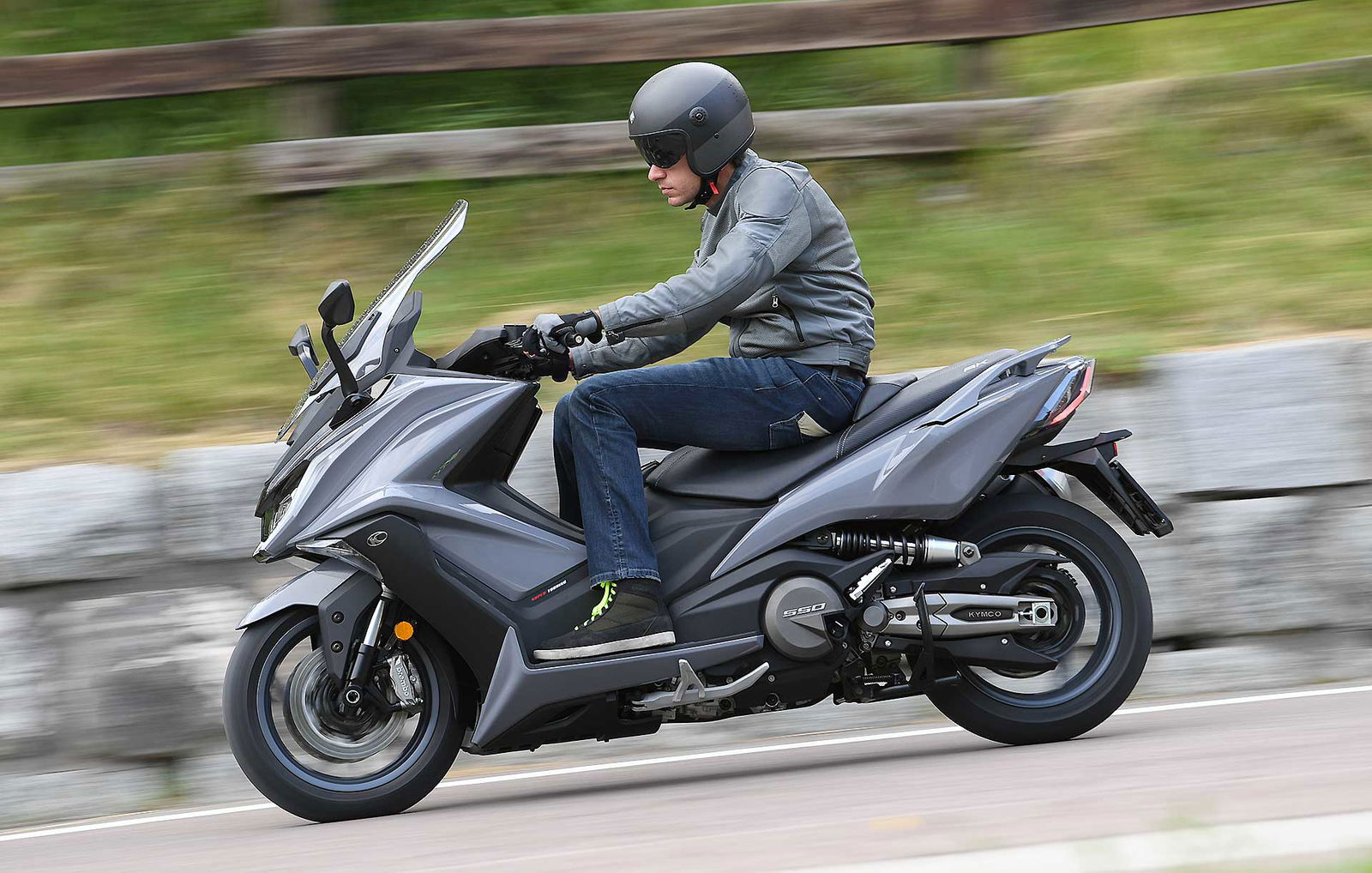 Un lungo tratto rettilineo permette di capire come si comporta ad alte velocità. La protezione dall’aria potrebbe essere migliore per i più alti (nella posizione più bassa del plexi standard, la testa rimane quasi tutta fuori se non ci si accuccia), ma spalle e braccia sono sempre ben coperte, come le gambe. A 130 km/h il rumore di fondo è quasi nullo, mentre la stabilità, anche sui curvoni, è a prova di bomba.CHE FACCIO, STACCO (L’ASSEGNO)?Ecco perché il “buona la prima”. Se avete letto tutto, avrete capito che l’AK 550 è molto valido. Non ha veri punti deboli a meno di qualche leggerezza trascurabile. E considerato quanto costa in meno rispetto al TMAX, gli si perdona anche l’assenza di un controllo di trazione. Ma, in fondo, questo Kymco è solo all’inizio della sua carriera che viste le premesse promette di essere brillante.