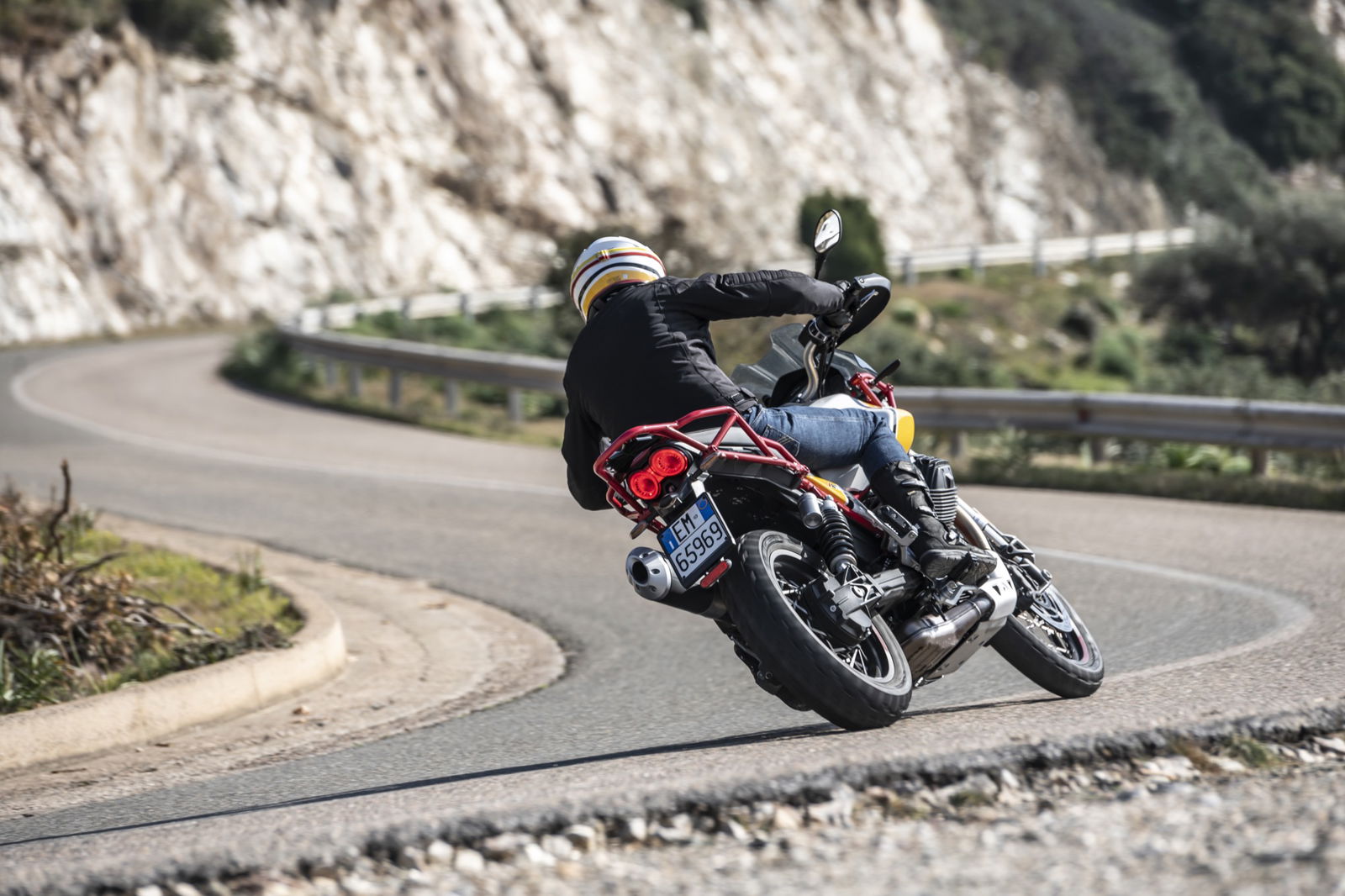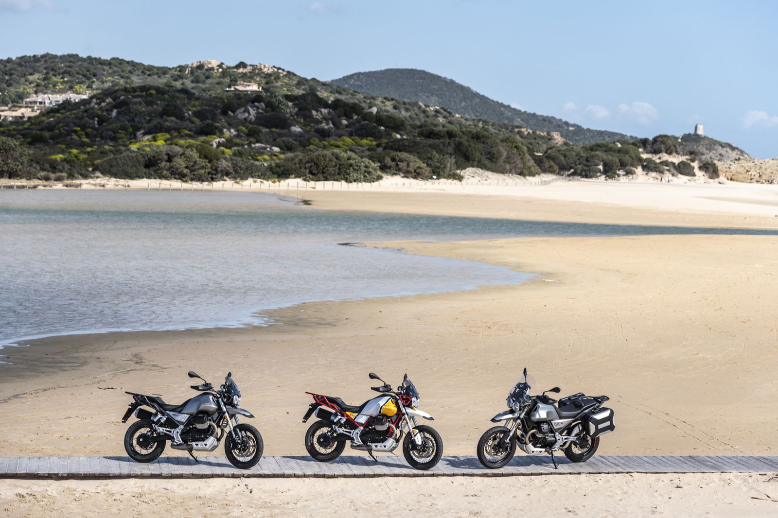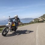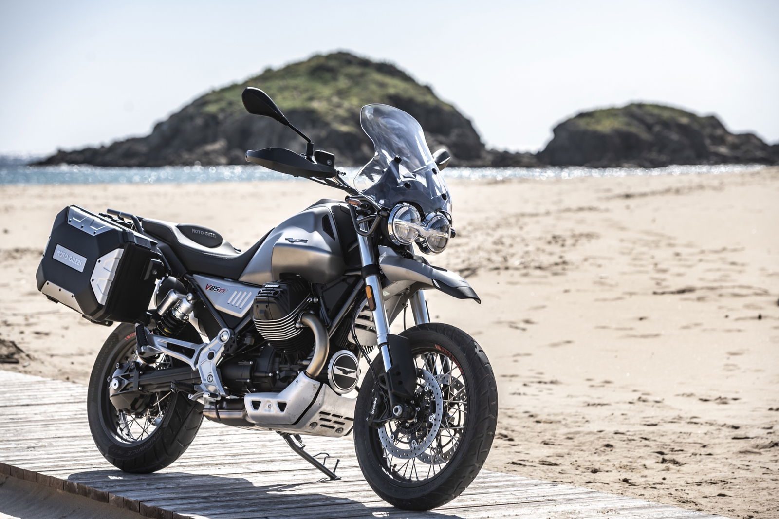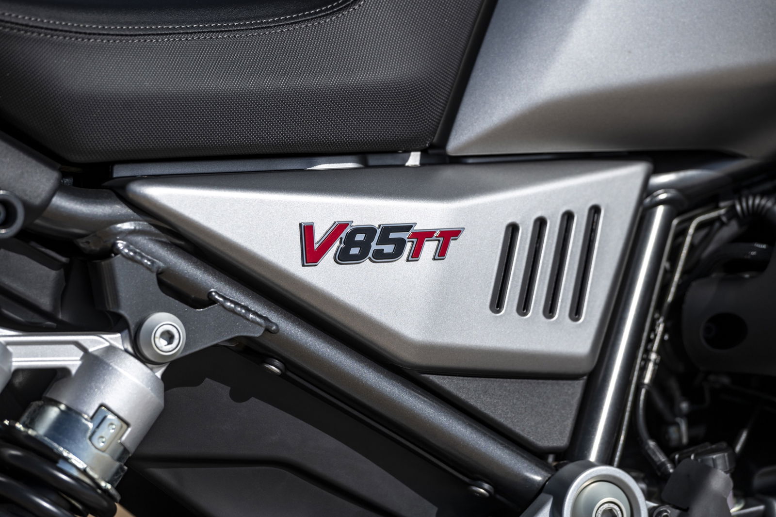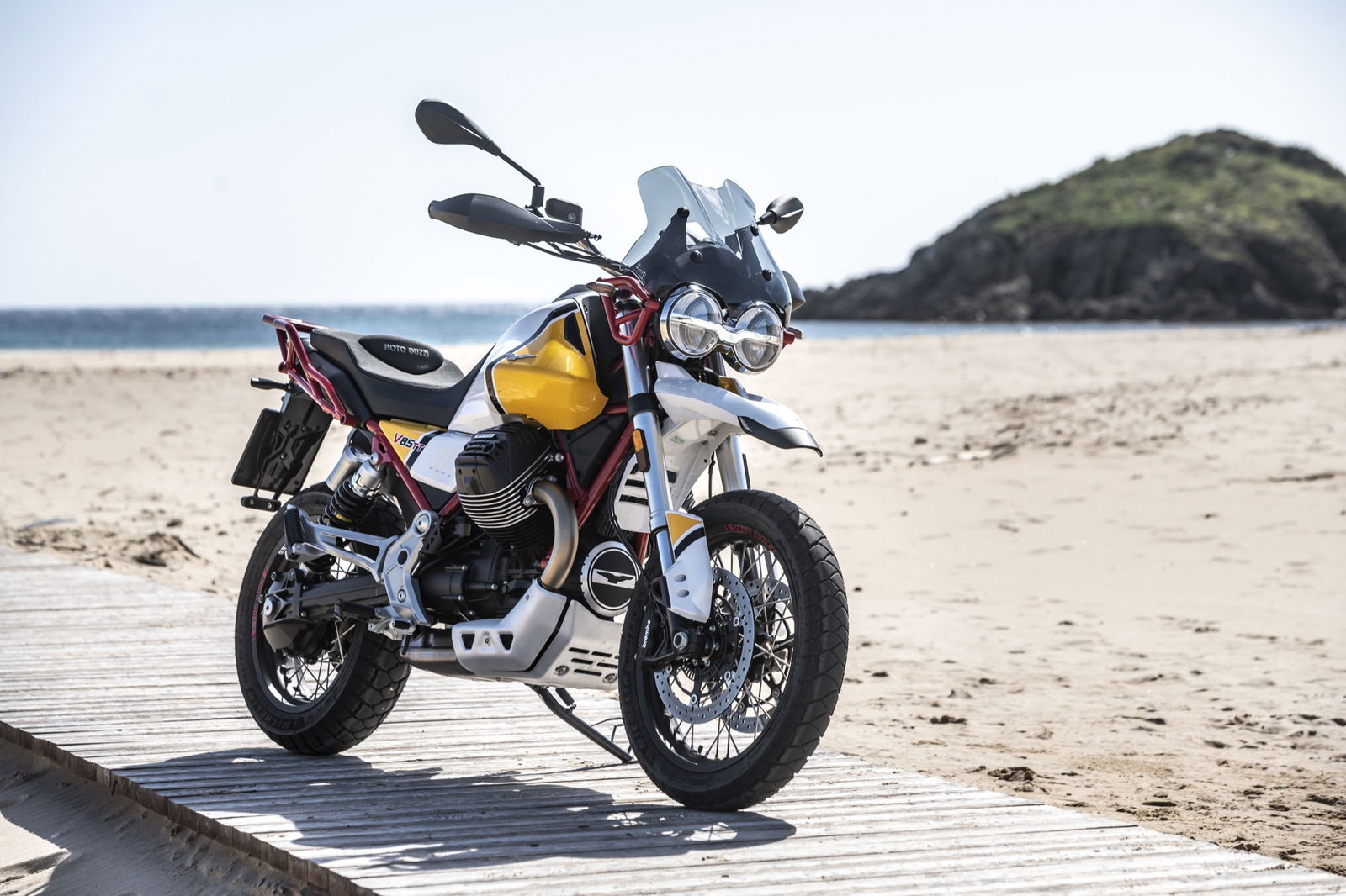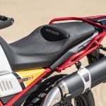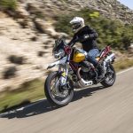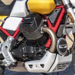Il motore V2 a 90° da 853 cc è coerente con i dettami storici Guzzi del raffreddamento ad aria e della distribuzione a due valvole, ma è stato rifatto completamente: raggiunge gli 80 cavalli a 7.750 giri con 80 Nm di coppia massima a 5.000 giri. La dotazione elettronica della Moto Guzzi V85TT comprende il comando del gas Ride by Wire Multimappa, l’ABS, tre riding mode e il traction control.Rivisto anche il telaio: ora sfrutta un inedito ancoraggio al motore che irrigidisce l’insieme della struttura. Le ruote, da 19 e 17 pollici, hanno cerchi a raggi, freni Brembo e sospensioni a lunga escursione: forcella rovesciata da 41 mm e corsa 170 mm e monoammortizzatore disassato, sono entrambe regolabili nel precarico e, parzialmente, nell’idraulica. Di serie, tra l’altro, ci sono le leve regolabili e i paramani. L’applicazione Moto Guzzi MIA permette di collegare lo smartphone alla strumentazione, ampliando notevolmente le funzioni. Ci sono due versioni: monocolore in grigio, rosso e blu a 11.590 euro fc; bicolore bianco giallo e bianco rosso a 11.740 euro fc. A parte le grafiche, differiscono per le gomme: votate all’asfalto sulla prima e semitassellate stradali sulla seconda.