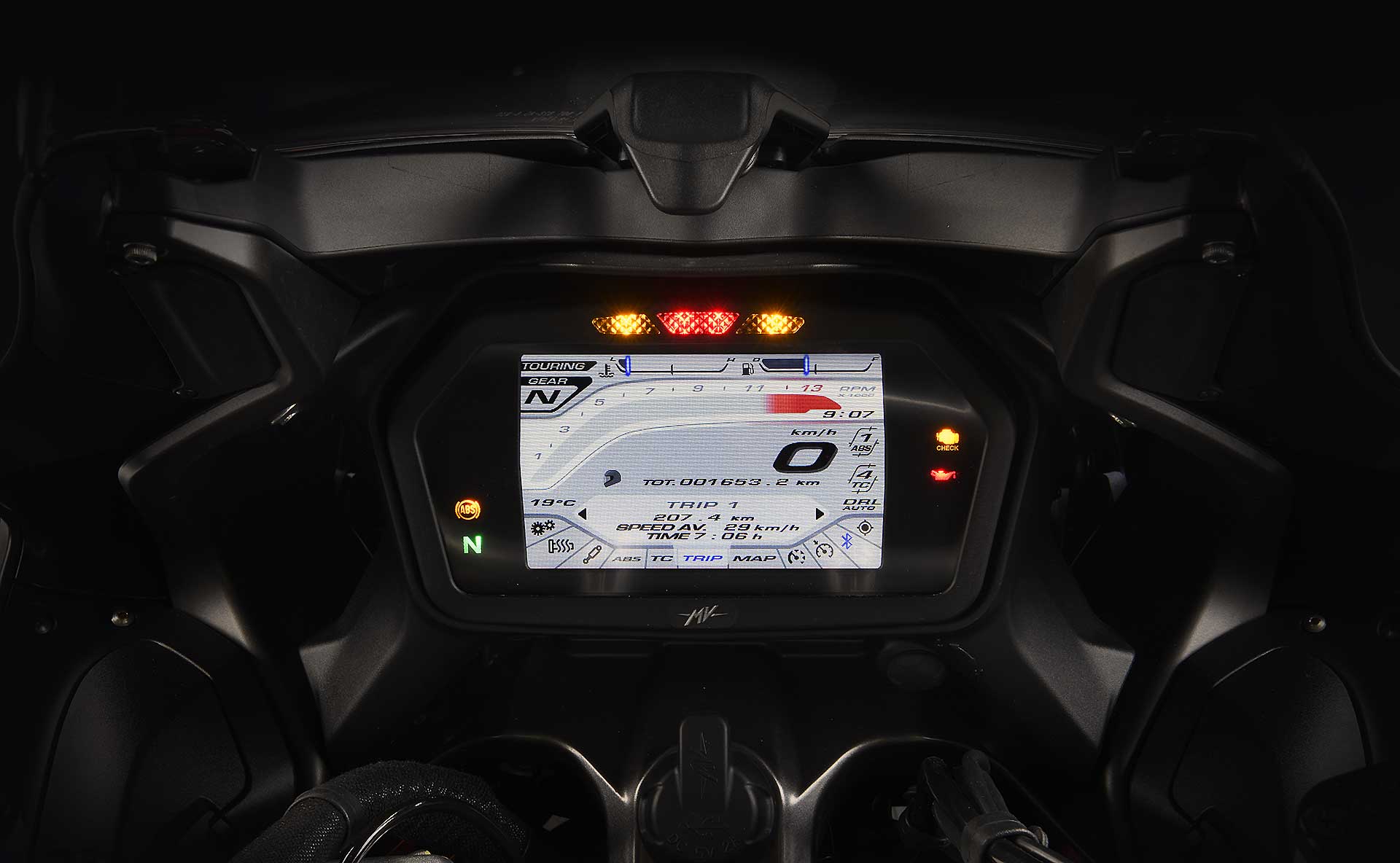 Il sistema esenta dall’obbligo di tirare la leva della frizione (che comunque resta al suo posto e può essere utilizzata normalmente) mentre ci si sta fermando o di “giocare” con la frizione a bassa velocità, nelle inversioni di marcia o nel traffico, rendendo enormemente più fluida la guida. Unico accorgimento richiesto: ricordatevi di scalare quando vi fermate. Il sistema Rekluse, infatti, “stacca” la frizione in qualsiasi marcia si sia, consentendo di ripartire anche in quinta, slittando a lungo. Qui però entra in gioco lo sviluppo parallelo di elettronica e frizione.Per farla breve e semplificare, conoscendo le leggi di “attacco” della frizione, MV Agusta ha accordato di conseguenza l’elettronica in modo da ottenere le migliori prestazioni in accelerazione e la migliore fluidità di comportamento. Per evitare di partire in quinta come scritto sopra – possibile ma con lunghi e inutili slittamenti della frizione che comporterebbero usure precoci e surriscaldamenti – il sistema consente al motore di erogare la massima potenza solo in prima e seconda. In tutti gli altri rapporti la moto si muove ma non va oltre 10 km/h, ricordando allo sbadato rider che le marce giuste per partire sono altre.Le cambiate e le scalate sono, per così dire, “tradizionali”, e avvengono con il comando a pedale assistito dal quickshifter, che nel caso della Turismo Veloce è l’EAS 2.0 con funzione Up&Down.Leggero, semplice, efficiente