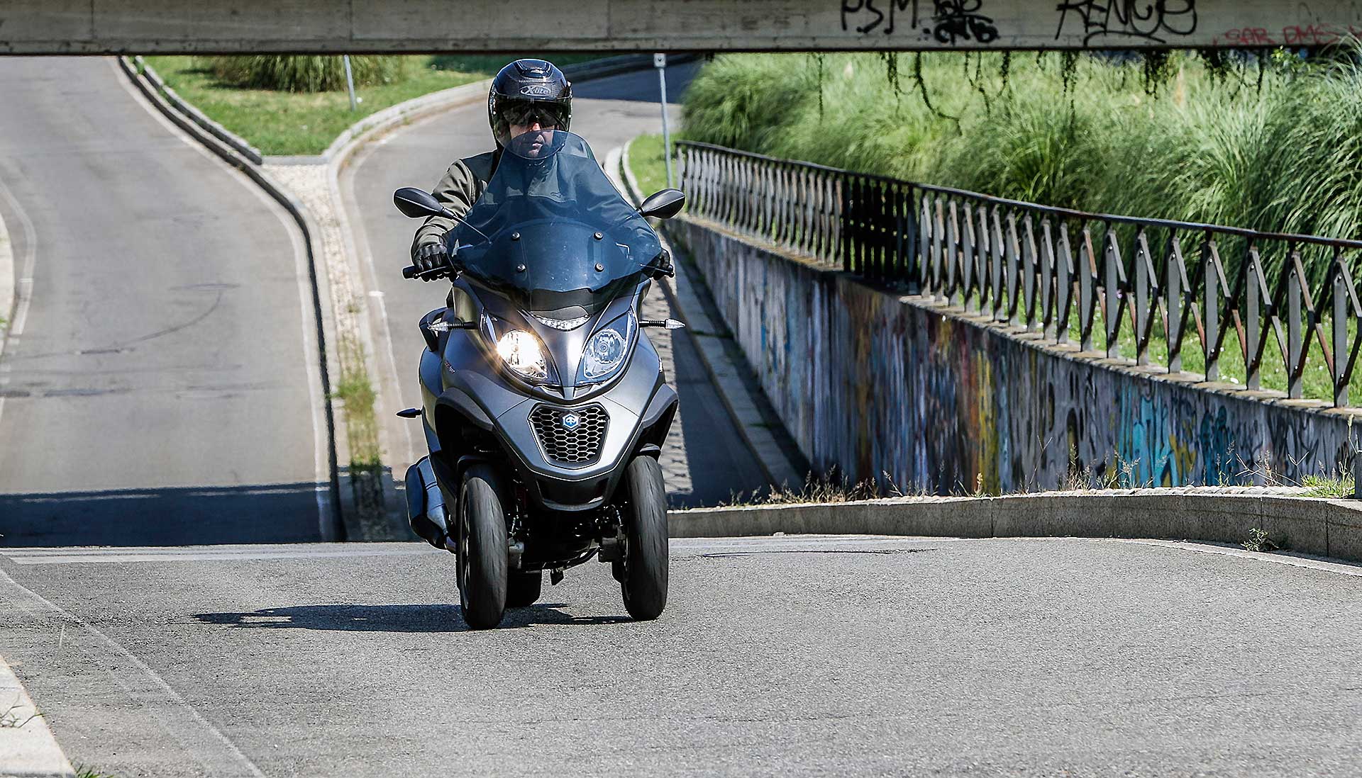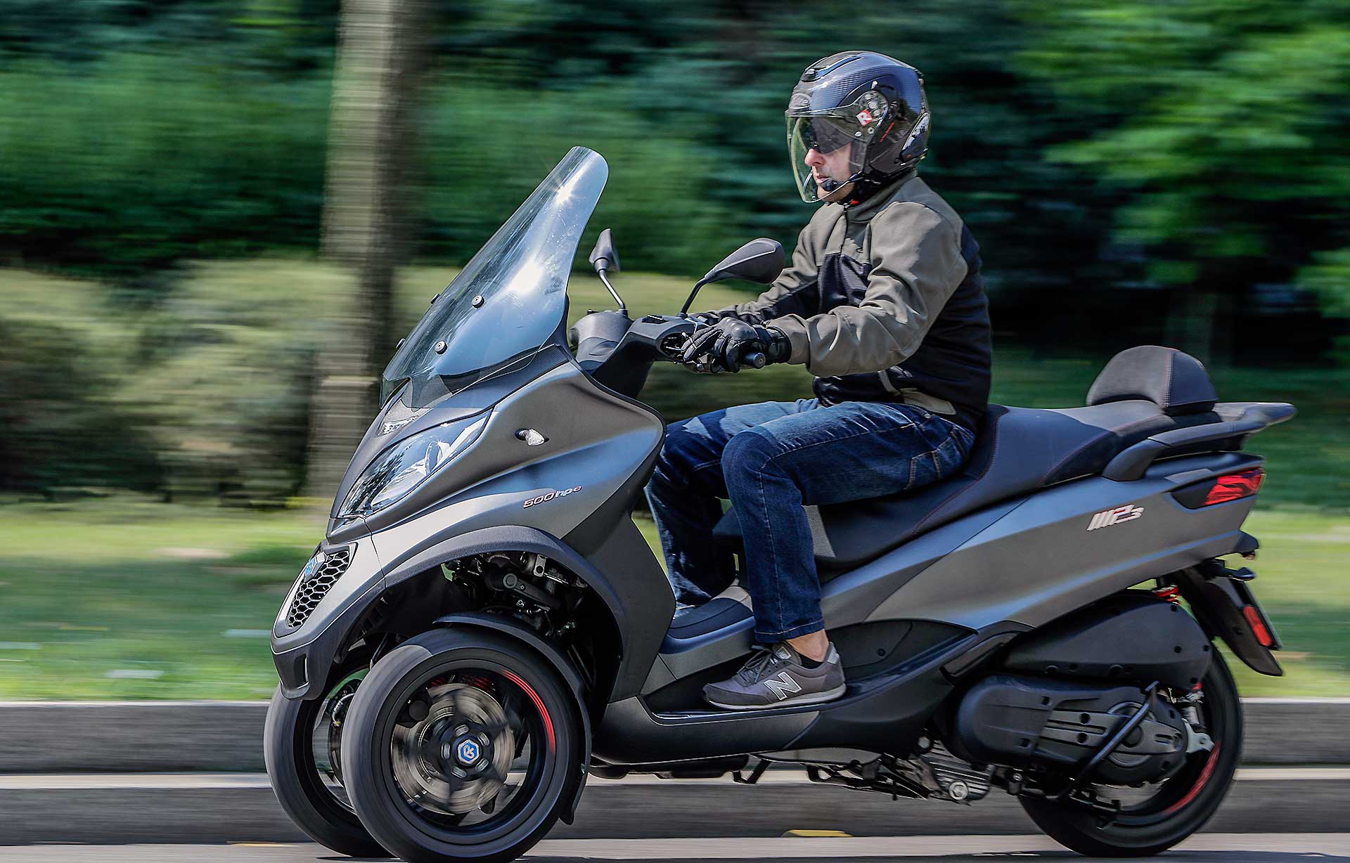 LIVE Nel continuo sviluppo che dedica al suo tre ruote (segmento che si è letteralmente “Inventata”), Piaggio riesce a migliorare passo dopo passo un prodotto che man mano che passano gli anni diventa sempre più interessante. Tra gli scooter “LMW” -Leaning Multi Wheeler-, distinzione d’obbligo visto che ora con Yamaha Niken sono arrivate anche le moto a tre ruote, l’MP3 500 è da considerarsi l’apice prestazionale. È il più potente, veloce, sportivo tra gli scooter tre ruote in circolazione. Ed è anche il più tecnologico, visto che nel bouquet elettronico dell’MP3 possiamo contare su ABS a tre canali, ASR (controllo di trazione), Ride By Wire multimappa e blocco del basculamento.TRE È MEGLIO DI DUE, E PURE DI QUATTRO