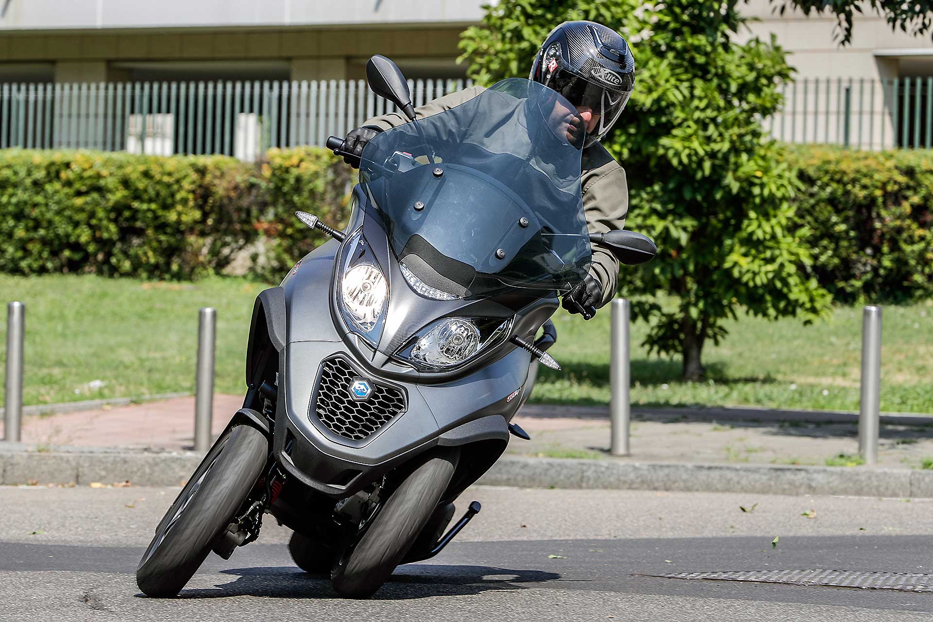 LIVE Nel continuo sviluppo che dedica al suo tre ruote (segmento che si è letteralmente “Inventata”), Piaggio riesce a migliorare passo dopo passo un prodotto che man mano che passano gli anni diventa sempre più interessante. Tra gli scooter “LMW” -Leaning Multi Wheeler-, distinzione d’obbligo visto che ora con Yamaha Niken sono arrivate anche le moto a tre ruote, l’MP3 500 è da considerarsi l’apice prestazionale. È il più potente, veloce, sportivo tra gli scooter tre ruote in circolazione. Ed è anche il più tecnologico, visto che nel bouquet elettronico dell’MP3 possiamo contare su ABS a tre canali, ASR (controllo di trazione), Ride By Wire multimappa e blocco del basculamento.TRE È MEGLIO DI DUE, E PURE DI QUATTRO