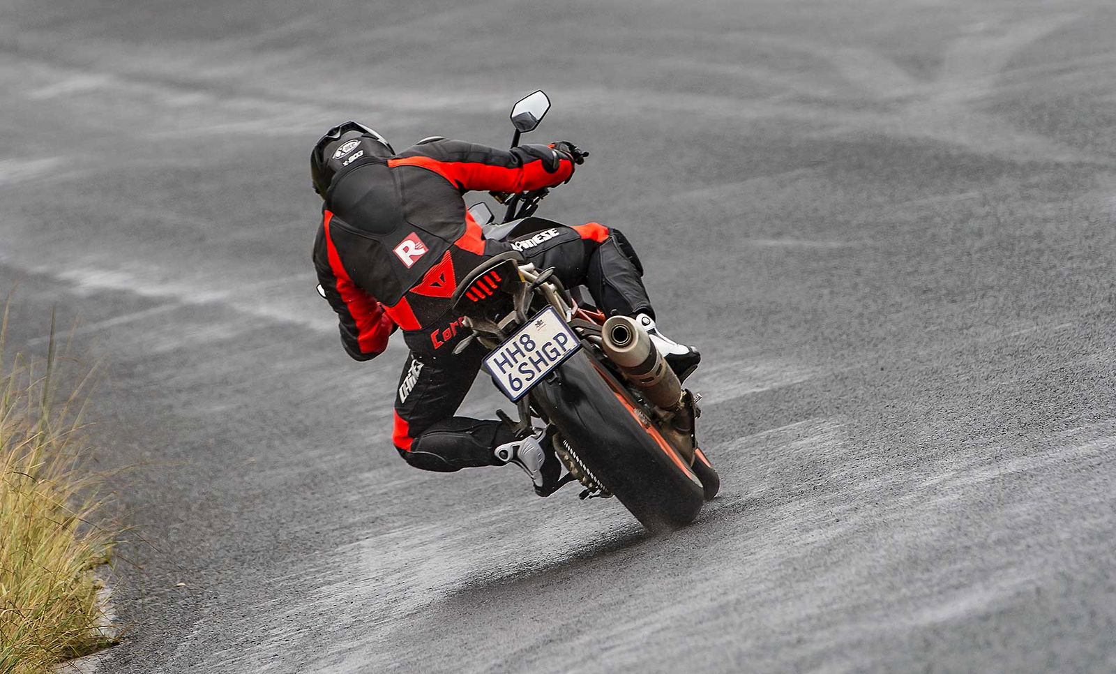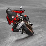 Il posteriore in compenso non si tira indietro quando c’è da sopportare le bordate di coppia delle moderne 1000. “Parla” bene con l’anteriore anche in accelerazione, quando la moto resta comunque neutra e non perde il controllo anche spostandosi verso le mappature di motore piuttosto estreme. Togliendo man mano i controlli si scopre una gomma comunque in grado di gestire l’accelerazione senza patemi, i piccoli “pompaggi” in piena accelerazione fanno parte di un gioco che la Diablo Rosso Corsa II gioca ad alto livello. Così come fa parte del gioco un kickback meno “morbido” del solito soprattutto al posteriore che su qualche buca affrontata in accelerazione mi è sembrato scalciare un po’. Ma come detto, questo fa parte ormai delle caratteristiche degli pneumatici di questo segmento che devono reggere prestazioni impressionanti. Come detto prima… un gran bel compromesso. Un compromesso che per moltissimi motociclisti rappresenta la scelta ideale.