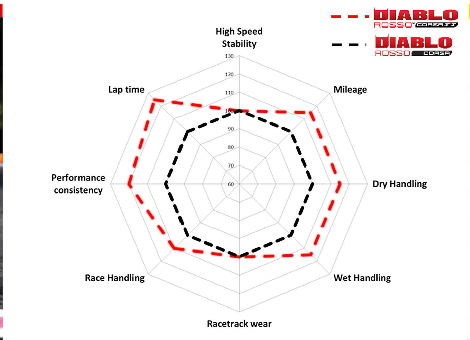 Che una Diablo Rosso Corsa II sarebbe arrivata presto lo avevamo capito già dalla prova del Diablo Rosso III. Le prestazioni del nuovo arrivato avevano infatti avvicinato parecchio quelle del Corsa, allo stesso tempo anche il Supercorsa SP V3 ha fatto un ulteriore passo avanti. Logico quindi che il prodotto “di mezzo” dovesse evolversi. Lo ha fatto in entrambe le direzioni, migliorando il comportamento sul bagnato e le performance in pista. Allargando quindi il suo spettro di azione. Ma come hanno fatto in Pirelli? Semplice (a dirsi), hanno lavorato a tutto tondo rivedendo mescole, carcasse, profili.Un po’ touring un po’ slick