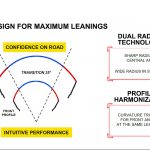 Come farli convivere? Semplice applicando i vari “ingredienti” proprio dove serve. Ecco perché lo pneumatico posteriore ha una mescola con circa il 70% di silice nella fascia centrale, silice che diventa il 100% nella zona più usata sul bagnato ovvero quella “media spalla” (fino a circa 35° di piega) in cui compaiono anche la maggioranza degli intagli. Terzo step, la spalla “estrema” che è del tutto priva di intagli (praticamente slick), si utilizza praticamente solo in pista e per questo motivo abbandona la silice per utilizzare esclusivamente il carbon black. Piccola chicca vezzosa: la spalla estrema ha gli indicatori di usura a forellino “racing wear indicator” proprio come le slick.
