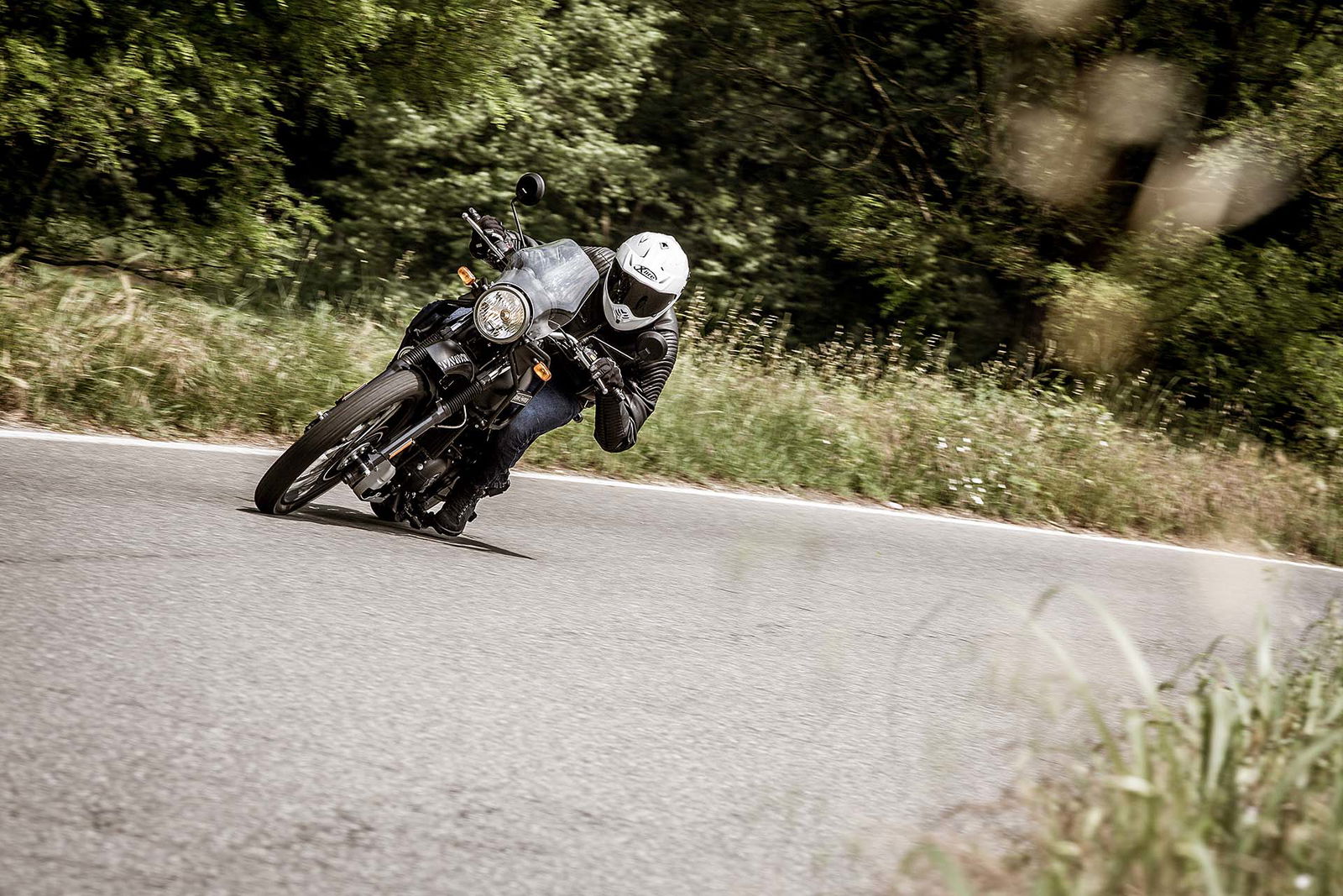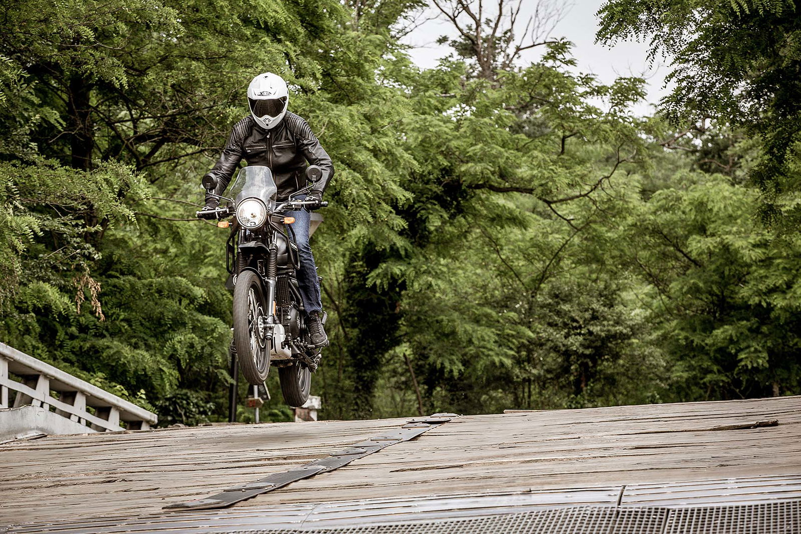 LIVE  PER TUTTI I GUSTILe proposte per i giovani motociclisti cominciano a essere numerose e interessanti, in particolare iniziano ad essere molto apprezzate quelle del macrosegmento dedicato ai motociclisti dotati di patente A2 che impone un tetto di 48 cv alla potenza massima. Naked, sportive con i semimanubri e ultimamente anche delle piccole tuttofare, proprio come la Royal Enfield Himalayan, la prima piccola enduro dell’azienda indiana. Piccola ma dalle grandi ambizioni, l’Himalayan ha un prezzo interessante per un giovanotto squattrinato: 4.590 euro.Ha l’aria inarrestabile e robusta, la Royal Enfield Himalayan, e mai come in questo caso la prima impressione è quella giusta. Il motore è un monocilindro ad aria a corsa lunga (78×86 mm le misure di alesaggio e corsa) da 411 cc, capace di 24,5 cv a 6.500 giri e 32 Nm. Nonostante il suo aspetto volutamente datato, è dotato di contralbero di bilanciamento, avviamento elettrico ed è a iniezione. Il cambio è a 5 rapporti.Solo MetalloA girarle attorno, la Royal Enfield Himalayan pare uscita dritta dritta dal celebre film Mad Max: di plastica ce n’è davvero poca, sostituita per la maggior parte da robusto metallo. Che però ha uno svantaggio: il peso specifico elevato. Motivo per cui l’Himalayan ferma l’ago della bilancia a 182 kg in ordine di marcia, non pochi per una piccola 400. Tante le sovrastrutture (davanti ci sono addirittura due parafanghi…) e i punti di possibile fissaggio: zaini e borse di qualunque materiale (optional) sono ben accetti. A frenare gli entusiasmi del motore ci pensa un disco freno anteriore da 300 mm e uno posteriore da 240 mm, in abbinata all’ABS (che però non è disinseribile).Anche la ciclistica della Royal Enfield Himalayan è pensata per resistere a qualunque maltrattamento. Il telaio è una culla in tubi di acciaio (nella parte inferiore ha una paratia per proteggere da sassi e terriccio) accoppiata a sospensioni dalla corsa piuttosto lunga: 200 mm la forcella (che adotta dei nostalgici soffietti) e 180 mm la ruota posteriore, che muove un monoammortizzatore infulcrato al forcellone con un sistema di leveraggi progressivi. L’interasse promette molta stabilità, 1.465 mm, e nonostante l’aspetto da stambecco la sella è a quote più che ragionevoli per qualunque femore: 800 mm. Le misure delle ruote assicurano una guida a 360°: cerchi da 21-17″ che calzano pneumatici leggermente tassellati.Foto di Thomas Bressani  DRIVE  COME UN PASCIÀLa Royal Enfield Himalayan riesce ad adattarsi bene a piloti di qualunque taglia. La seduta, in particolare, è molto indovinata: si sprofonda in una sella piacevolmente soffice ma che lascia un buon livello di mobilità. Il manubrio è largo e lontano correttamente, le pedane ben centrate e non vicine al piano seduta. Chiunque si troverà a proprio agio, anche perché il peso non è eccessivo. La strumentazione è piccola ma completa, composta di diversi quadranti (compresa una bussola e un termometro).FACILE MA ATTENZIONE AI FRENI!Basta qualche metro con la Royal Enfield Himalayan per guidare disinvolti, anche nel traffico più congestionato. Nonostante il baricentro alto, la sua guida è morbida e intuitiva. Merito dell’assetto, confortevole ma non cedevole, del motore pacioso e dei comandi morbidi (anche se non particolarmente precisi). Anche il riparo aerodinamico non è male, mentre l’impianto frenante fatica ad arrivare alla sufficienza: buono per gestire l’incedere dinoccolato della Hymalaian, un po’ meno quando si cercano frenate consistenti. La potenza disponibile è realmente esigua. La minuscola pinza a due pistoncini è l’indiziata numero uno…Lontano dal caos del traffico urbano, la Royal Enfield Himalayan è ancora più apprezzabile. Magari su una strada di campagna, da affrontare senza fretta ma non per questo senza divertirsi. La ciclistica è il suo piatto forte: forcella e monoammortizzatore non hanno mai reazioni impreviste, anche in situazioni limite come…un salto. Il fine corsa non arriva, scorrono ma non vanno in crisi e chi guida si diverte. In fin dei conti è quello che conta.MOTORE CON POCO FIATOCerto, non è un fulmine a fiondarsi a centro curva e il grip dei pneumatici semi tassellati non è così elevato, ma l’Himalayan è ben predisposta alla guida baldanzosa. Il motore ha un’erogazione fluida e regolare, soprattutto ai regimi intermedi, ma gli manca un po’ di forza: per vedere velocità decorose occorre spremerlo parecchio e a quel punto le vibrazioni e il rumore si fanno abbastanza insistenti. La concorrenza è equipaggiata con motori più prestanti e moderni.Dove l’asfalto finisce, l’Himalayan non si ferma. La guida in piedi non le è indigesta, il pilota si trova a proprio agio grazie a una triangolazione indovinata, e anche in presenza di ostacoli non si tira indietro. Non bisogna avere grandi pretese, ma il sentiero che porta alla caletta nascosta -e anche qualcosa di più ardito- è assolutamente alla sua portata.Foto di Thomas Bressani
