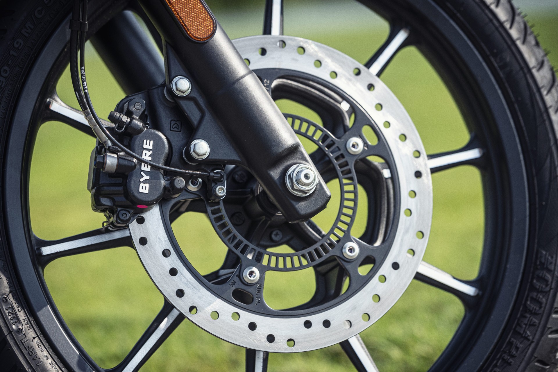 Le ruote sono in lega leggera a razze, da 19″ e 17″ con gomme da 100 e 140, mentre l’impianto frenante, che svolge diligentemente il suo lavoro, ha disco da 300 mm all’anteriore e 270 mm dietro, ed è assistito da sistema ABS a due canali