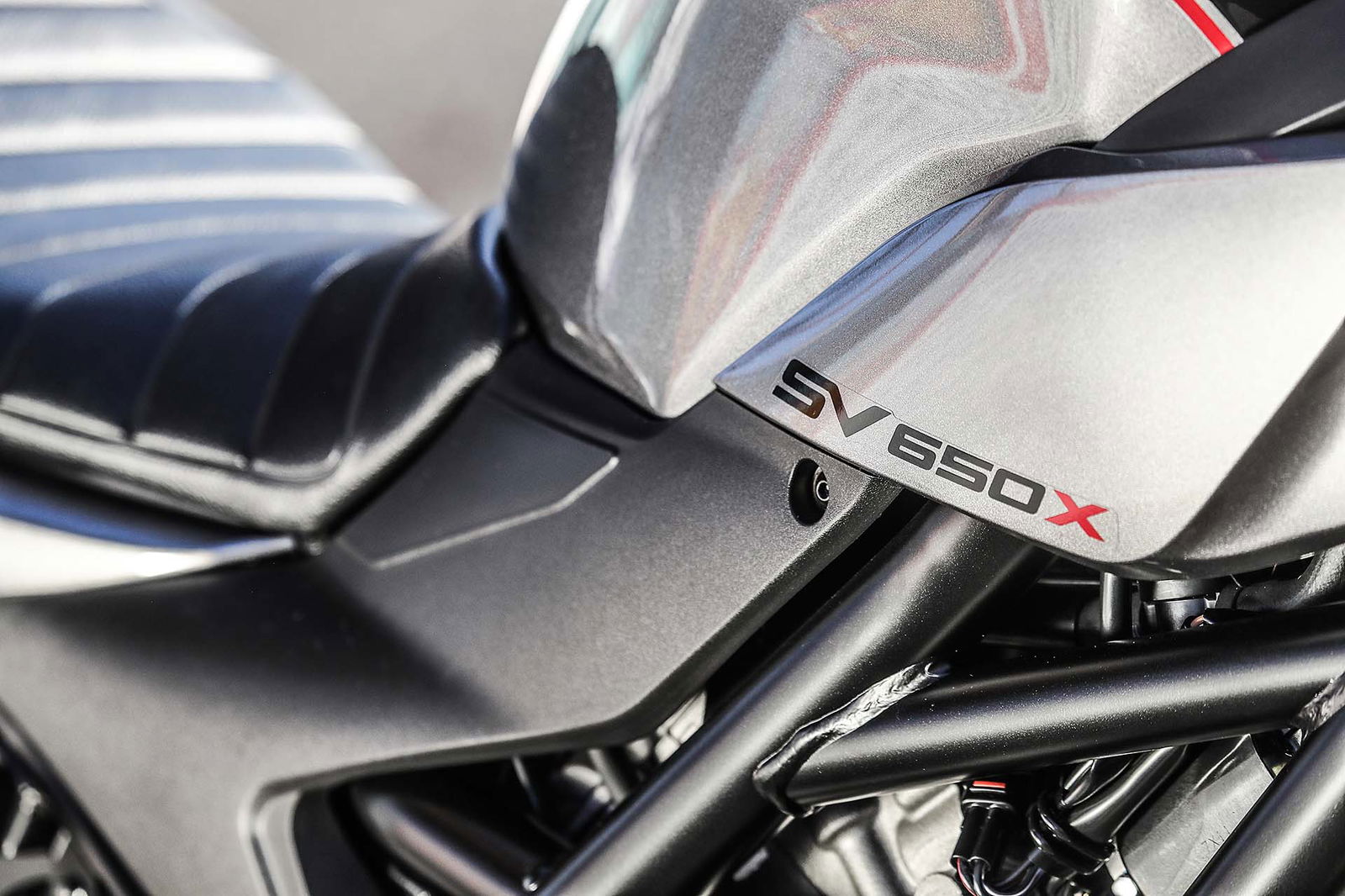 COME PRIMA, PIÙ DI PRIMAIl pacchetto meccanico di base è rimasto, a partire dal motore. Il bicilindrico a V non è campione di coppia ai bassi e medi regimi (tra le concorrenti ci sono motori più irruenti, come il bicilindrico dell’MT-07), ma ha un’erogazione esemplare, fluida e costante ed è capace di allunghi decisi. Accusa solo qualche vibrazione dai 6.000 giri in poi, ma nulla di fastidioso. La ciclistica invece ribadisce in maniera spietata l’importanza del (poco) peso. Si può entrare in curva a velocità siderali, sicuri che la piccola SV manterrà la traiettoria ideale. E l’errore è sempre perdonato: basta un decimo di secondo a gas chiuso per tornare in linea.RICETTA NOTAImpegna poco e diverte senza sforzo: questa è sempre stata la ricetta dell’SV, che Suzuki ripropone anche per questa speciale versione X. La sua posizione di guida particolare richiede qualche sacrificio, soprattutto se si è ancora novizi, ma ripaga nella guida arrembante e, parere personale, nel colpo d’occhio. Se solo fosse arrivata qualche anno fa…