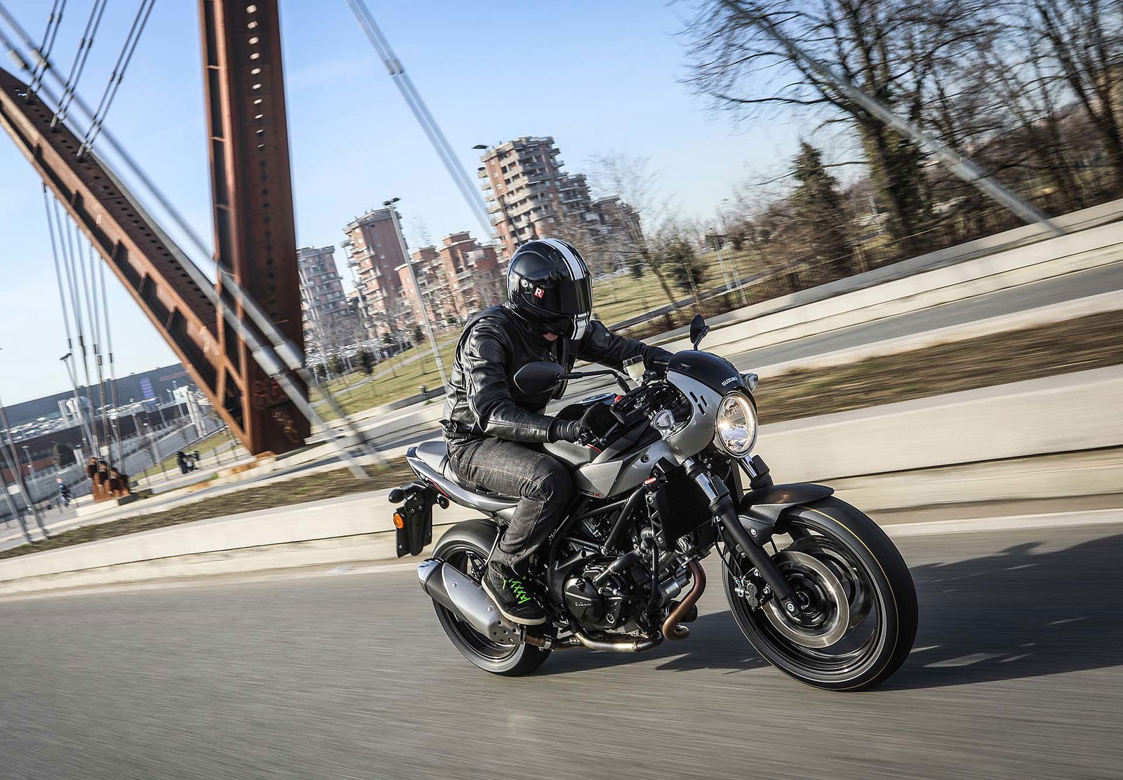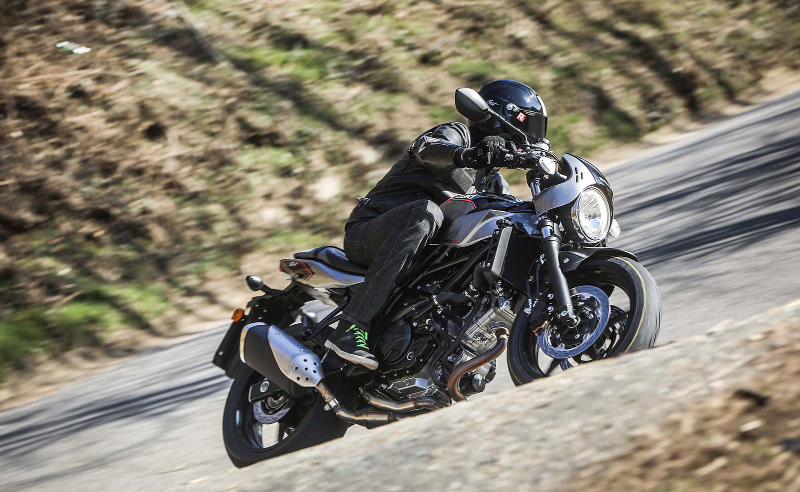 TI HO GIÀ VISTA?Per il resto la Suzuki SV650X sfrutta la meccanica della sorella standard. Il motore è il sempreverde bicilindrico a V di 90°, 645 cc, raffreddato a liquido, con alimentazione a doppia candela e capace di 76 cv e spicci a 8.500 giri e 64 Nm a 8.100 giri (solo 3,8 litri/100 km!). Il telaio è a traliccio in acciaio, ha quote compatte (1.445 mm l’interasse, 25° l’inclinazione del cannotto) e lavora con una forcella tradizionale con steli da 41 mm e un mono regolabile nel precarico. Davanti, due dischi da 290 mm lavorano con l’ABS. In totale, fa 207 kg con il pieno.PREZZO ALLETTANTELa piccola racer di Suzuki non costa molto: 6.990 euro in offerta lancio. Tanti gli accessori previsti, tutti a tema stile (da segnalare sicuramente i faretti supplementari a led). Suzuki Italia ha voluto creare una versione ancora più speciale: si chiama SV650 X-Ter (un’assonanza con “hipster” notevole, non trovate?) e monta un porta targa slim, frecce a LED, specchietti racing e nastro telato sui collettori, tutto fornito da ValterMoto. Lo scarico invece è realizzato da FF by Fresco, produttore artigianale italiano. Per lei, il conto sale a 7.390 euro.CONTINUA A LEGGERE –> VAI ALLA PROVARIDELOVE ITSono sempre stato un fan della piccola naked di Suzuki. Grazie alla sua estrema leggerezza e al bilanciamento dato dal bicilindrico a V (le sue competitor utilizzano bicilindrici in linea, con la conseguenza di un baricentro più avanzato) questa moto è sempre stata una piccola arma di precisione per i passi di montagna, una “zanzara” capace di infastidire moto ben più specializzate. Questa Suzuki SV650X però è particolare, l’impatto estetico non è male, ma alla vista dei semimanubri qualche domanda me la faccio. Una su tutte: “non è che avrà perso quel suo equilibrio che ho sempre tanto amato?”.
