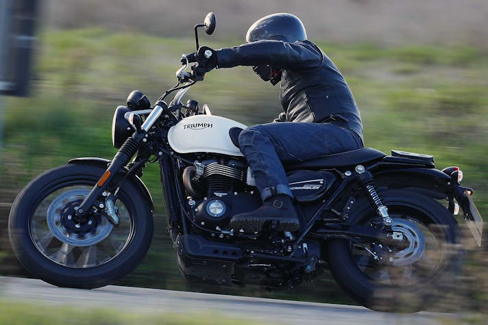 La strumentazione della Triumph Street Scrambler è stata rivista, come anche la finitura della sella, per offrire più qualità e un impatto estetico ancora più gratificante che in passato. Sono addirittura 120 gli accessori pensati per questo modello, senza dimenticare il kit Urban Tracker. Quest’ultimo è composto dal bauletto da 25 litri, dal silenziatore slip-on Vance & Hines, dal tappo olio nero con finitura CNC, dal manubrio anch’esso nero, dal kit piastra portanumero, dalla sella con nervature nere, dal kit manubrio dresser bar nero, dalla griglia e cornice faro anteriore e dal parafango anteriore di alta qualità, oltre che dal paracoppa.La nuova Triumph Street Scrambler è proposta in tre varianti cromatiche, chiamate Fusion White, Cranberry Red e Khaki Green/Matt Aluminium, con linea jet black. Tutto per un prezzo che parte da 10.900 euro. RIDE Partiamo da un presupposto: il fascino della Scrambler è sicuramente insuperabile. Questa moto si presenta con un look capace di rapire gli occhi, ed è molto interessante vedere come Triumph riesce a cambiare carattere ai suoi modelli giocando -bene- con i particolari. La Street Scrambler ha tutto al posto giusto per piacere: ruote a raggi, serbatoio rastremato, scaricone laterale (ben isolato ma d’estate occorre farci i conti) e un aspetto avventuroso che non può lasciare indifferenti.PICCOLA, MA PIU’ GRANDE