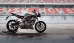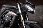 È la versione d’accesso, il motore tre cilindri da 765 cc ha un incremento di potenza del 6,6% rispetto al passato e ora è annunciato per 113 cv a 11.250 giri, la coppia sale del 7,3% nel suo picco massimo ora di 73 Nm a 9.100 giri. Il cambio è nuovo (comune alle altre versioni) prima e seconda marcia sono più corte per migliorare l’accelerazione. L’acceleratore, ovviamente elettronico, offre due modalità di guida Road e Rain, ciascuna integrante un differente livello del controllo di trazione. Optional il quickshifter. Telaio e forcellone sono abbinati a sospensioni Showa, la forcella con steli da 41 mm con regolazioni separate e il monoammortizzatore con precarico regolabile e serbatoio piggy back. Pinze Nissin per l’impianto frenante anteriore e Brembo per quello posteriore. La Street Triple S è anche quella con le quote ciclistiche più tranquille. Restando ferma la quota dell’interasse (1.410 mm come l’edizione precedente) avancorsa e inclinazione cannotto sono dedicati a lei con 104,3 mm e 24,8°. L’altezza sella è di 810 mm, misure leggermente più “aperte” rispetto al passato, probabilmente dovute anche al fatto che la ciclistica della nuova Street si trova a gestire prestazioni maggiori. Di serie arriva con pneumatici Pirelli Diablo Rosso Corsa. Disponibile anche per patente A2 con motore portato a 660 cc.Triumph Street Triple R (10.200 euro)