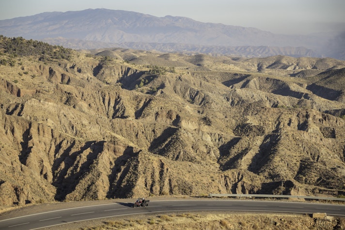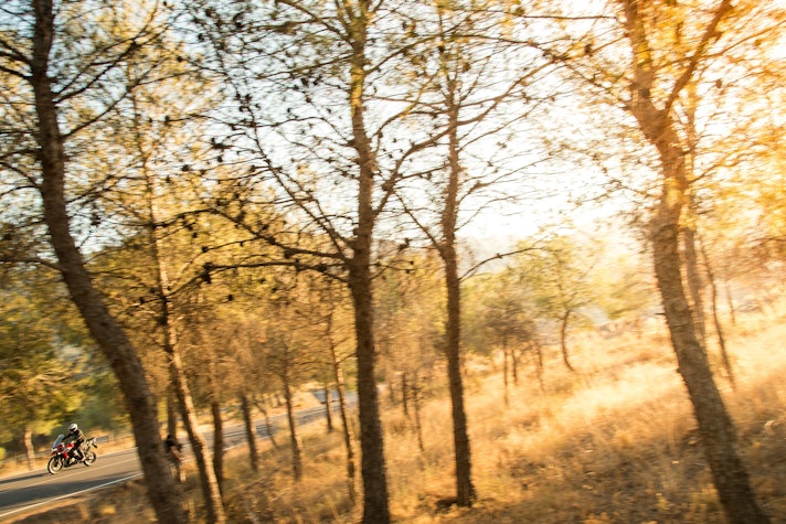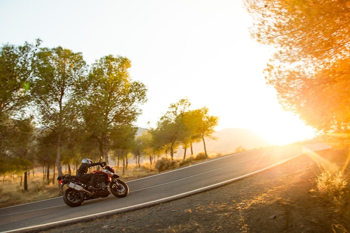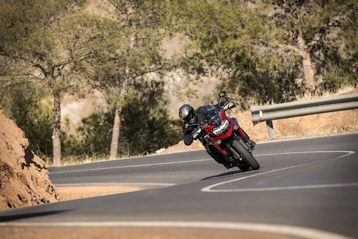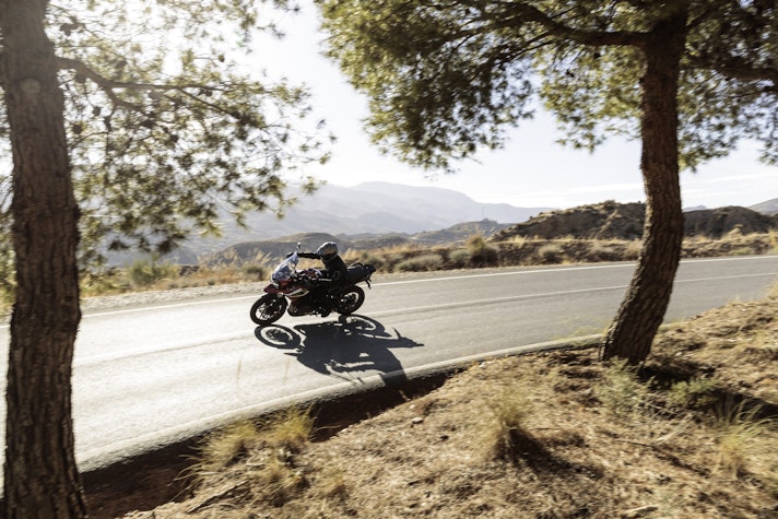 Il Sud della Spagna, tra il mare di Almeria e la Sierra Nevada, è il posto giusto dove cercare le strade adatte a capire la nuova Tiger 1200. Le condizioni meteo, però, non aiutano: pioggia incessante lungo tutto il percorso e addirittura una consistente nevicata in altura. L’asfalto è lucido, la temperatura intorno a 0° C. In queste condizioni accessori come i paramani, la sella e le manopole riscaldabili sono essenziali per non cedere alle intemperie.