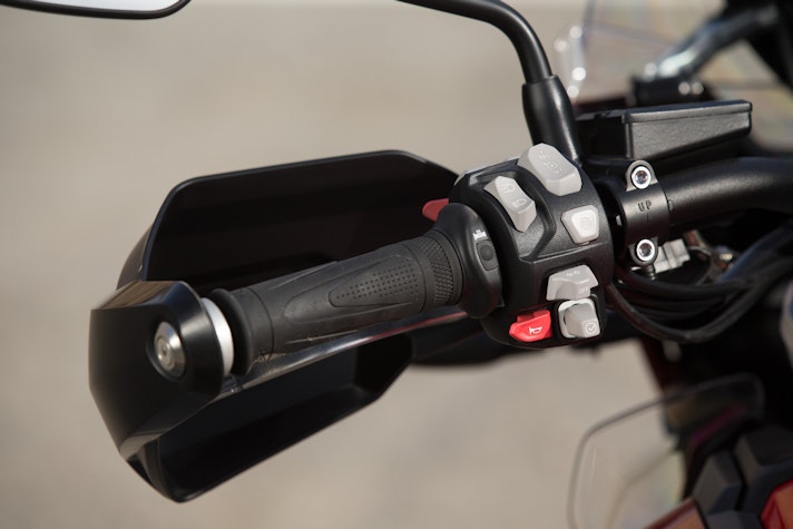 Apprezzata la retroilluminazione dei blocchetti elettrici, un grosso aiuto nella guida notturna: a questa dotazione aggiungiamo i fari cornering adattivi, le luci full LED, il parabrezza a regolazione elettrica, le prese 12V e USB, il computer di bordo e l’immobilizer. I più sportivi troveranno nella cambiata assistita Shift Assist o nello scarico Arrow in titanio contenuti imprescindibili, mentre i macinatori di chilometri nella chiave elettronica, manopole e selle riscaldabili, cruise control ottimizzato gli indispensabili compagni di viaggio.