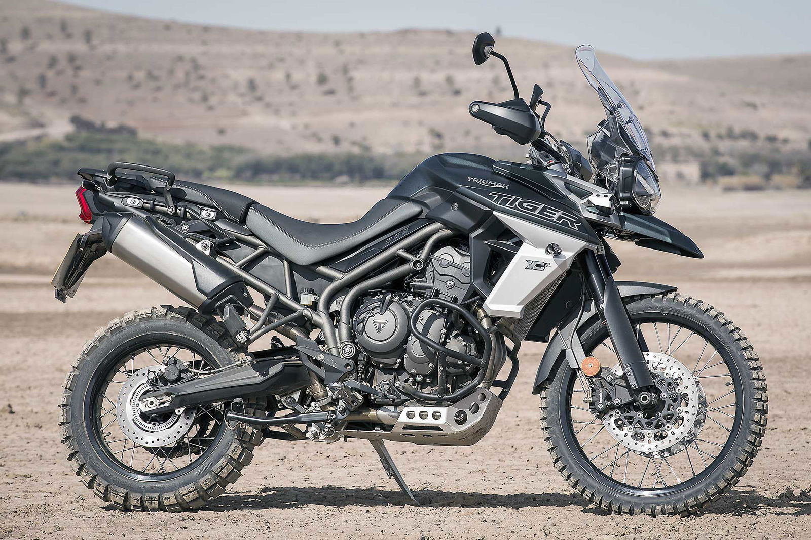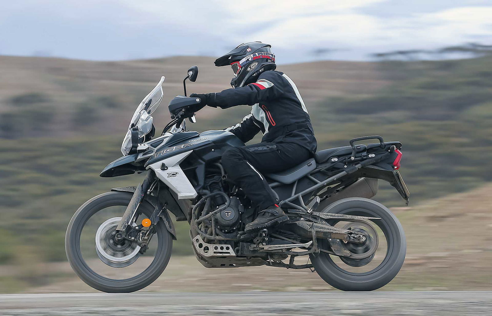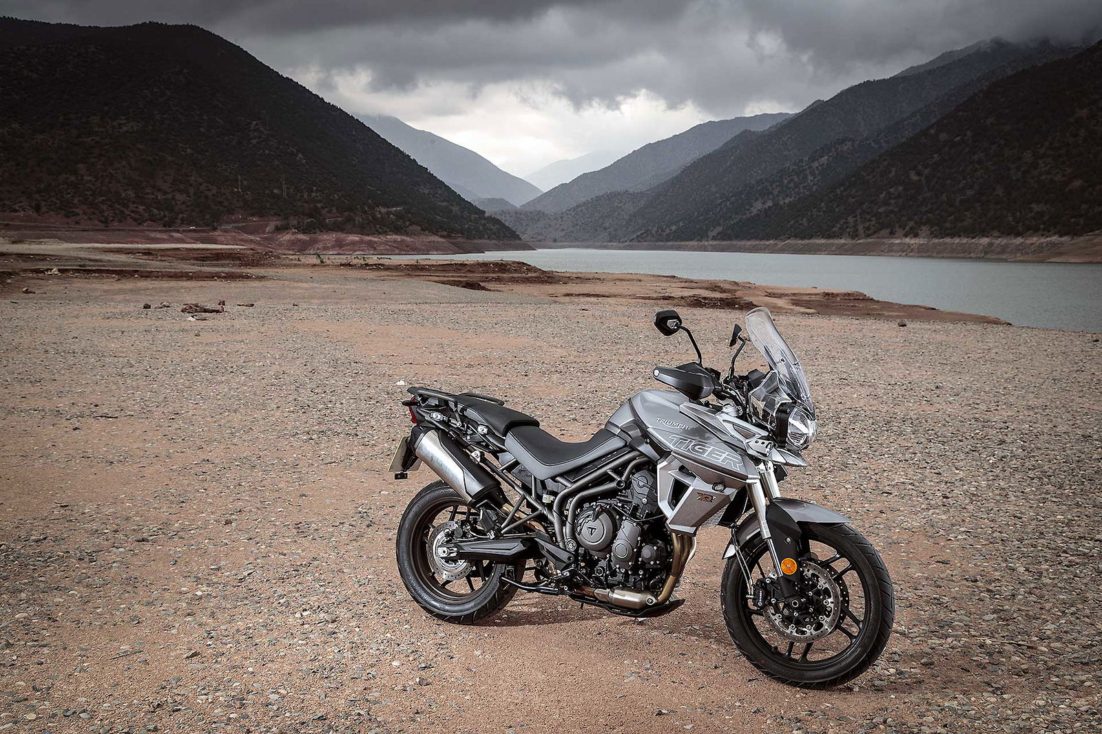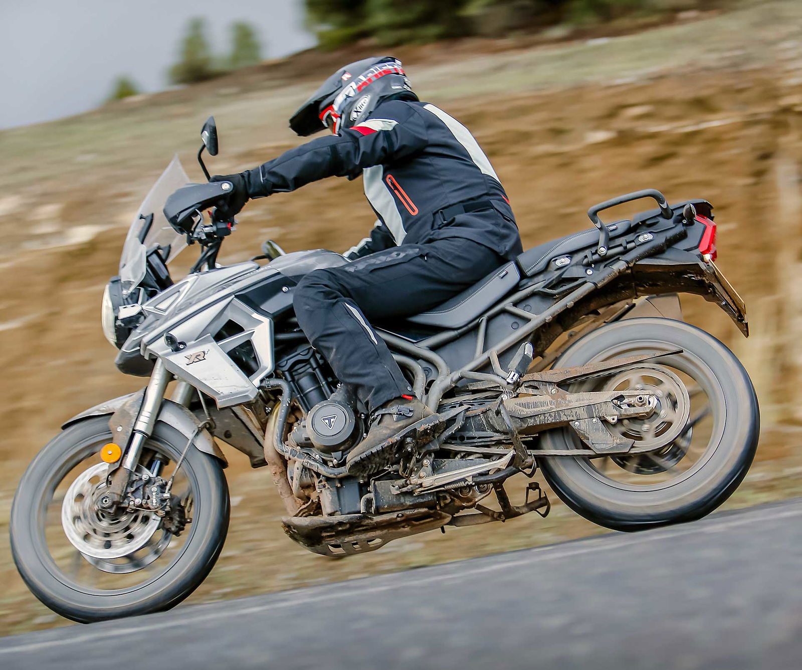 Ma va bene così. Soprattutto se l’oggetto del test è la nuova Triumph Tiger 800. Queste sono le condizioni ideali per capire quanto buono sia il progetto rinnovato in più di 200 elementi. Ma, considerato che a dicembre durante la presentazione della nuova Triumph Tiger 1200 le condizioni erano le stesse in Spagna sulla Sierra Nevada, inizio a sospettare che il sottoscritto porti sfiga. Sgomberato il campo da ogni perplessità e scaramanzia parto alla scoperta delle due versioni che abbiamo a disposizione: la XRT dalla chiara vocazione stradale con ruote in lega e ruota anteriore da 19 pollici e la XCA che sfoggia sospensioni della WP maggiorate nell’escursione, completamente regolabili e riconoscibile anche per i cerchi a raggi e l’anteriore da 21 pollici.STRADE DIFFICILITeatro del nostro test dunque un percorso “ostico”, che non facilità la confidenza nella guida della enduro 800 inglese e che potrebbe portare a galla eventuali difetti di ciclistica o del carattere del motore che conosciamo bene. Qui l’asfalto è sporcato costantemente della terra rossa di queste montagne ricche di miniere di ferro, il sottile strato di fango non aiuta granché, almeno quanto la superficie sconnessa alternata a grosse aree di terra e altrettanto grosse pozzanghere.TRE CILINDRI DI CARATTERE