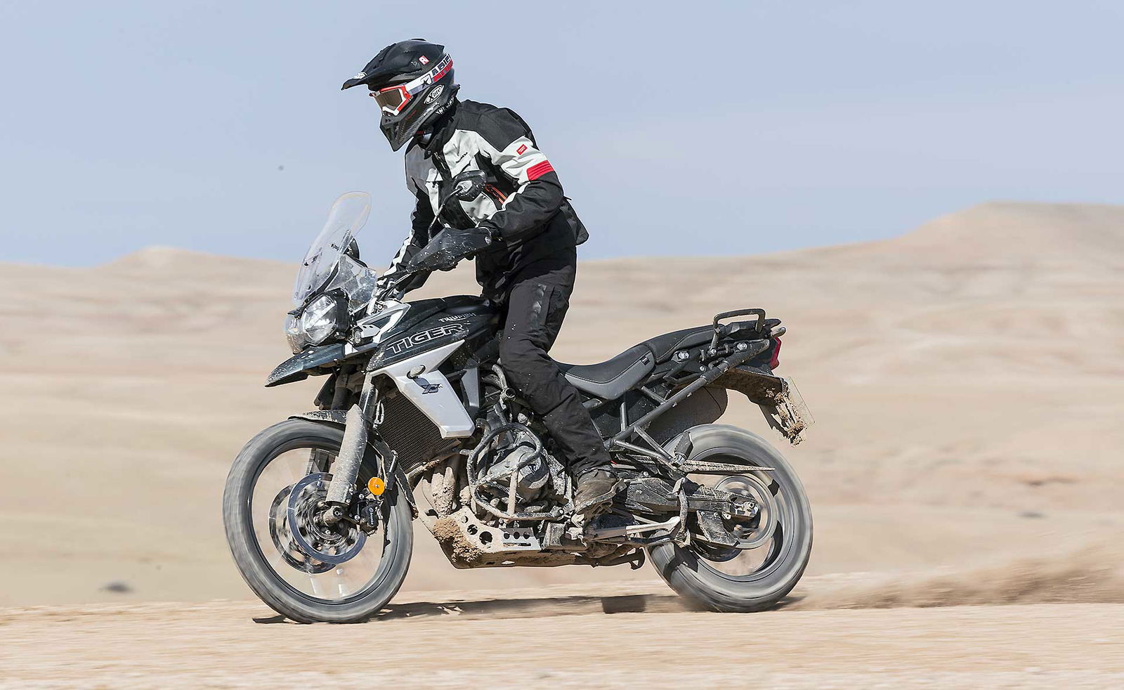 Percepisco guidando la XRT sullo stesso percorso che il comportamento è diverso. La ruota anteriore da 19 pollici e la minore altezza da terra cambiano il carattere a favore di una guida più semplice e immediata. Non mi stupisce che questo modello in Italia abbia ottenuto più consensi della sorella avventurosa. Con lei si tocca meglio a terra con entrambi i piedi ed è più facile salirle in sella e manovrarla a basse velocità; sono convinto che anche la nuova generazione di Tiger 800 continuerà ad ottenere consensi analoghi.CONTROVENTOIl nuovo parabrezza regolabile manualmente – con una sola mano e rapidamente – su cinque posizioni è tra le cose meglio riuscite della nuova Triumph Tiger 800. Anche a velocità sostenuta e utilizzando un casco da fuoristrada – non particolarmente aerodinamico – mi sono sentito davvero ben protetto. I flussi d’aria scorrono intorno a testa e corpo, e solo in parte le spalle sono investite dal vento della corsa a favore di un comfort di guida molto buono alle alte velocità.QUANTE NOVITÀLa posizione in sella guadagna il manubrio più vicino al pilota di un centimetro, l’impianto di scarico un terminale più leggero e che favorisce il deflusso degli scarichi, il motore minori inerzie e una prima più corta e un nuovo impianto frenante della Brembo e un aggiornamento del comando del gas Ride by Wire.PONGO E FANGO