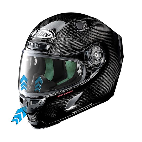 Non è tutto: a detta dei tecnici, il nuovo X-Lite X-803 assicura una migliore stabilità alle alte velocità grazie al nuovo spoiler posteriore (che rimane regolabile nell’inclinazione per adattare la portata aerodinamica in base alle diverse posizioni del pilota). Infine, la nuova cuffia interna con costruzione a rete agevola la diffusione dell’aria nella parte superiore del capo. Prodotto anche nella versione Ultra Carbon (con calotta in fibra di carbonio), il nuovo X-Lite X-803 è disponibile nelle taglie XXS-XXL a partire da 459,99 euro (529,99 euro per l’Ultra Carbon).IN TESTAIl giudizio dinamico sull’X-Lite X-803 è complessivamente positivo. Non era facile riuscire a far meglio dell’802, un progetto estremamente riuscito in tutte le sue sfaccettature. Ma Il gruppo Nolan si è messo d’impegno. Il peso resta sempre molto limitato, così come eccellente a nostro parere l’aerodinamica: è un casco stabile. l’X-803 è silenzioso e anche con le prese d’aria aperte sembra riuscire a far meglio del suo predecessore. La calzata non possiamo definirla nè migliore nè peggiore. Semplicemente è un po’ diversa. Pur sempre soggettivo il giudizio su questa particolare caratteristica (dipende da testa a testa) l’803 sembra fasciare leggermente meno il capo offrendo qualche punto di contatto in meno rispetto all’802 e un imbottitura appena più sottile nella parte frontale. Ottima l’areazione, uno dei migliori in questo campo, di sicuro con lX-803 non soffrirete il caldo, anzi credo che saranno rari i casi in cui sentirete la necessità di aprire tutte le “bocchette”. L’estrazione dell’aria è davvero efficiente e questo in pista significa molto. Da segnalare, ma variabile in relazione alla moto utilizzata, un certo flusso d’aria che entra da sotto la mentoniera anche a casco chiuso figlio probabilmente dell’allungamento della mentoniera. Cosa quest’ultima positiva per “l’abitabilità” interna