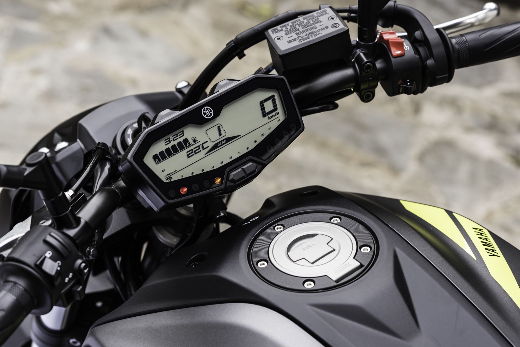 Gli interventi di carattere estetico sono stati molto più numerosi di quanto una prima occhiata lasci intuire. Si va dal parafango anteriore in singolo pezzo alle prese d’aria ridisegnate e ampliate, dal nuovo disegno del gruppo ottico anteriore aalle paratie del radiatore riposizionate. Oltre alla zona centrale completamente nuova, sono inediti sulla MT-07 il gruppo ottico posteriori ispirato alla MT-09 e i fianchetti. La colorazione nera del manubrio e delle pedane dimostra l’attenzione ai dettagli, un tratto caratterizzante della produzione Yamaha.