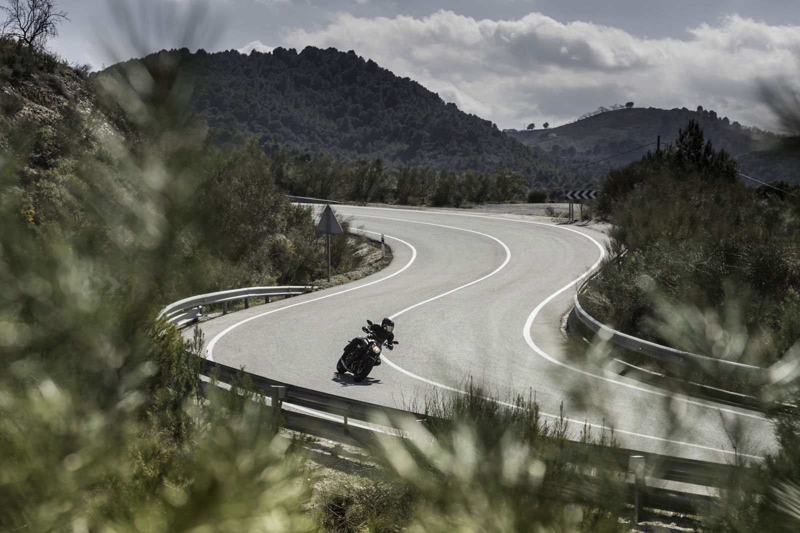 La MT-07 dimostra fin dai primi chilometri di muoversi bene nel misto stretto e strettissimo: leggera, maneggevole, docile nella risposta al gas, ha tutte le caratteristiche che servono per creare immediata confidenza, persino tra le curve continue da seconda marcia che si arrampicano su e giù per i boschi.
