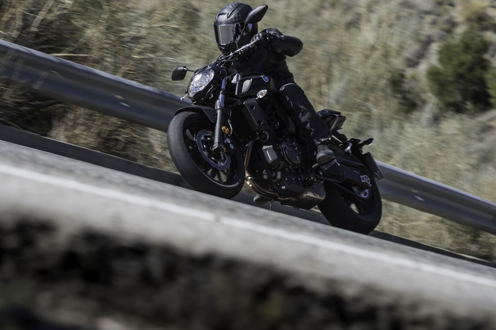 L’asfalto scivoloso, complice la vicinanza del mare e il continuo cambiamento della superficie d’attrito, ha messo alla prova le gomme di primo equipaggiamento Bridgestone BT-023. Prova superata con un po’ di apprensione dalle coperture giapponesi, presentate ben otto anni fa. In queste circostanze non facili la MT-07 ha comunque confermato la sua già nota facilità d’approccio e di gestione. Per una moto del tutto priva di ausili elettronici, fatta eccezione per l’ABS obbligatorio, è una nota di merito, oltre che la dimostrazione di come la semplicità abbia ancora qualcosa da dire nel mondo sempre più tecnologico delle due ruote. Farebbe comodo, piuttosto, l’antisaltellamento, per consentire ai più smaliziati di sfruttare al massimo i freni, efficaci, e la compostezza in ingresso di curva.
