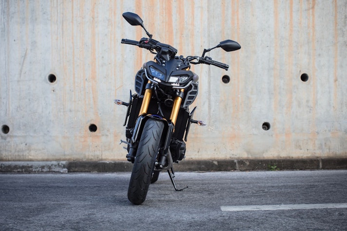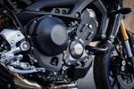 Il resto della ciclistica è confermato in toto, così come il motore, incastonato a mo’ di diamante in un telaio in alluminio dalle quote molto svelte, con interasse di 1.440 mm e angolo di sterzo di 25°. Il peso è di soli 193 kg in ordine di marcia, ripartiti in modo quasi identico tra i due assi. Il tre cilindri è frutto a sua volta di un copia-e-incolla dalla MT-09 “vulgaris”, con la sua brava fasatura a 120°. La scheda tecnica parla di potenza massima di 115 cv a 10.000 giri e coppia di 87,5 Nm a 8.500 giri, mentre la gestione del gas è affidata all’acceleratore con sistema Ride By Wire e D-MODE con tre mappe che rendono le risposte più o meno dolci.