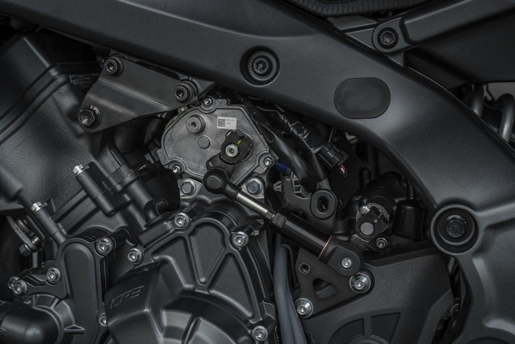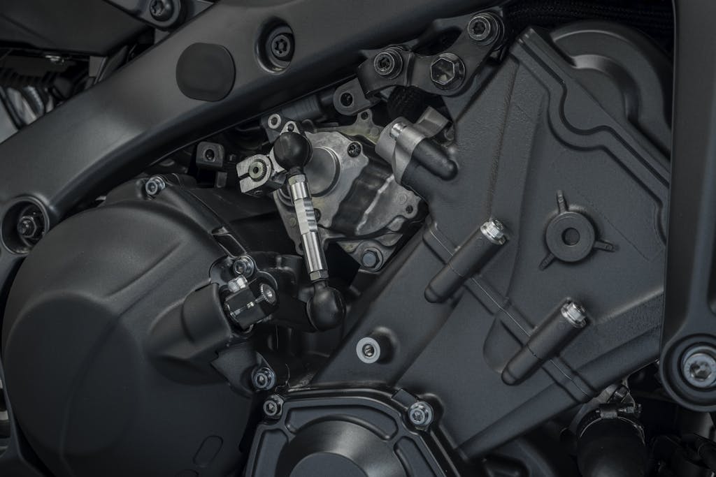 La semplicità del sistema è uno dei suoi punti di forza: i due attuatori, cioè i due motori elettrici che intervengono rispettivamente sul cambio e sulla frizione, comportano un aumento di peso di 2,8 kg, per un totale di 196 kg dichiarati per la MT-09 in ordine di marcia. Senza che, come detto, nulla sia visibile all’esterno a parte i due piccoli carter in materiale plastico, e a parità di ingombro rispetto alla MT-09 standard. Questa è una differenza degna di nota rispetto alla concorrenza, ad esempio l’Honda E-Clutch che è riconoscibile per il carter specifico che sporge (poco) sul lato destro del motore. In quel caso, però, si parla di frizione a controllo elettronico, ed entrambe le leve (frizione e cambio) restano al loro posto. Il peso in più si attesta a 2 kg, 800 grammi meno rispetto all’Y-AMT.