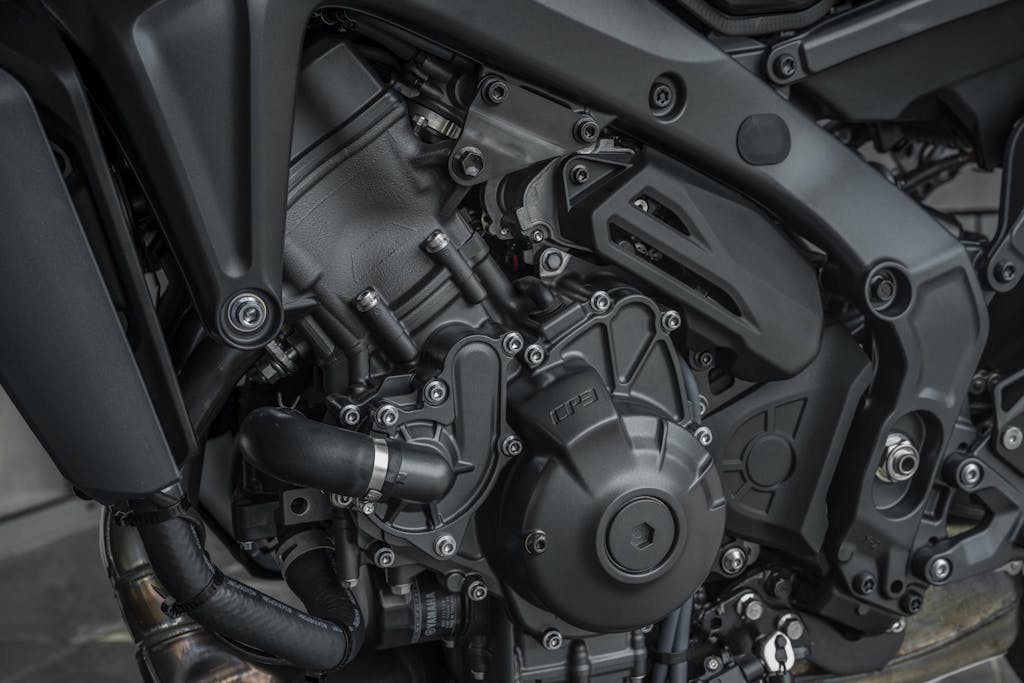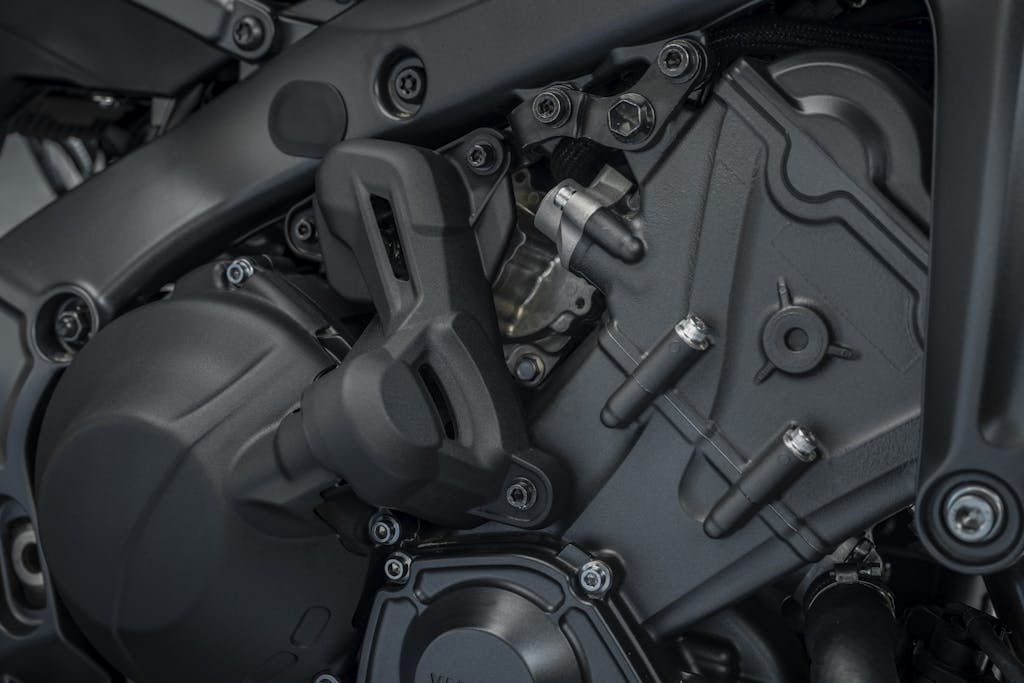 Il motore è identico alla MT-09 standard: 3 cilindri in linea, 119 CV di potenza a 10.000 giri e 93 Nm di coppia a 7000. Identici anche i controlli elettronici basati sulla piattaforma inerziale a 6 assi. Sono disponibili tre Riding Mode preimpostati (Sport, Street e Rain) e due personalizzabili (Custom 1 e Custom 2), che permettono di combinare a piacimento l’erogazione della potenza (4 livelli), il controllo di trazione (3 livelli), lo Slide Control (3 livelli), il Lift Control per l’impennata (3 livelli) e l’ABS (Cornering attivo o non attivo). Avvertibili le vibrazioni su sella, pedane e manubrio tra 6.000 a 9.000 giri. La MT-09 può contare su consumi interessanti, vicini ai 20 km con un litro di carburante.