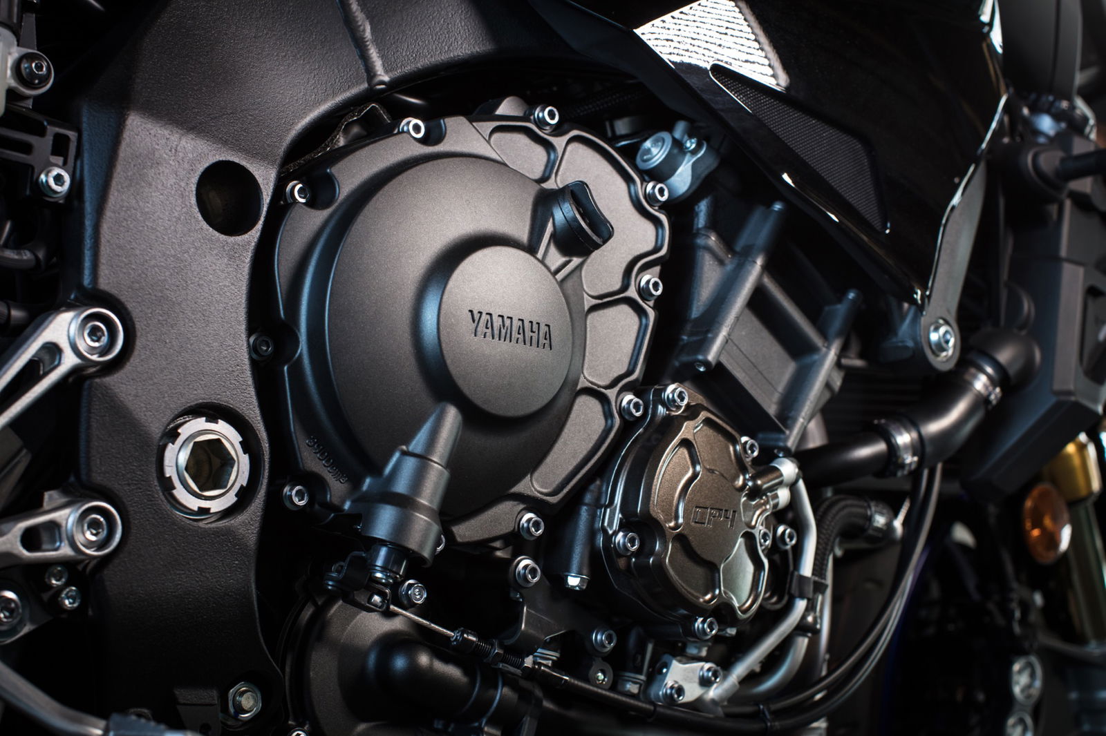 Insieme al nuovo modello sono stati introdotti alcuni aggiornamenti anche sulla MT-10 standard (leggi la prova), ossia modifiche al cambio elettronico e un’inedita mappatura di erogazione, sviluppata con l’obiettivo di rendere più fluida la risposta al gas. Il quattro cilindri in linea deriva dall’unità montata sulla supersportiva R1, con opportuni adattamenti che però non ridimensionano più di tanto le prestazioni né il carattere. Con 160 cv di potenza e 111 Nm di coppia, tre mappe di erogazione (Sport, Medium e Soft) e il controllo di trazione (Sport Riding, Street Riding e Slippery Surfaces) ci sarebbe già di che essere soddisfatti. Eppure in questo caso è la ciclistica a fare la differenza: il telaio Deltabox, anch’esso di derivazione R1 ma con il 60% di elementi studiati ad hoc per la MT-10, è completato sulla SP dal pacchetto di sospensioni semi-attive Ohlins EC Smart. Cinque le modalità di gestione: A1 (Sport), A2 (Touring) e tre manuali (M1, M2, M3). Le prime due sono automatiche, come si evince dalla sigla: il sistema, sulla base dei dati raccolti ed elaborati da una specifica centralina, adatta la risposta in compressione e ritorno (forcella e mono) alle condizioni effettive di utilizzo. Se l’opzione preferita fosse la A1, la più sportiva, il sistema adatterebbe la risposta nell’ambito della variabilità predefinita nella specifica mappa. Diversa la logica delle opzioni M1, M2 e M3: in questi casi chi guida sceglie la combinazione di parametri come se intervenisse sui tradizionali “click”, ma è il sistema che effettua la regolazione. Quest’ultima resta immutata, quindi non si adatta né varia durante la guida. La selezione dei profili manuali permette, ad esempio, di definirne uno dedicato a una determinata pista o percorso, in modo da disporre della configurazione preferita al momento giusto.