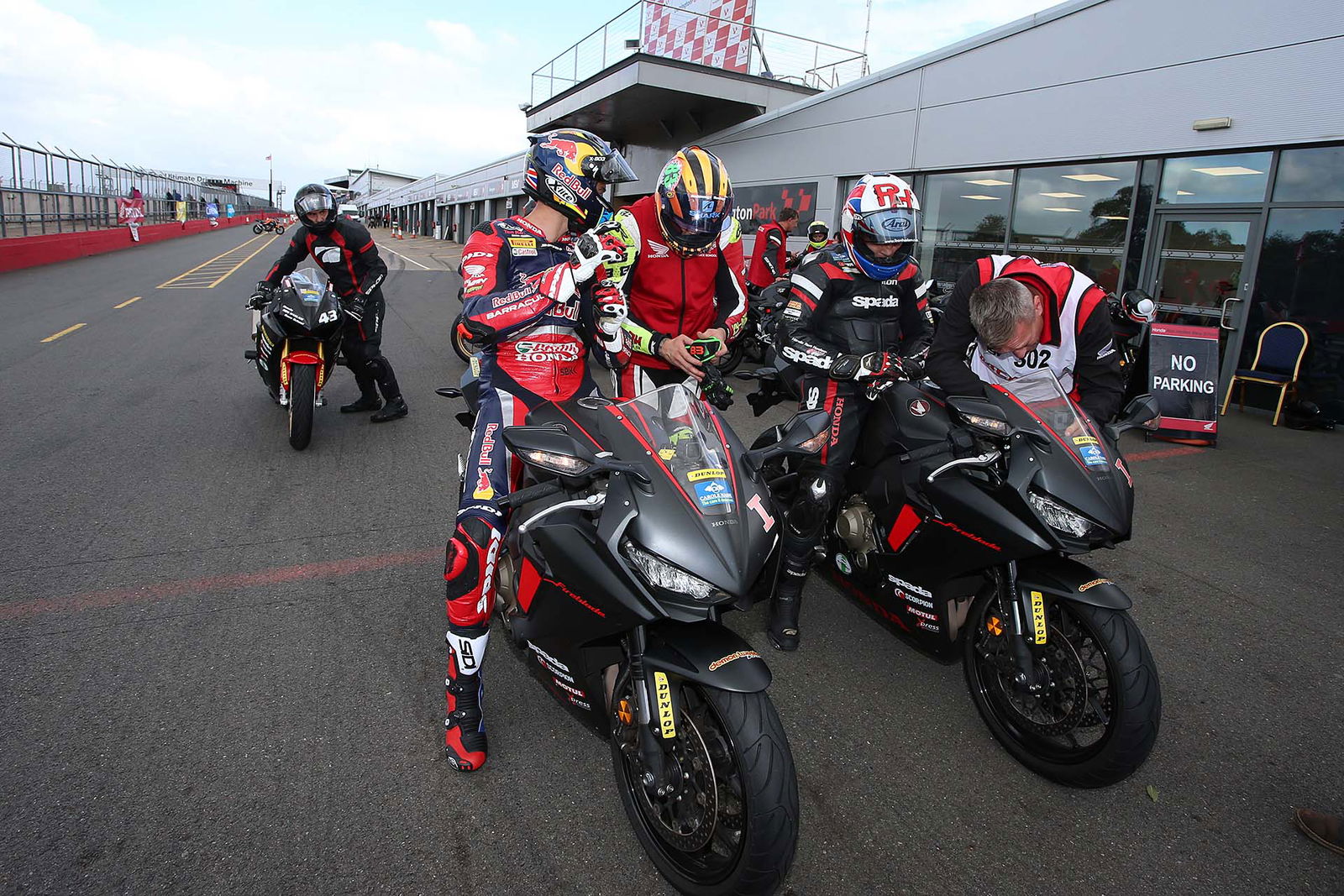 Per il corso più esclusivo è previsto l’utilizzo della CBR1000RR SP con il 4 cilindri in linea da 192 cv e soli 195 kg di peso in ordine di marcia. Per chi ha la memoria corta (qui la nostra prova), la più recente delle Fireblade ha un pacchetto elettronico completo, che include le sospensioni semi-attive, le mappature motore e il controllo di trazione (Honda Selectable Torque Control), utile su strada e in pista. Anche perché per i corsi di guida le CBR sono equipaggiate con le Dunlop Roadsmart 3, ottime gomme per la guida turistica ma decisamente meno adatte ai cordoli. Il motivo di questa scelta? Donington Park, come il resto dell’Inghilterra, è soggetta a continue variazioni delle condizioni meteorologiche, per cui è meglio avere una gomma particolarmente versatile.Teatro d’eccezioneIl piatto forte della Ron Haslam Race School è senza dubbio il palcoscenico: Donington Park è una pista da Mondiale e basta un giro per rendersene conto. I saliscendi da brivido, le velocità in curva da cardiopalma e il variegato mix di curve permettono di esercitarsi a tutto tondo, dal rampino da prima marcia al curvone in quarta a fiato sospeso. DRIVE Abbattiamo la tensioneDevo ammetterlo, sono agitato. Mi trovo nella sala briefing, appena dietro la corsia dei box, e Ron Haslam, fondatore della scuola guida, ci sta annunciando con voce pacata il programma della giornata. Che è semplice: la mattina è prevista un po’ di teoria, si conosce l’istruttore – per l’Elite Experience ce n’è uno per allievo – e ci si ambienta. L’appuntamento con tuta e casco allacciati in pit lane è per le 14: guideremo per 5 turni, il mio istruttore ed io. Lui è un ex pilota, in attività fino a pochi anni fa. Si chiama Rupert May e davanti a un caffè lungo e annacquato mi assicura che sarà una giornata di puro divertimento. Mi ispira fiducia.Parto piano