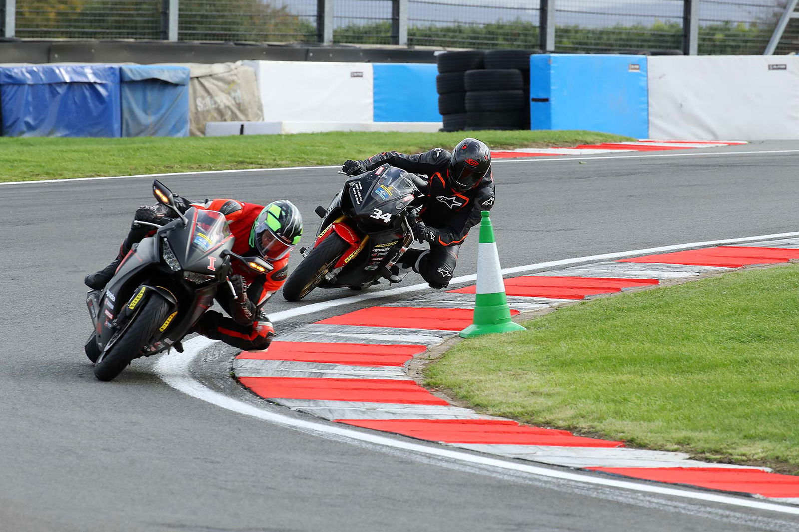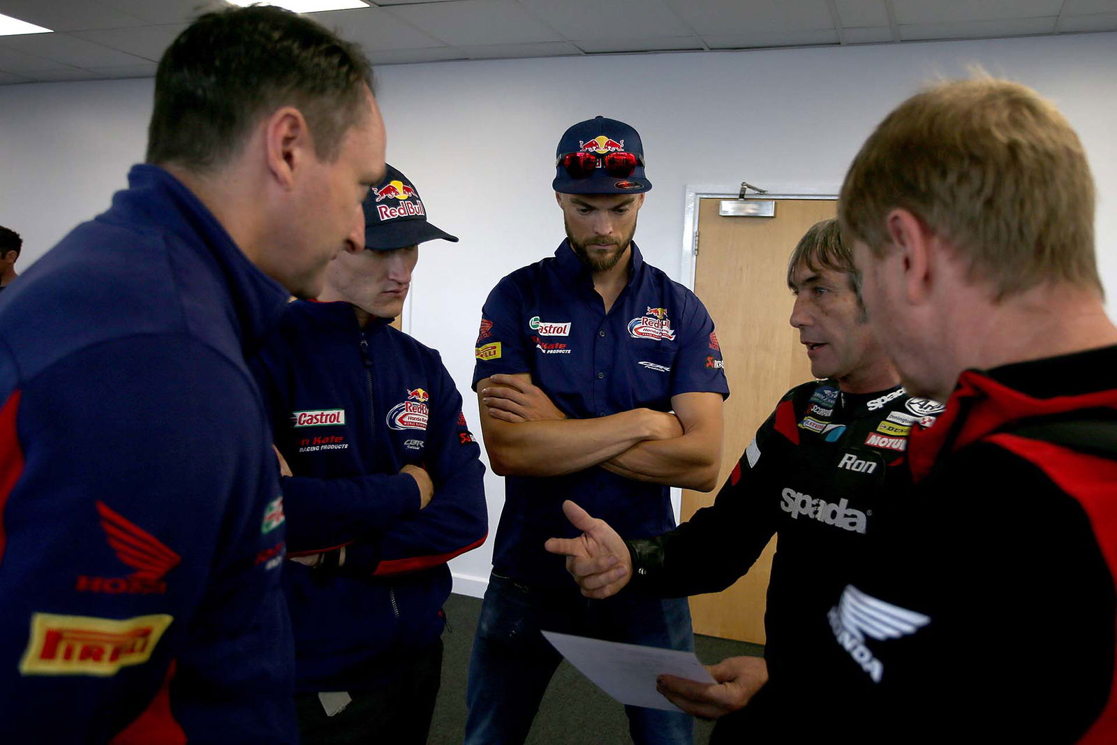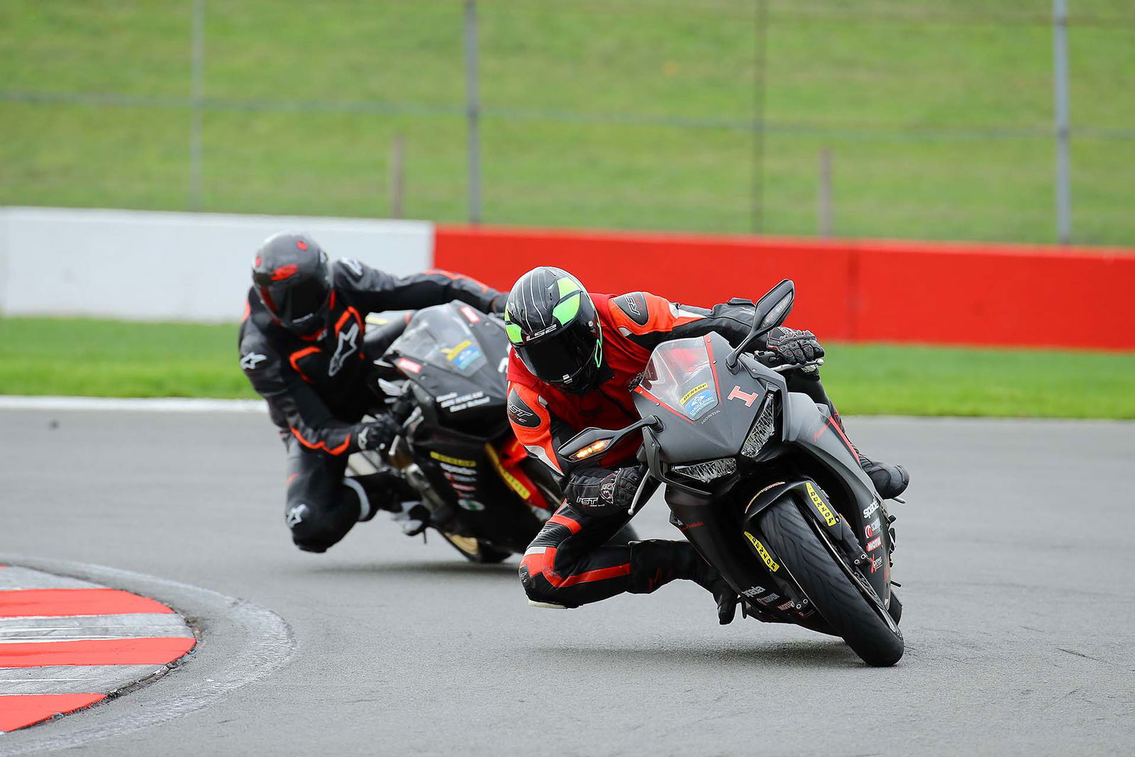 Per il corso più esclusivo è previsto l’utilizzo della CBR1000RR SP con il 4 cilindri in linea da 192 cv e soli 195 kg di peso in ordine di marcia. Per chi ha la memoria corta (qui la nostra prova), la più recente delle Fireblade ha un pacchetto elettronico completo, che include le sospensioni semi-attive, le mappature motore e il controllo di trazione (Honda Selectable Torque Control), utile su strada e in pista. Anche perché per i corsi di guida le CBR sono equipaggiate con le Dunlop Roadsmart 3, ottime gomme per la guida turistica ma decisamente meno adatte ai cordoli. Il motivo di questa scelta? Donington Park, come il resto dell’Inghilterra, è soggetta a continue variazioni delle condizioni meteorologiche, per cui è meglio avere una gomma particolarmente versatile.Teatro d’eccezioneIl piatto forte della Ron Haslam Race School è senza dubbio il palcoscenico: Donington Park è una pista da Mondiale e basta un giro per rendersene conto. I saliscendi da brivido, le velocità in curva da cardiopalma e il variegato mix di curve permettono di esercitarsi a tutto tondo, dal rampino da prima marcia al curvone in quarta a fiato sospeso. DRIVE Abbattiamo la tensioneDevo ammetterlo, sono agitato. Mi trovo nella sala briefing, appena dietro la corsia dei box, e Ron Haslam, fondatore della scuola guida, ci sta annunciando con voce pacata il programma della giornata. Che è semplice: la mattina è prevista un po’ di teoria, si conosce l’istruttore – per l’Elite Experience ce n’è uno per allievo – e ci si ambienta. L’appuntamento con tuta e casco allacciati in pit lane è per le 14: guideremo per 5 turni, il mio istruttore ed io. Lui è un ex pilota, in attività fino a pochi anni fa. Si chiama Rupert May e davanti a un caffè lungo e annacquato mi assicura che sarà una giornata di puro divertimento. Mi ispira fiducia.Parto piano