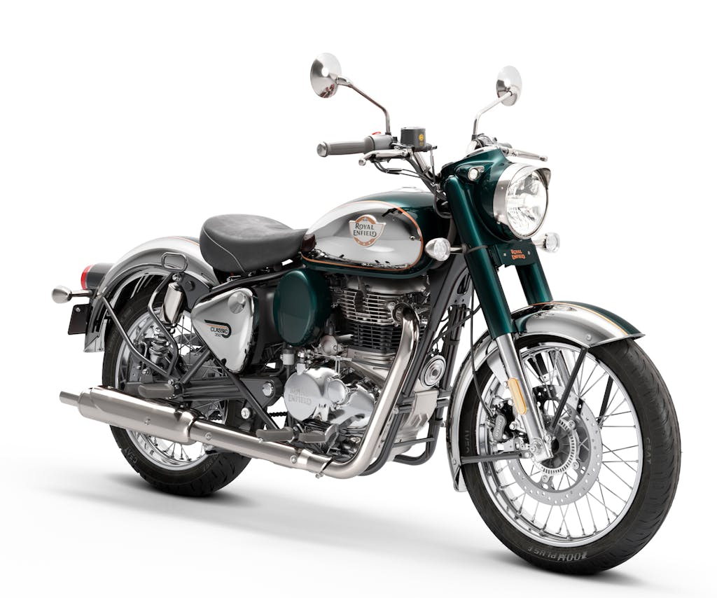Erede diretta della Royal Enfield G2 del 1950 e già disponibile nelle concessionarie ufficiali, la Classic 350 si potrà ora scegliere tra quattro brillanti colori: Heritage Premium (Medallion Bronze), Chrome (Emerald), Dark (Stealth Black), Heritage (Madras Red).