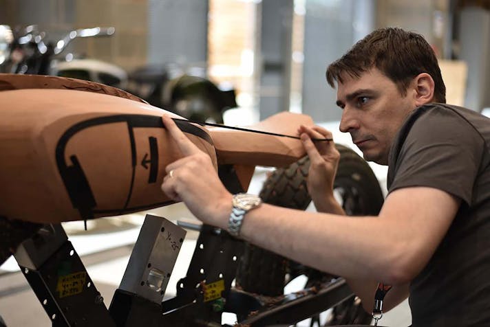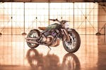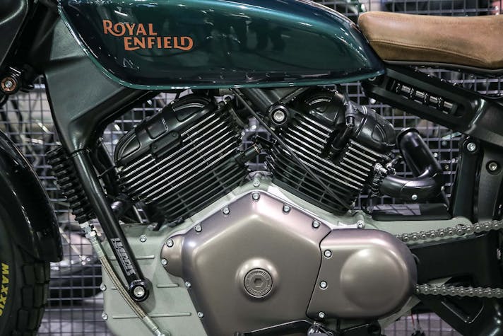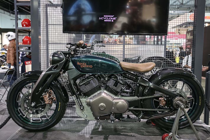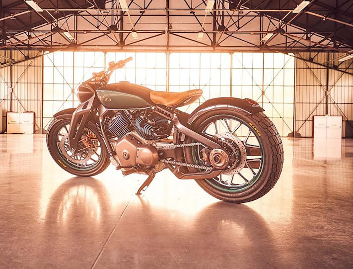 Come un serpenteLunga, bassa e con ruote da 19”, la Royal Enfield Concept KX è un progetto nato e prodotto in tempi record (dall’idea al prodotto finale in soli 6 mesi!) e che celebra una moto del 1937, l’omonima Royal Enfield KX. Ma la tecnica è tutta moderna: il motore bicilindrico a V raffreddato ad aria/olio è da 838 cc (sull’originale era 1.140 cc) ed è parte stressata del telaio.