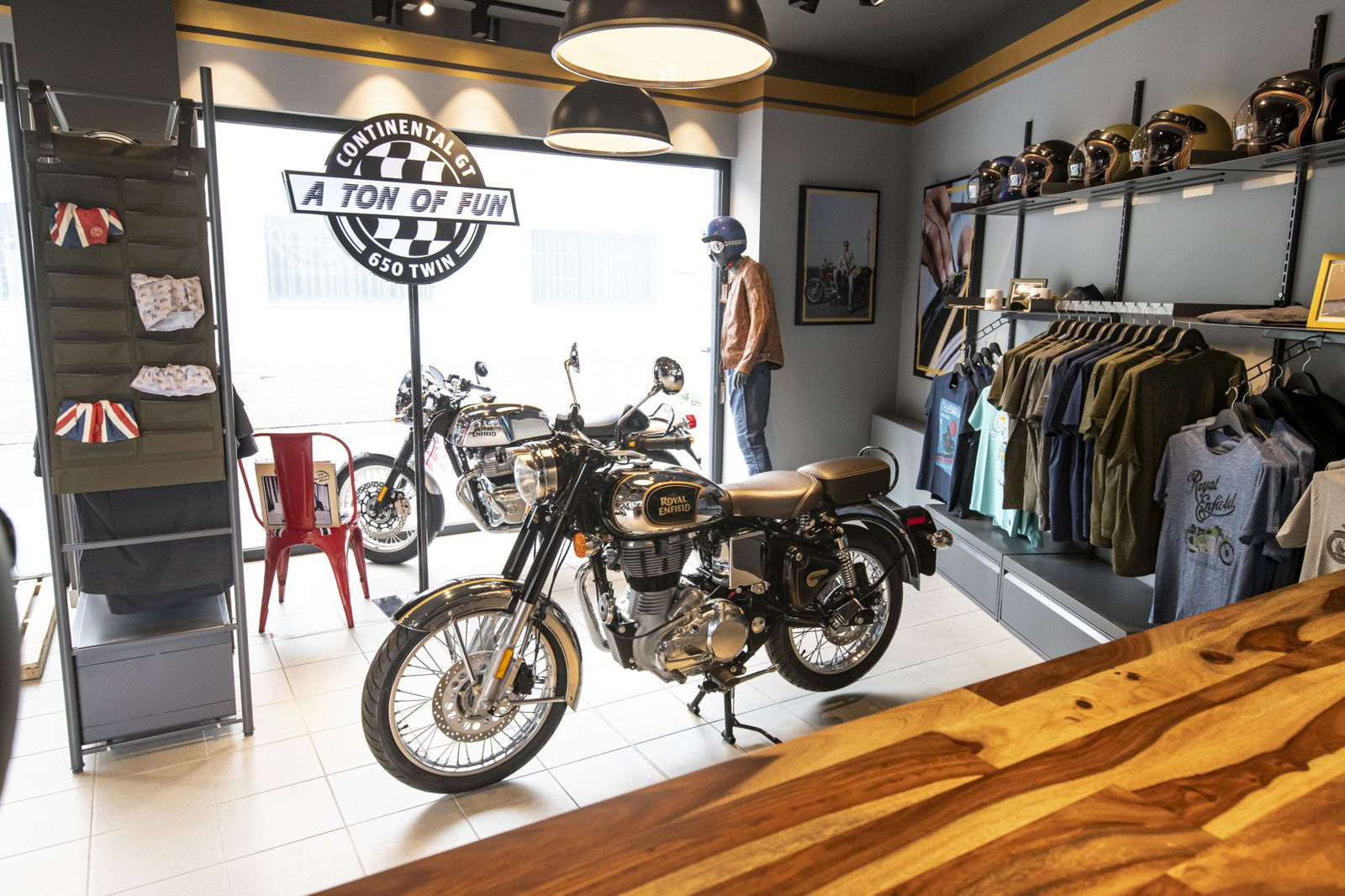 Valentino Motor Company, distributore ufficiale Royal Enfield in Italia, ha scelto Pogliani Moto di Sesto San Giovanni, in provincia di Milano, come partner per ospitare il primo Concept Store, dove i fedelissimi del brand e gli appassionati delle due ruote possono immergersi a 360° nel mondo Royal Enfield. All’interno dello store, infatti, è possibile ripercorrere i 118 anni di storia del marchio, esplorare lo spazio dedicato al merchandising, acquistare accessori e pezzi di ricambio, ma soprattutto toccare con mano tutta la gamma, compresa la nuovissima Bullet Trials.Concepito per incarnare sotto ogni aspetto la filosofia di motociclismo autentico di Royal Enfield, lo spazio di 71 mq del Concept Store si presenta come il salotto di un entusiasta delle due ruote grazie a un interessante format di visual merchandising e a display di prodotto innovativi, che includono l’uso di componenti e accessori provenienti da moto Royal Enfield come complementi d’arredo, oltre a immagini storiche del marchio e dei prodotti.